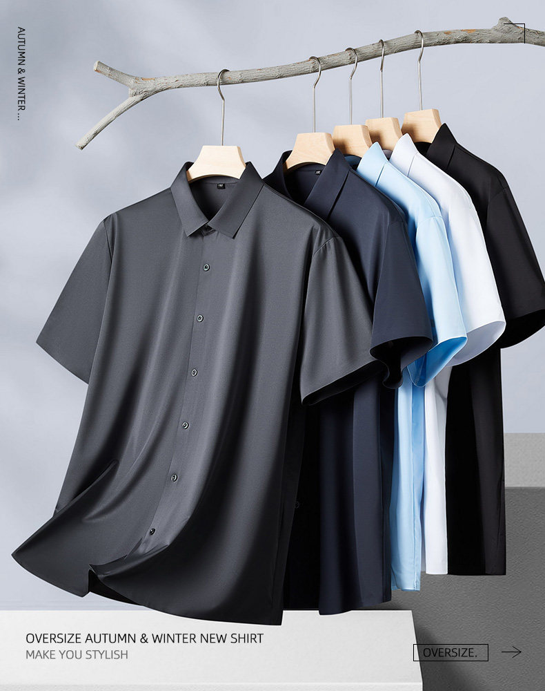 【DM】大依优型大码男装夏季弹力翻领短袖衬衫商务休闲百搭上衣T恤350斤