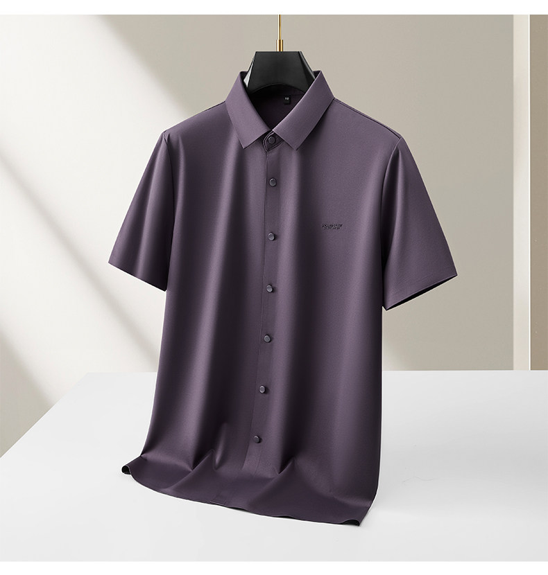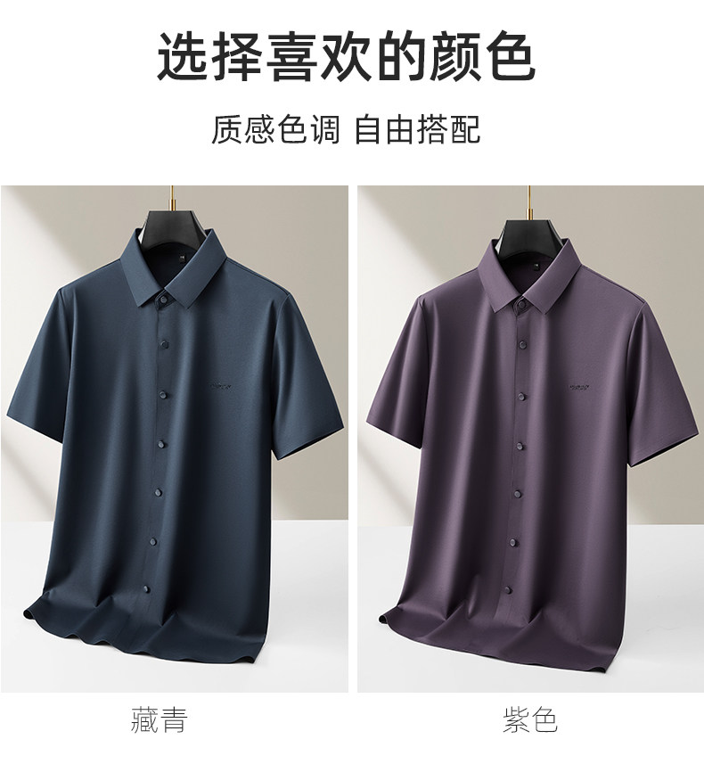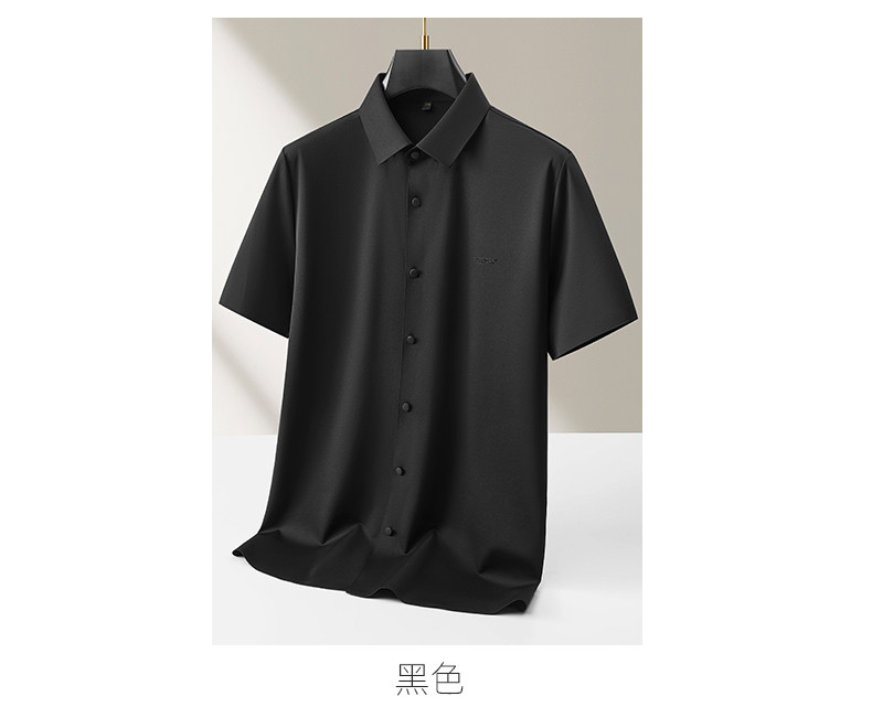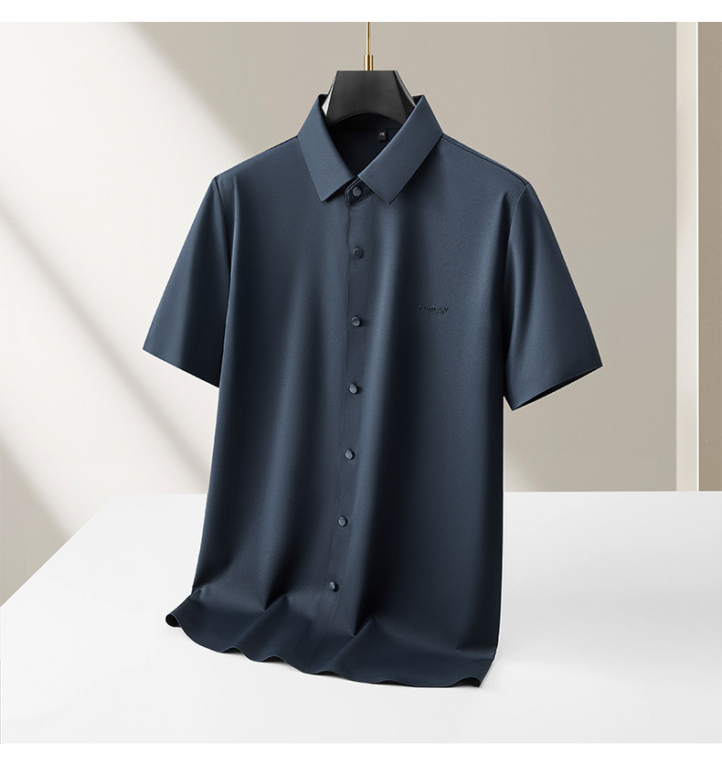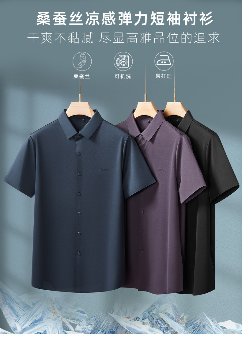 【DKP】【含桑蚕丝】大依优型大码男装夏季冰丝短袖衬衫翻领商务休闲上衣
