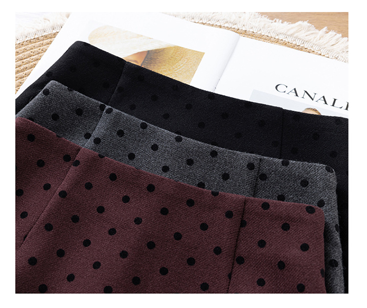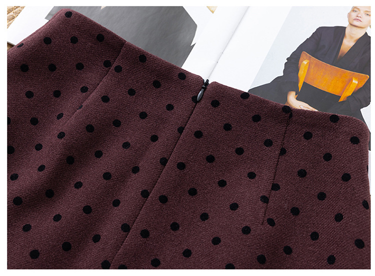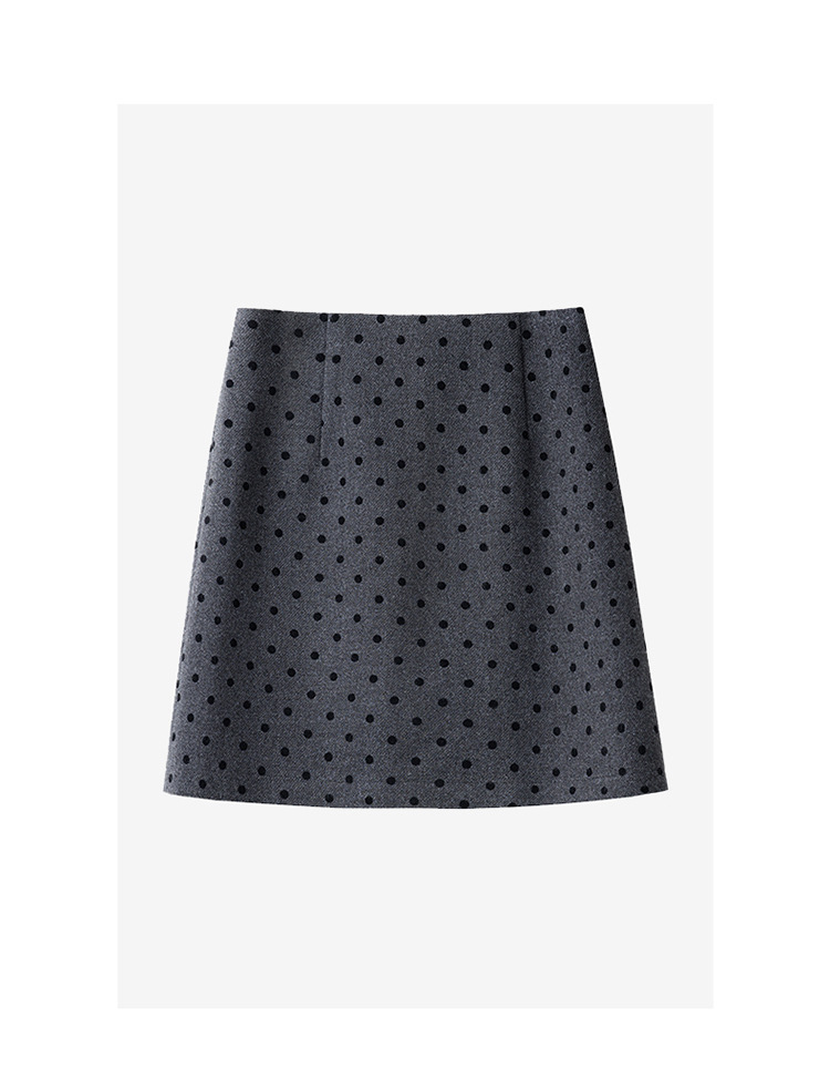 YM 8567-48气质简约波点毛呢半身裙时髦洋气a字短裙
