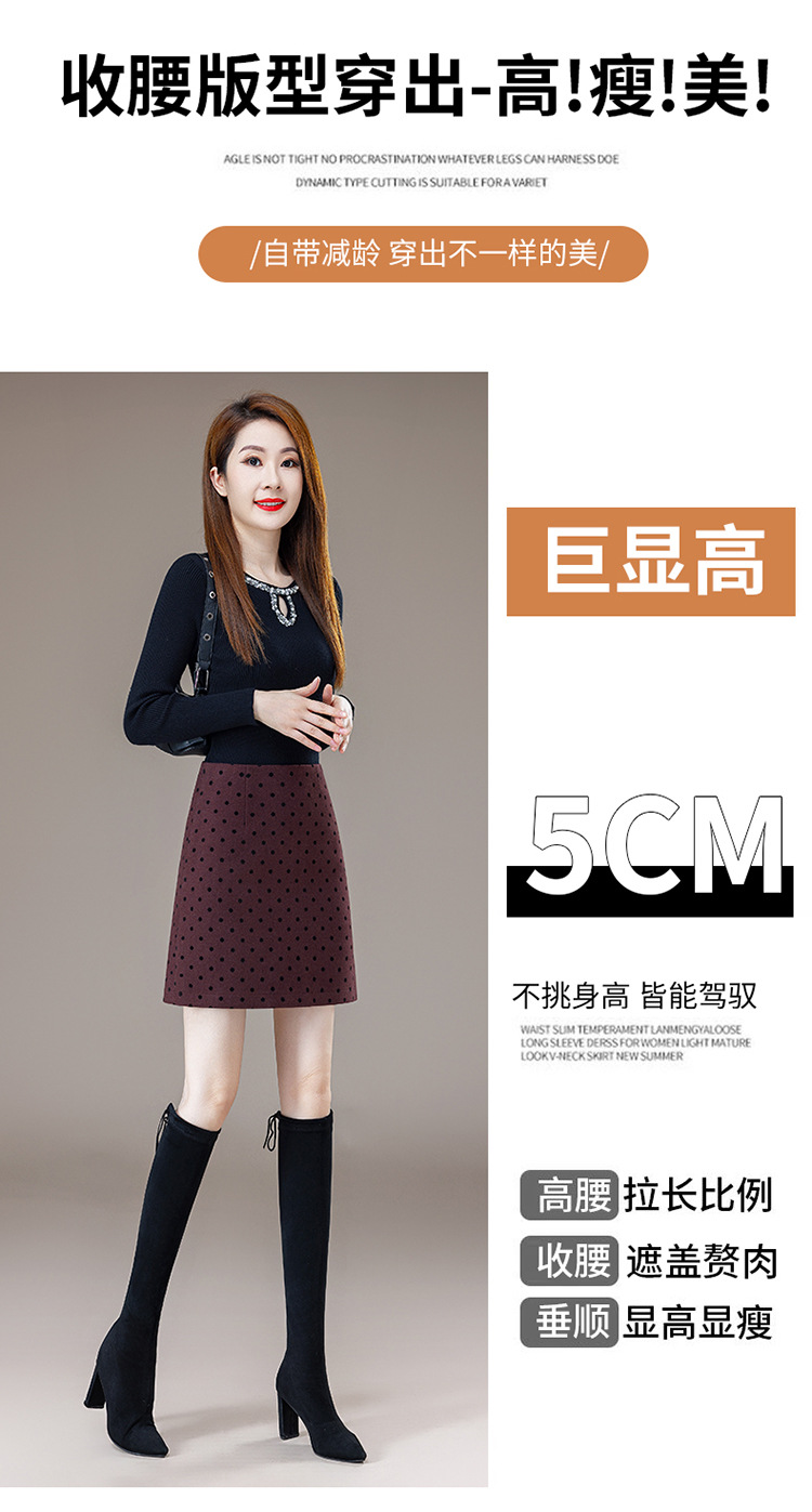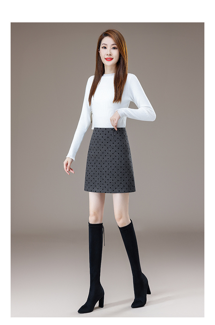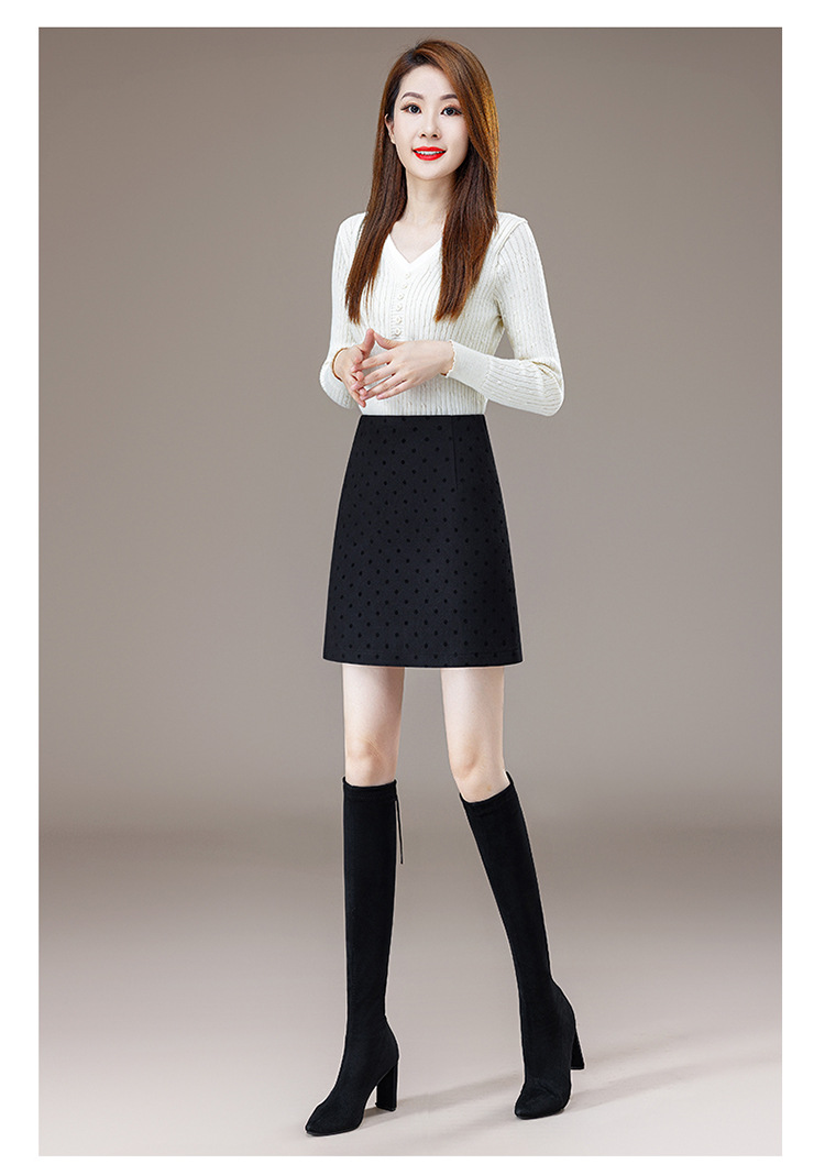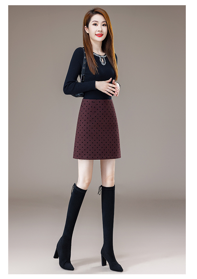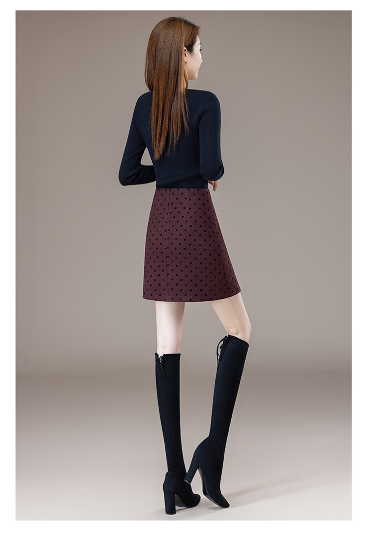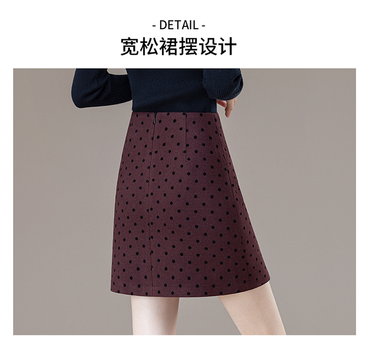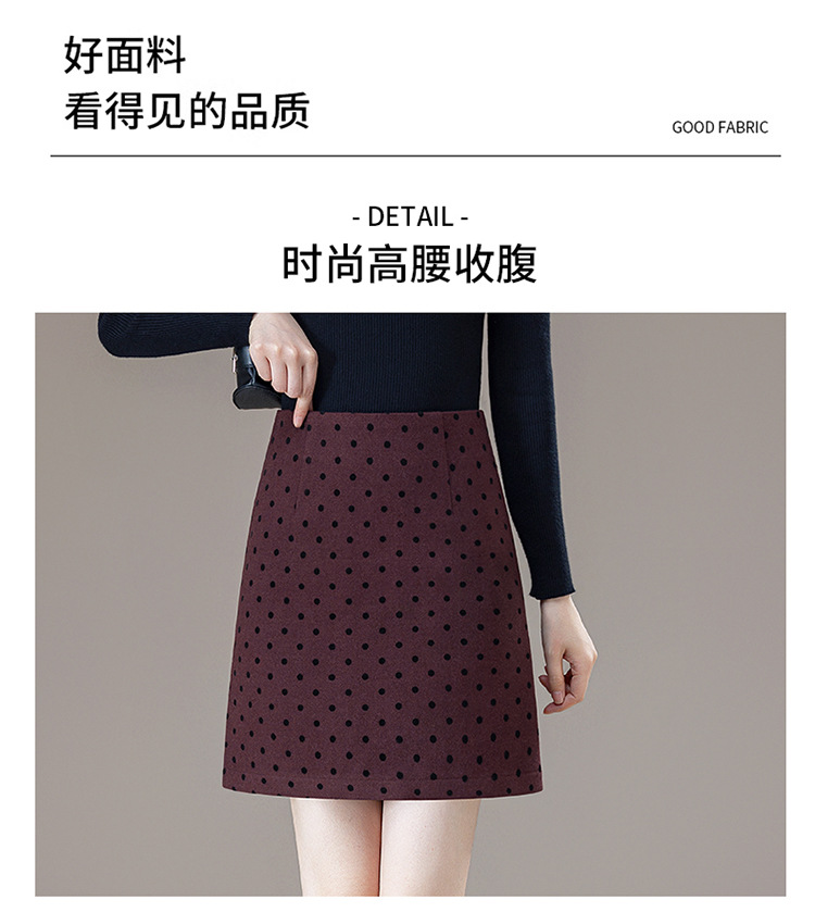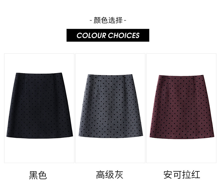 YM 8567-48气质简约波点毛呢半身裙时髦洋气a字短裙 商品图4