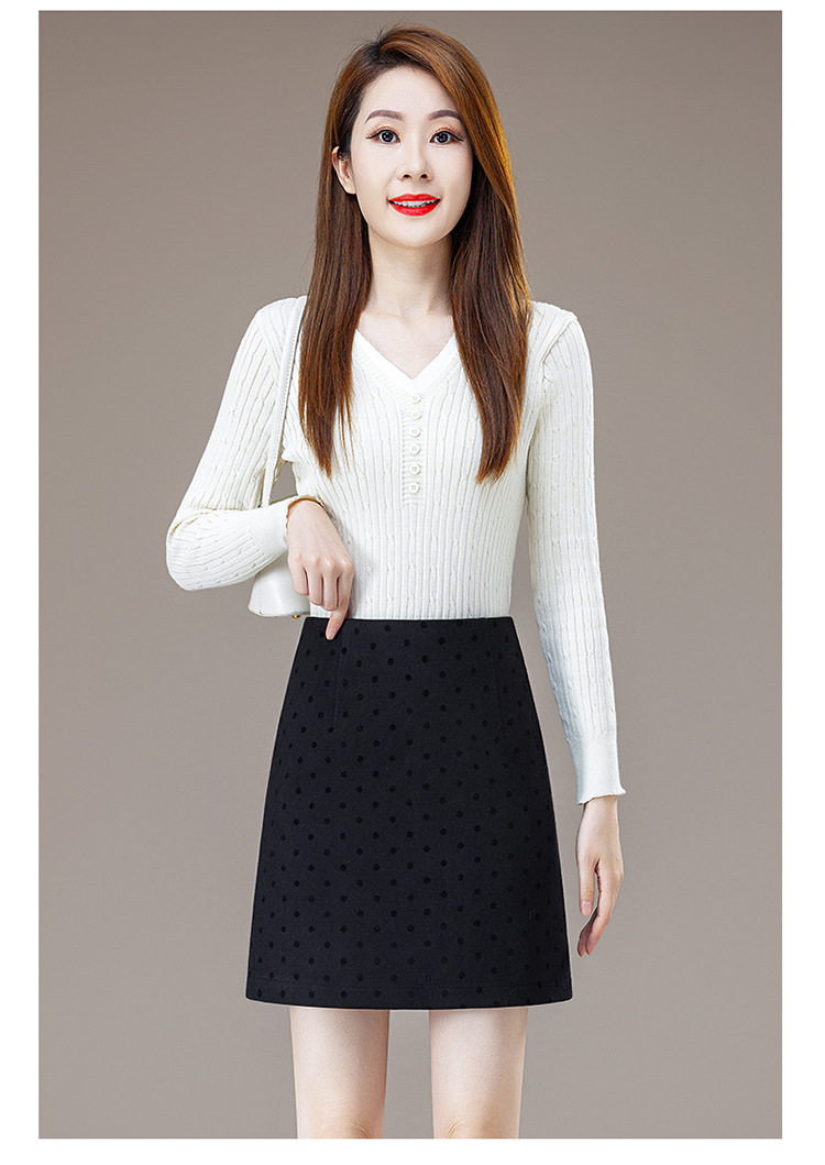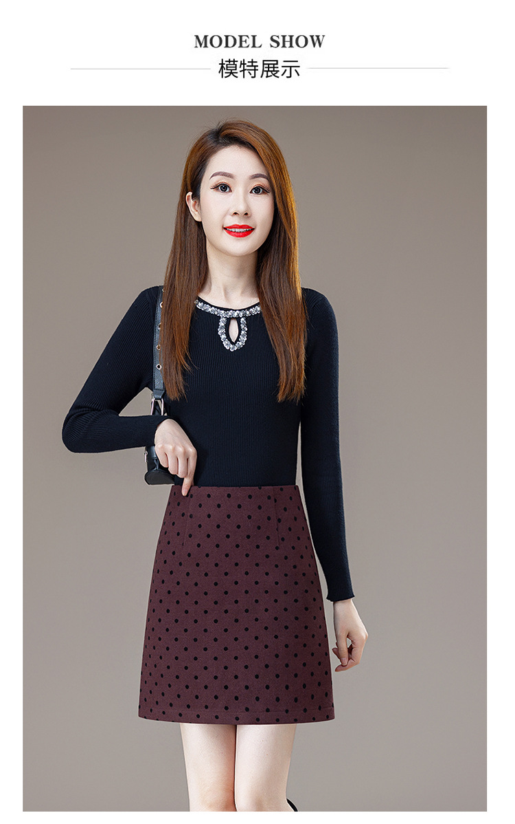 YM 8567-48气质简约波点毛呢半身裙时髦洋气a字短裙 商品图2