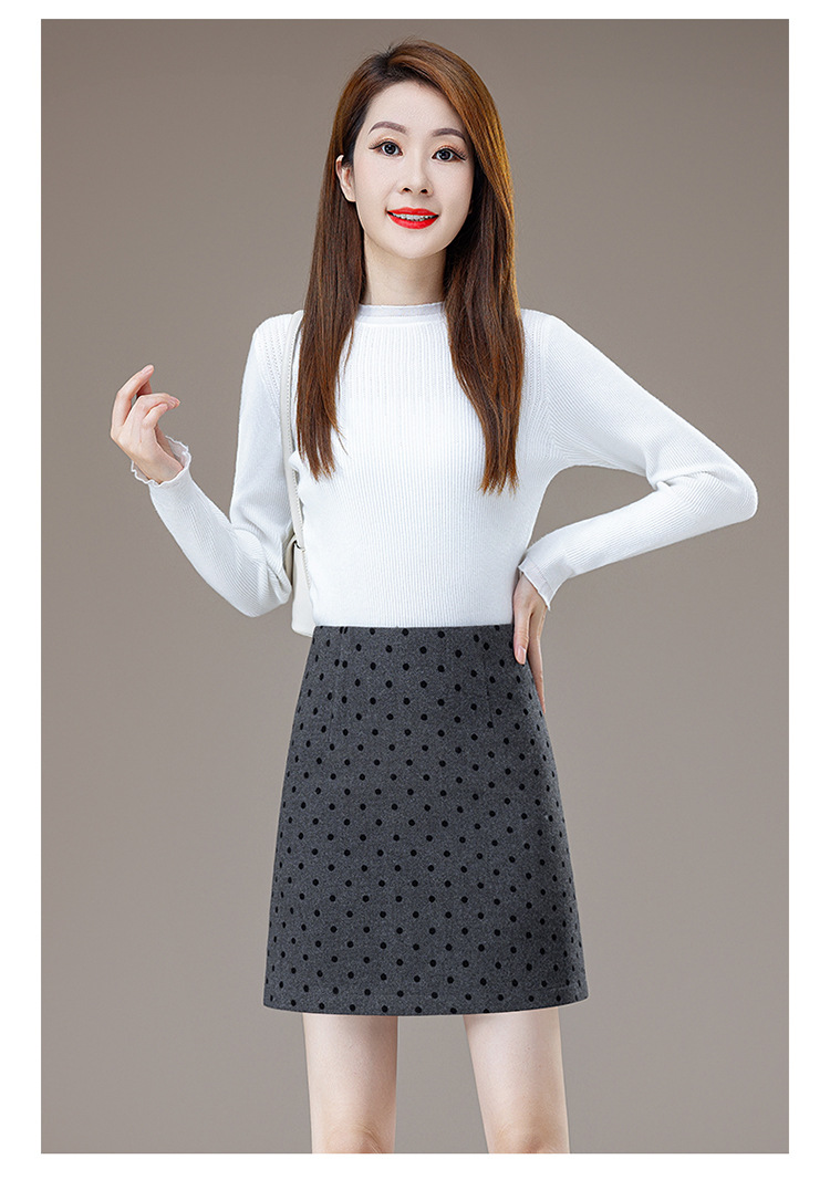 YM 8567-48气质简约波点毛呢半身裙时髦洋气a字短裙 商品图1