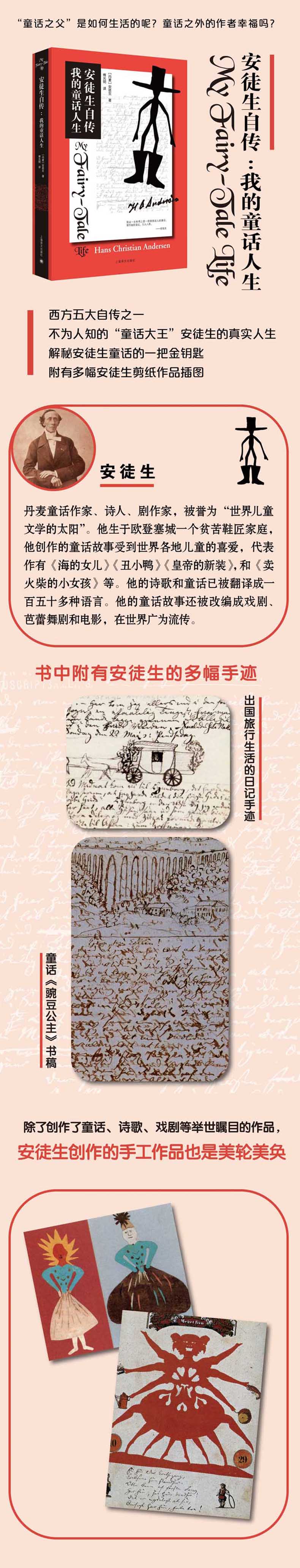 在被中国读者一直作为“童话大王”接受的安徒生的精神世界里,有太多是在童话以外不为人知的东西。而这部自传,正是解秘安徒生童话的一把金钥匙,因为这些童话里有他真实人生的影子,它们以童话的方式蚀刻下了他对于真实人生的理解与感悟,理想与憧憬。