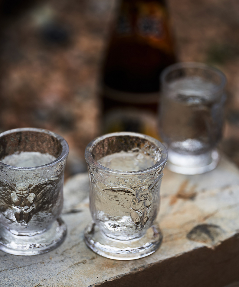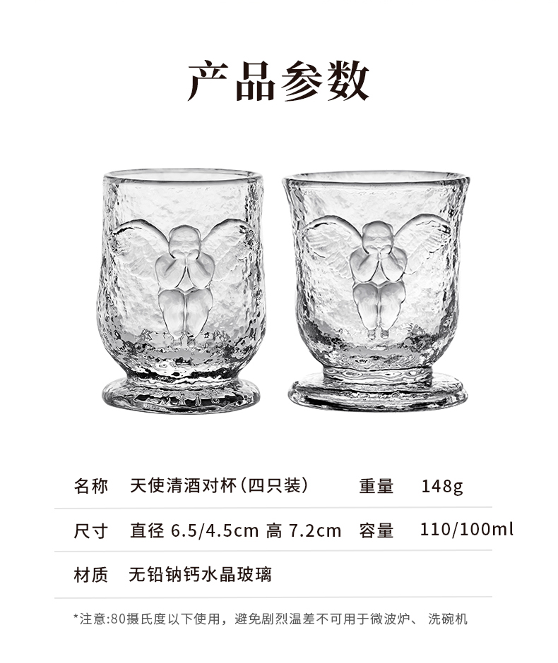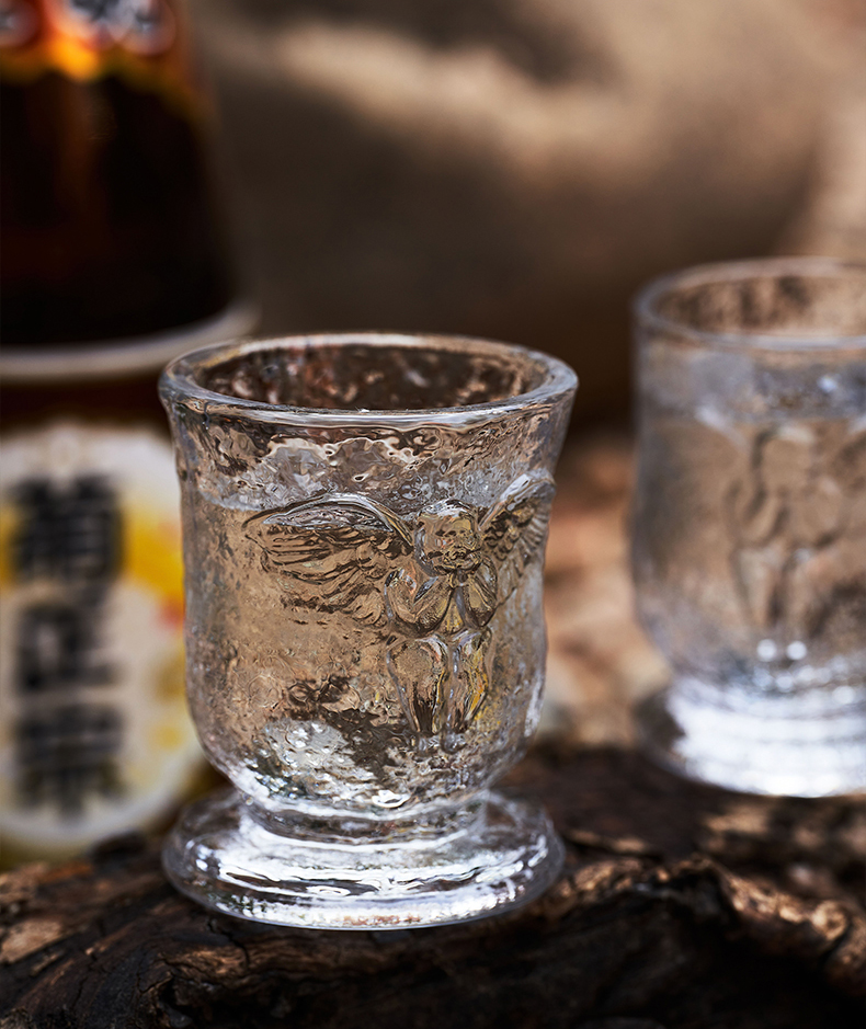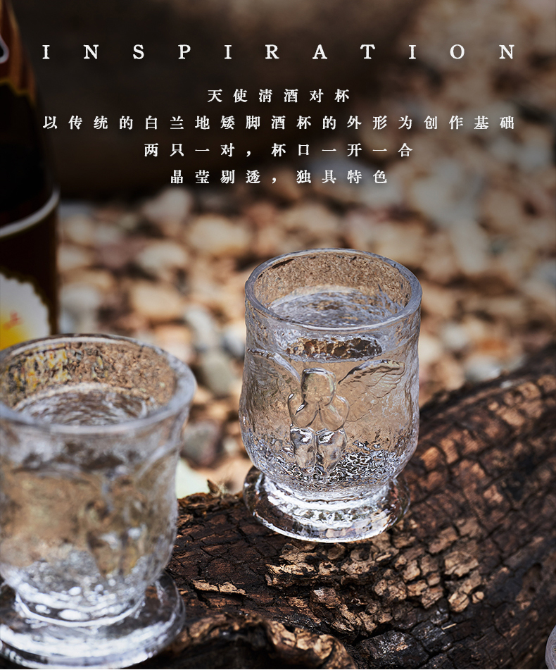 稀奇艺术天使玻璃浮雕清酒杯白酒对杯2只套装