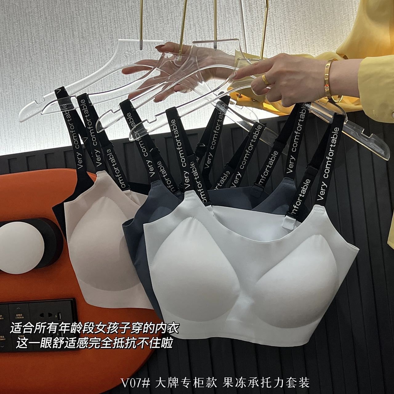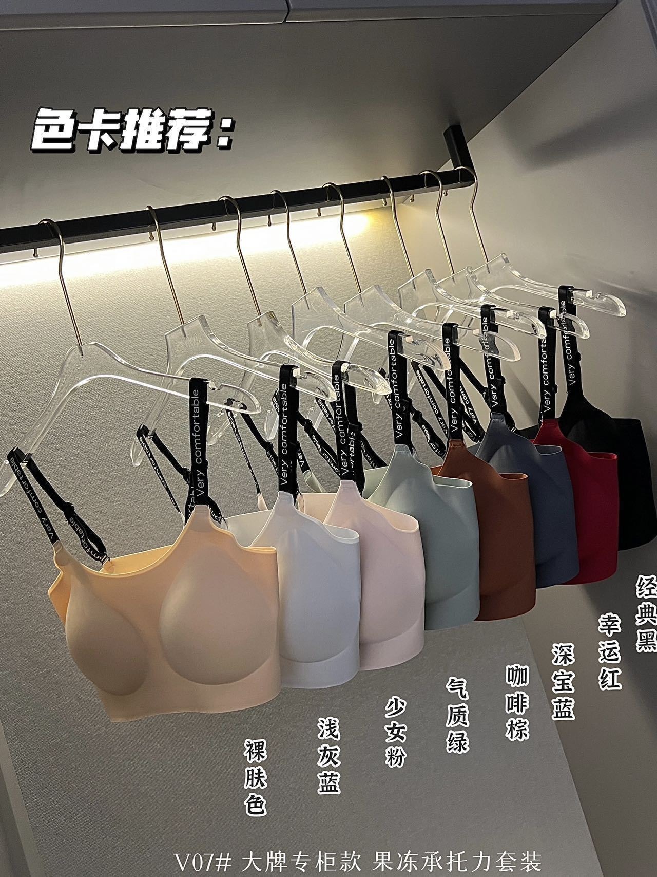 【乳胶果冻承托,舒适又聚拢】新款无痕内衣女士英文带裸感乳胶果冻承托力套装大红色大码文胸女。xb
