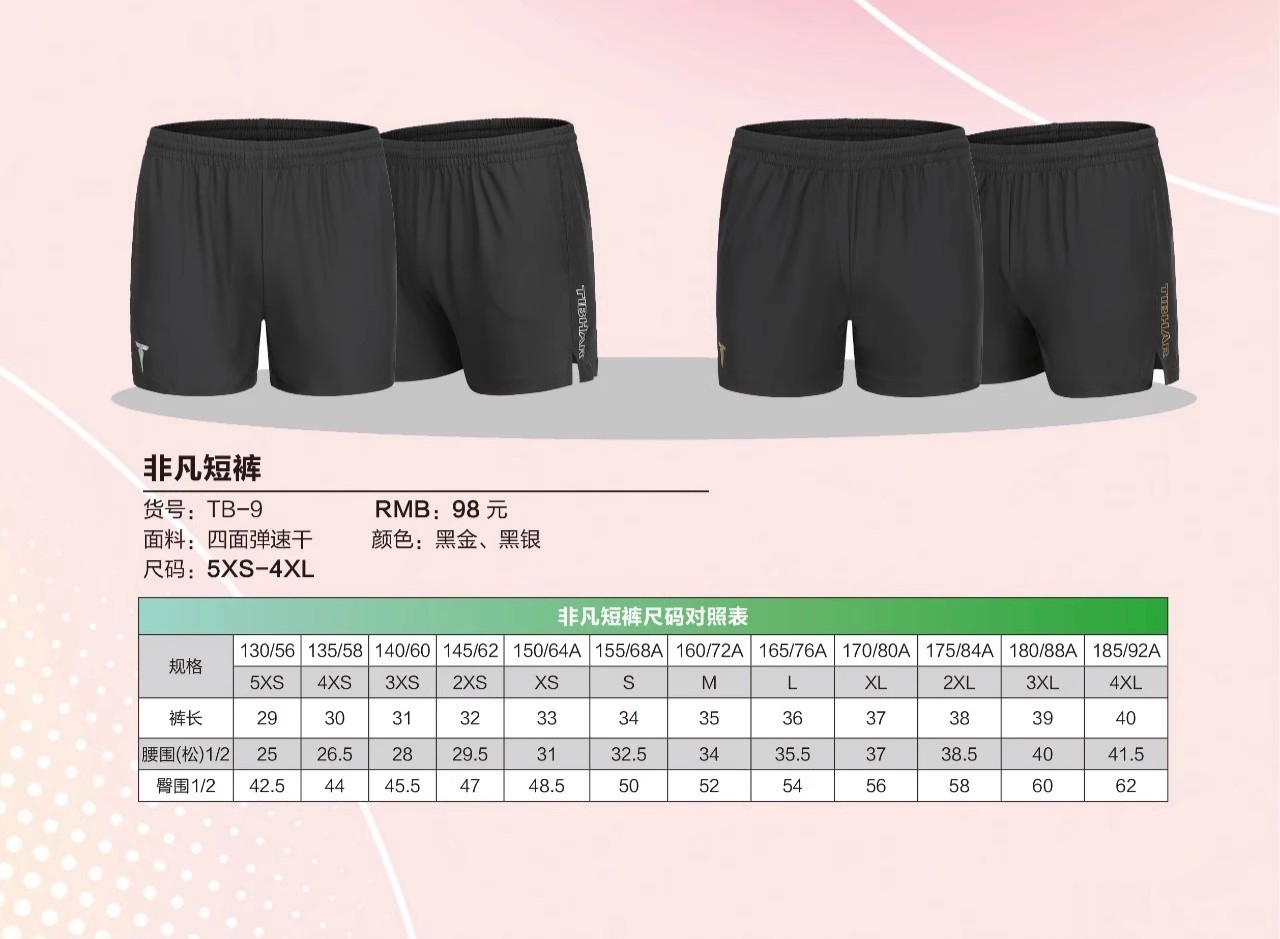 TIBHAR挺拔乒乓球短裤TB-9专业乒乓球运动裤四面弹速干