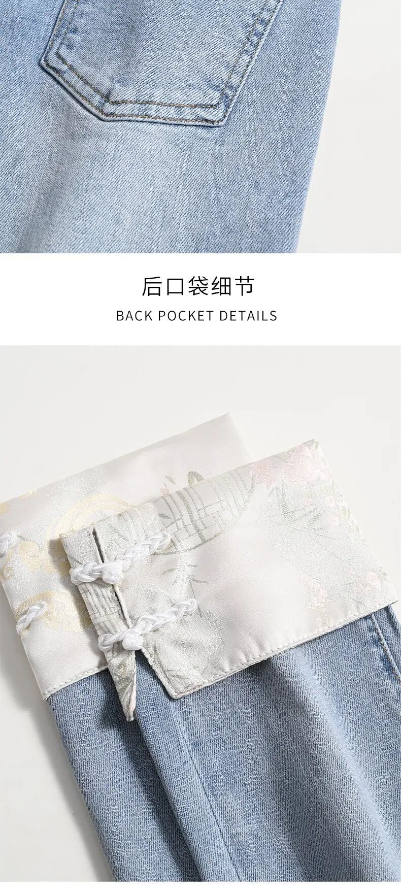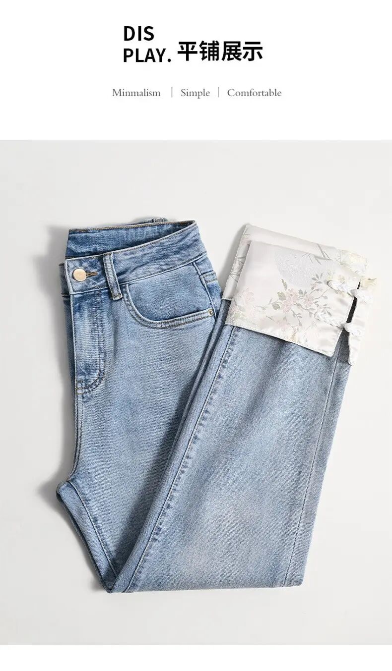「自」全新升级【铂金会员165/天猫219/差价54】(00540)洛诗琳国风新中式牛仔裤2025新款刺绣小直筒牛仔九分烟管裤00540