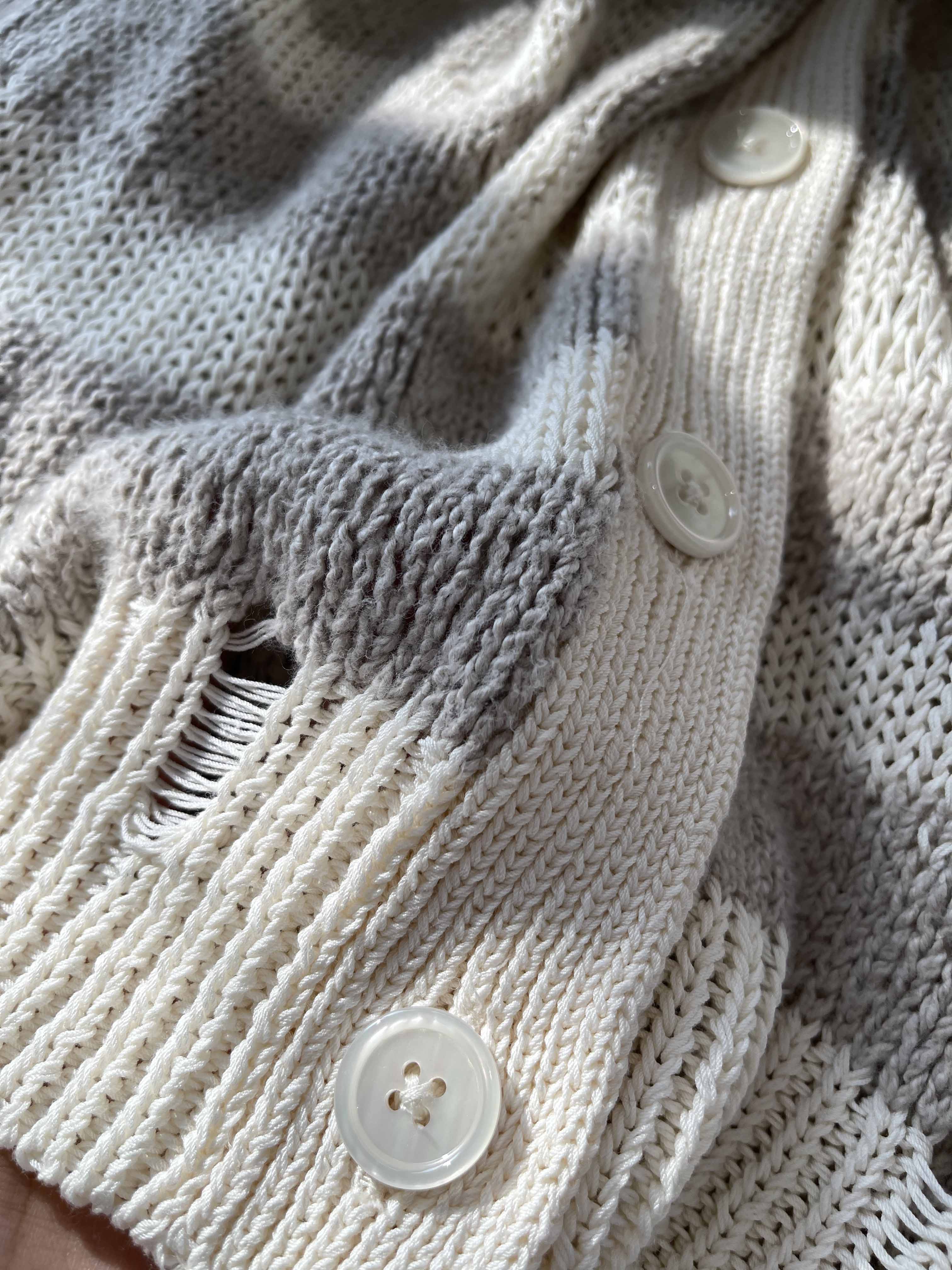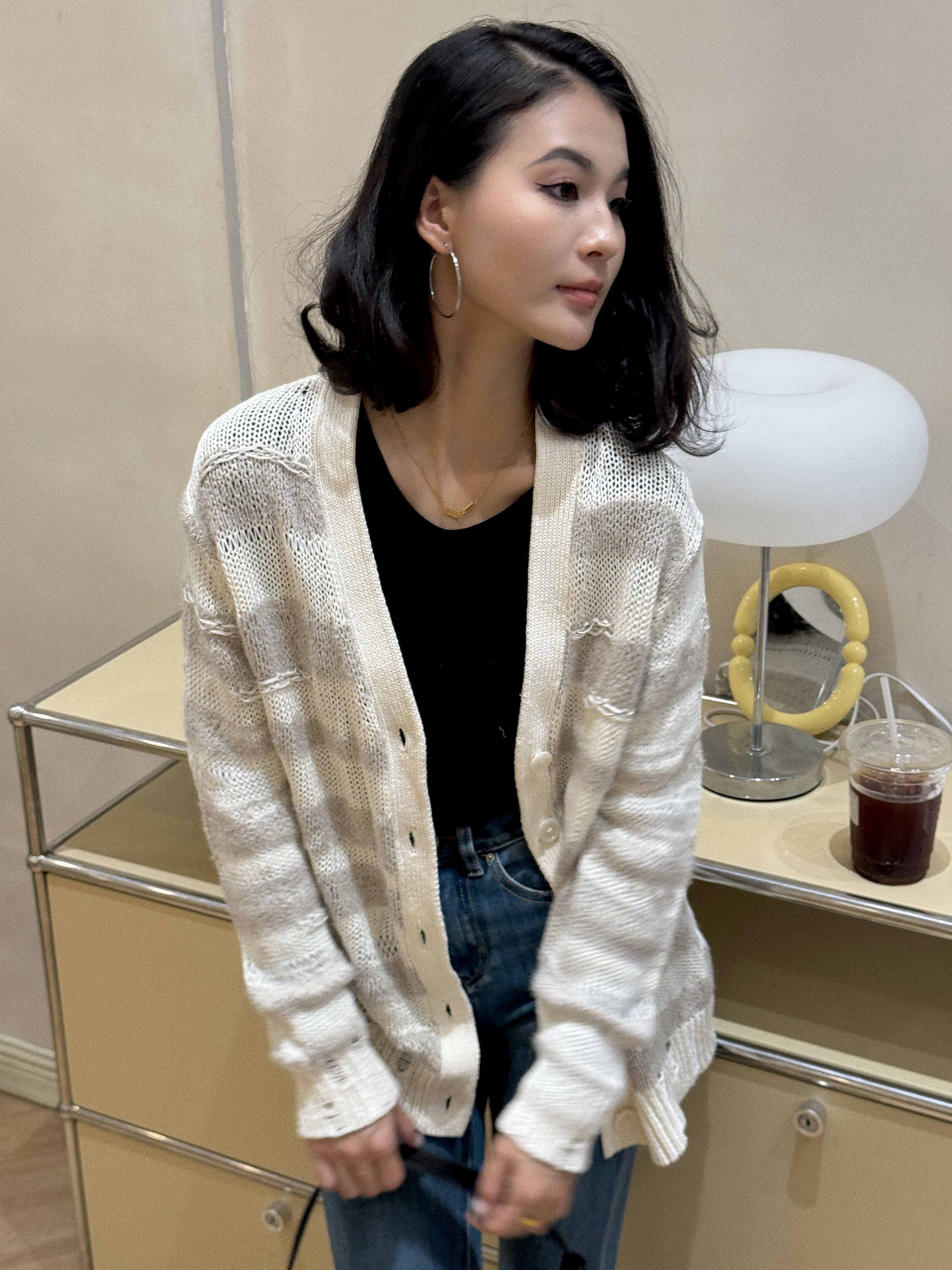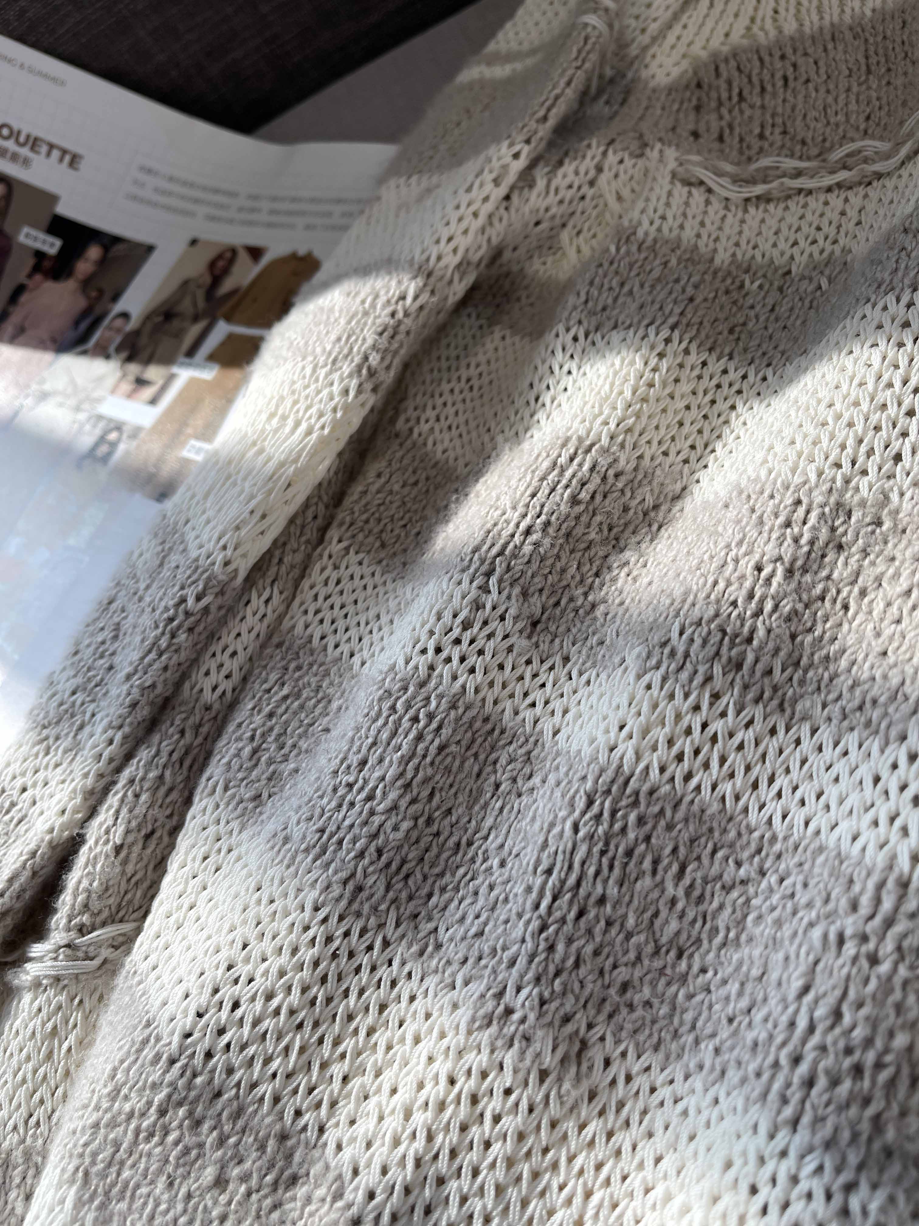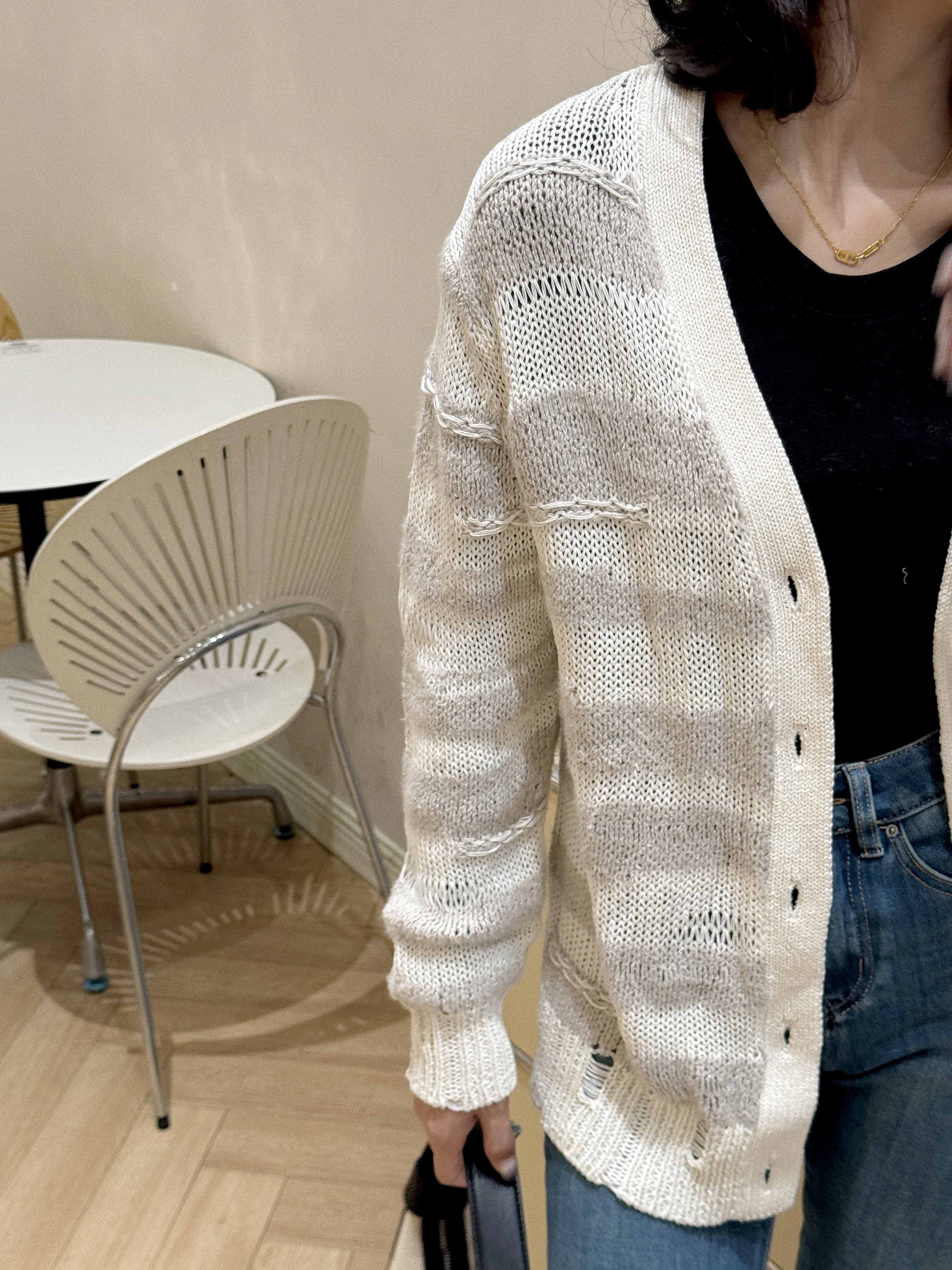 顺丰包邮洛诗琳34609早春新款设计感破洞拼色针织开衫女150573