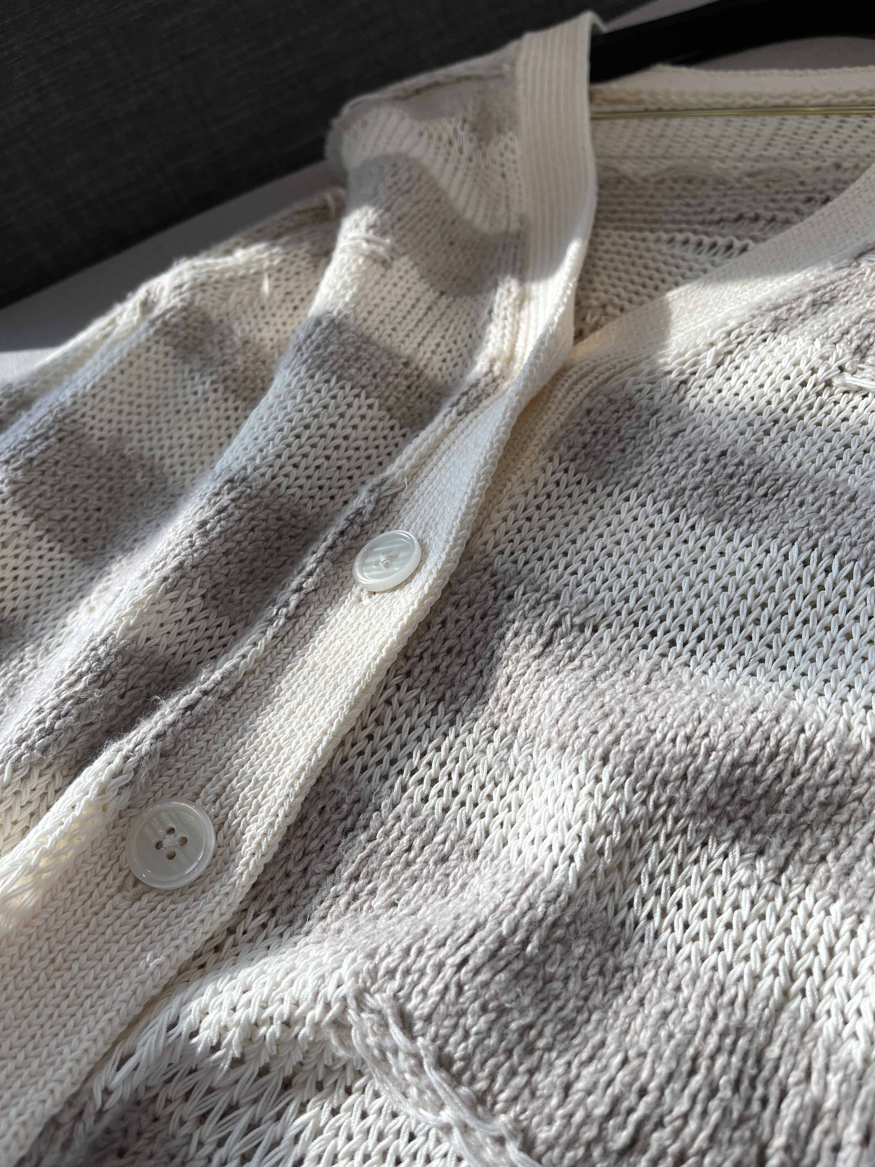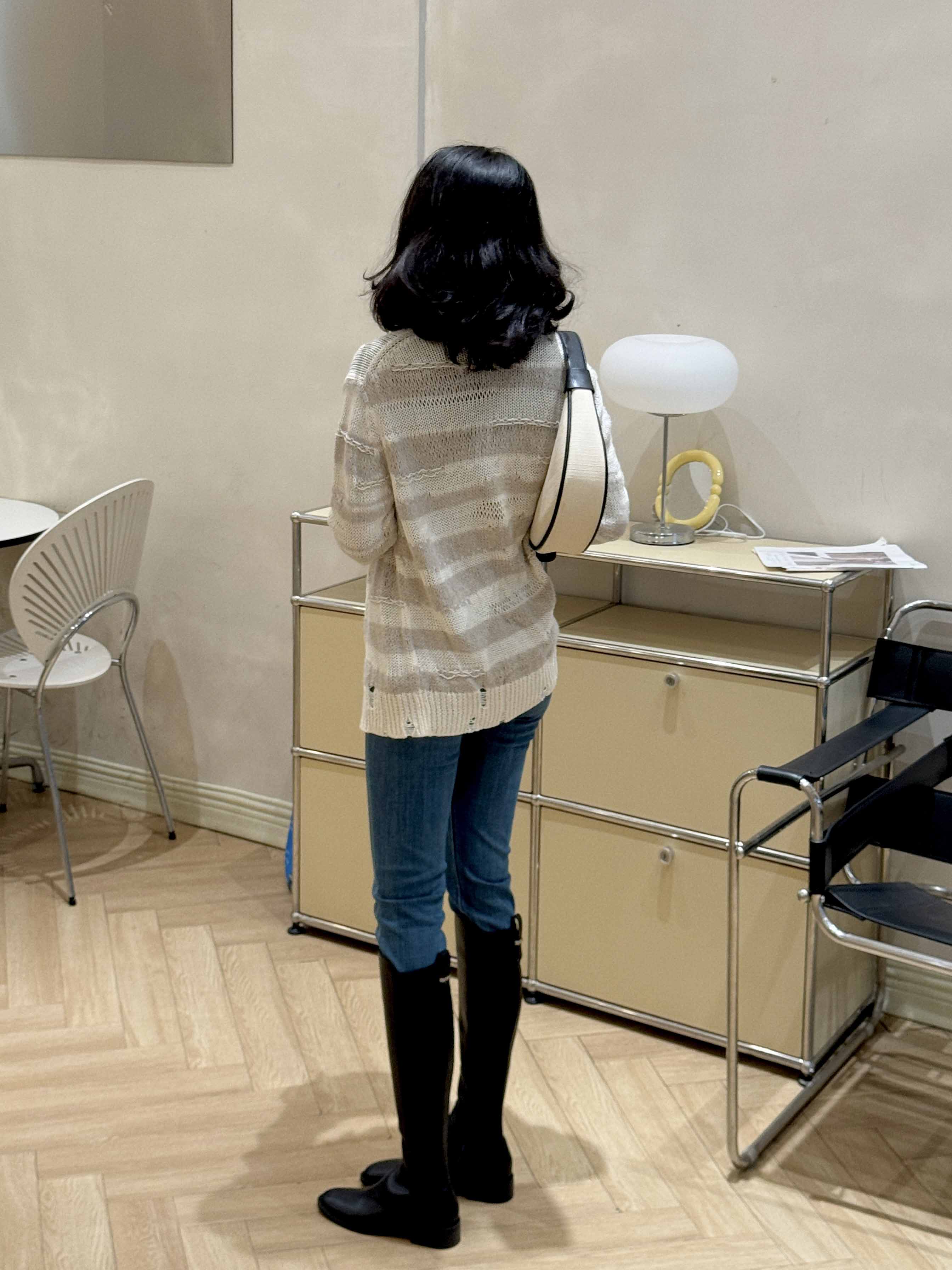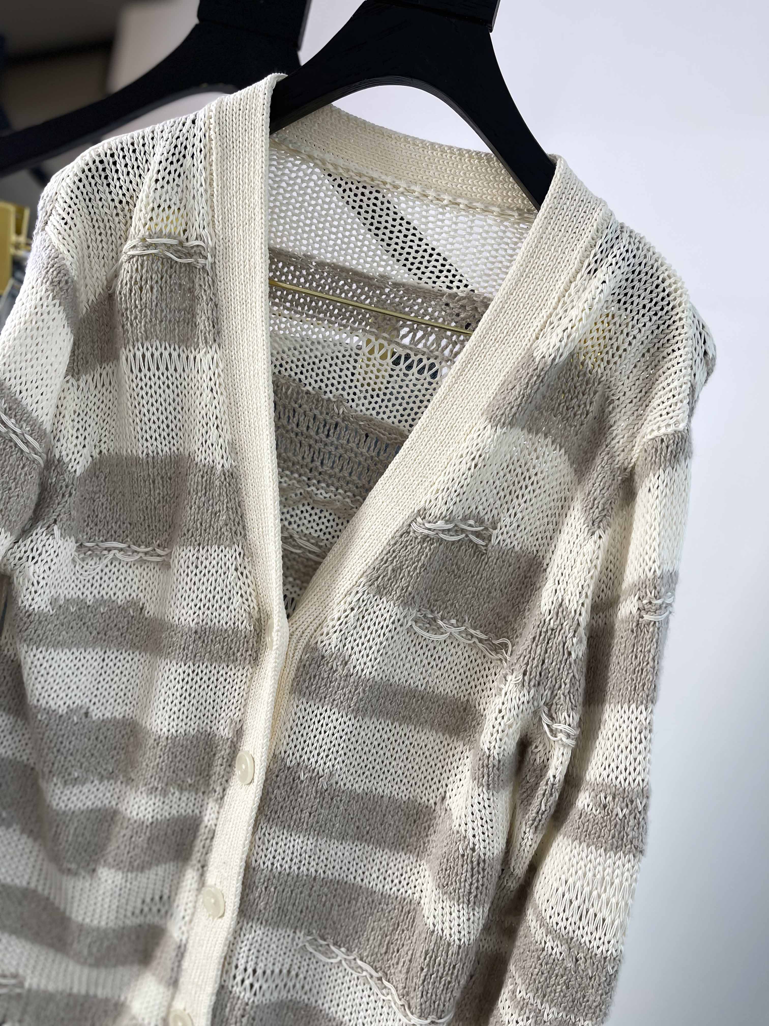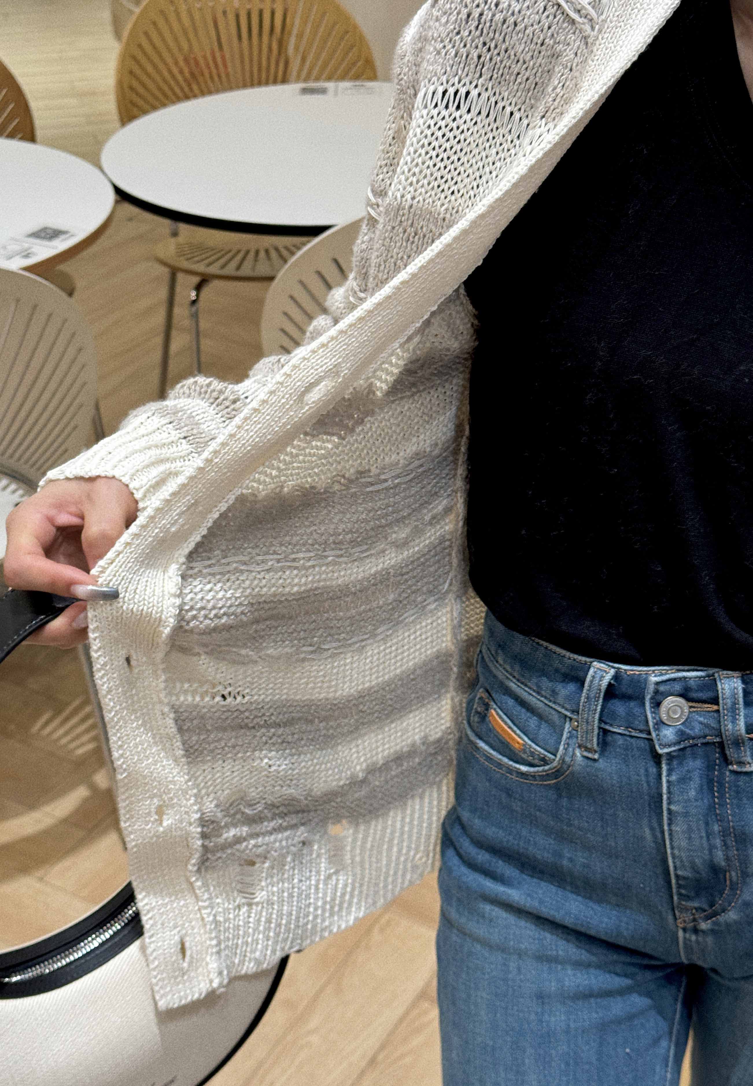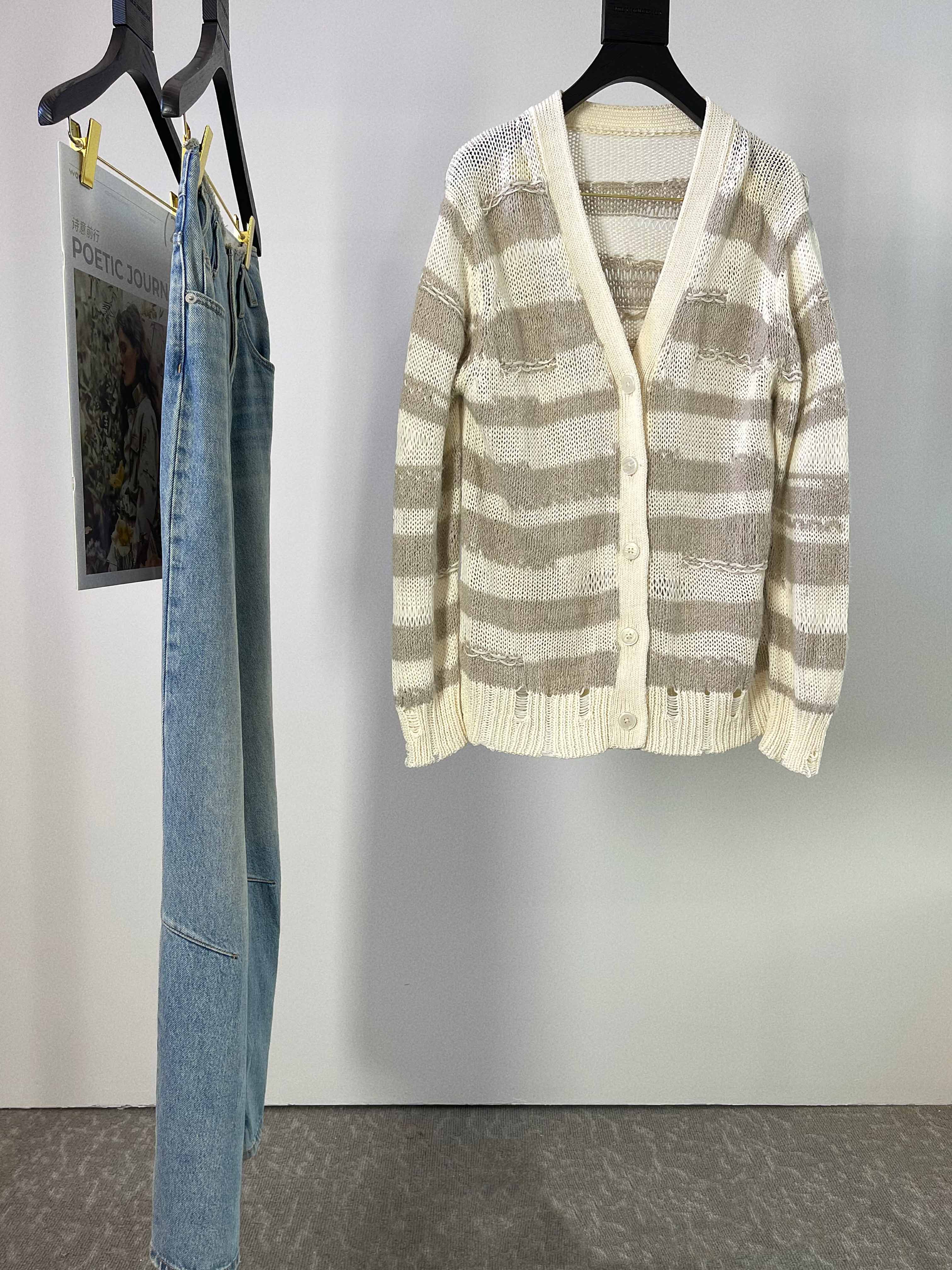 顺丰包邮洛诗琳34609早春新款设计感破洞拼色针织开衫女150573