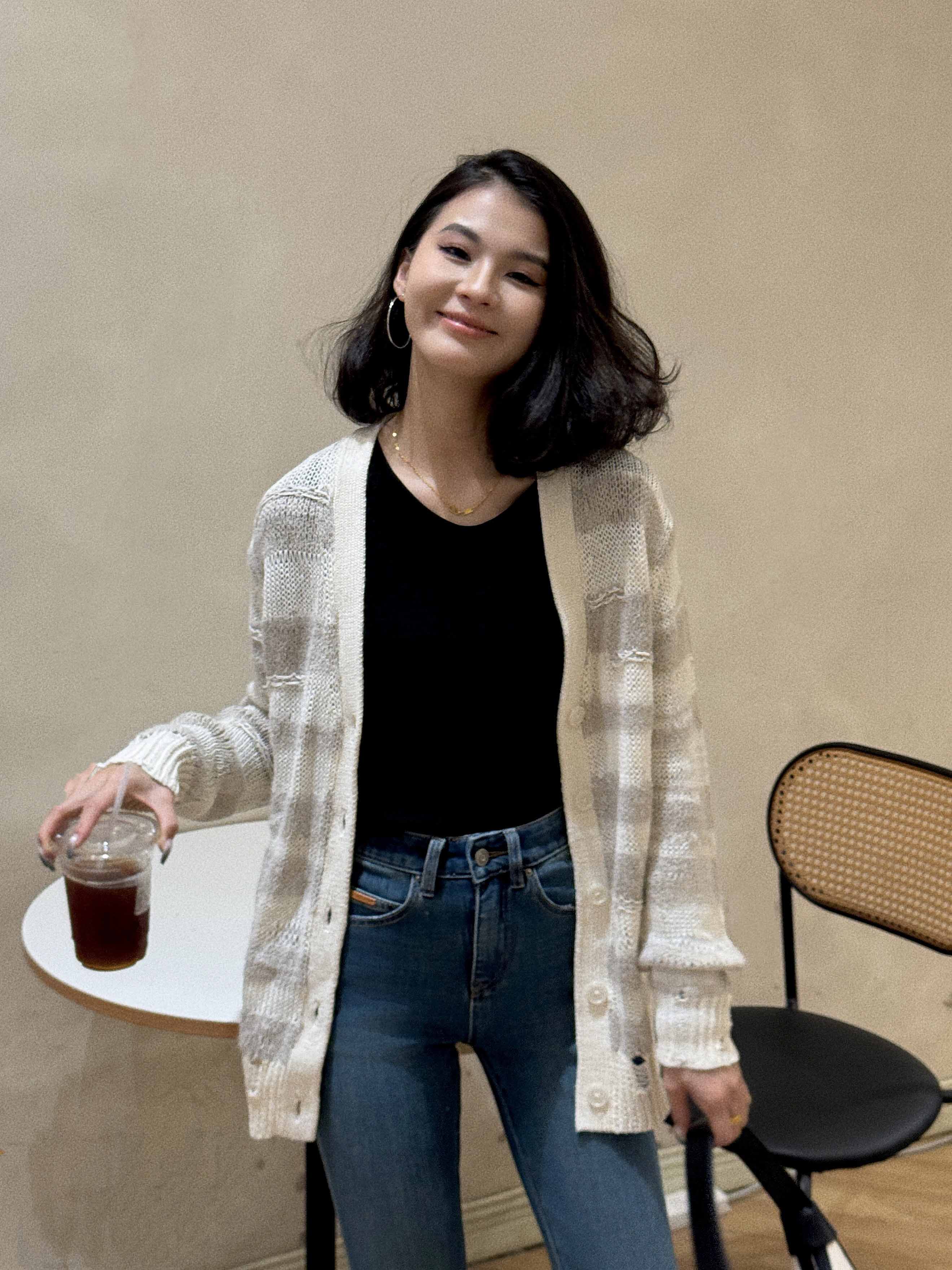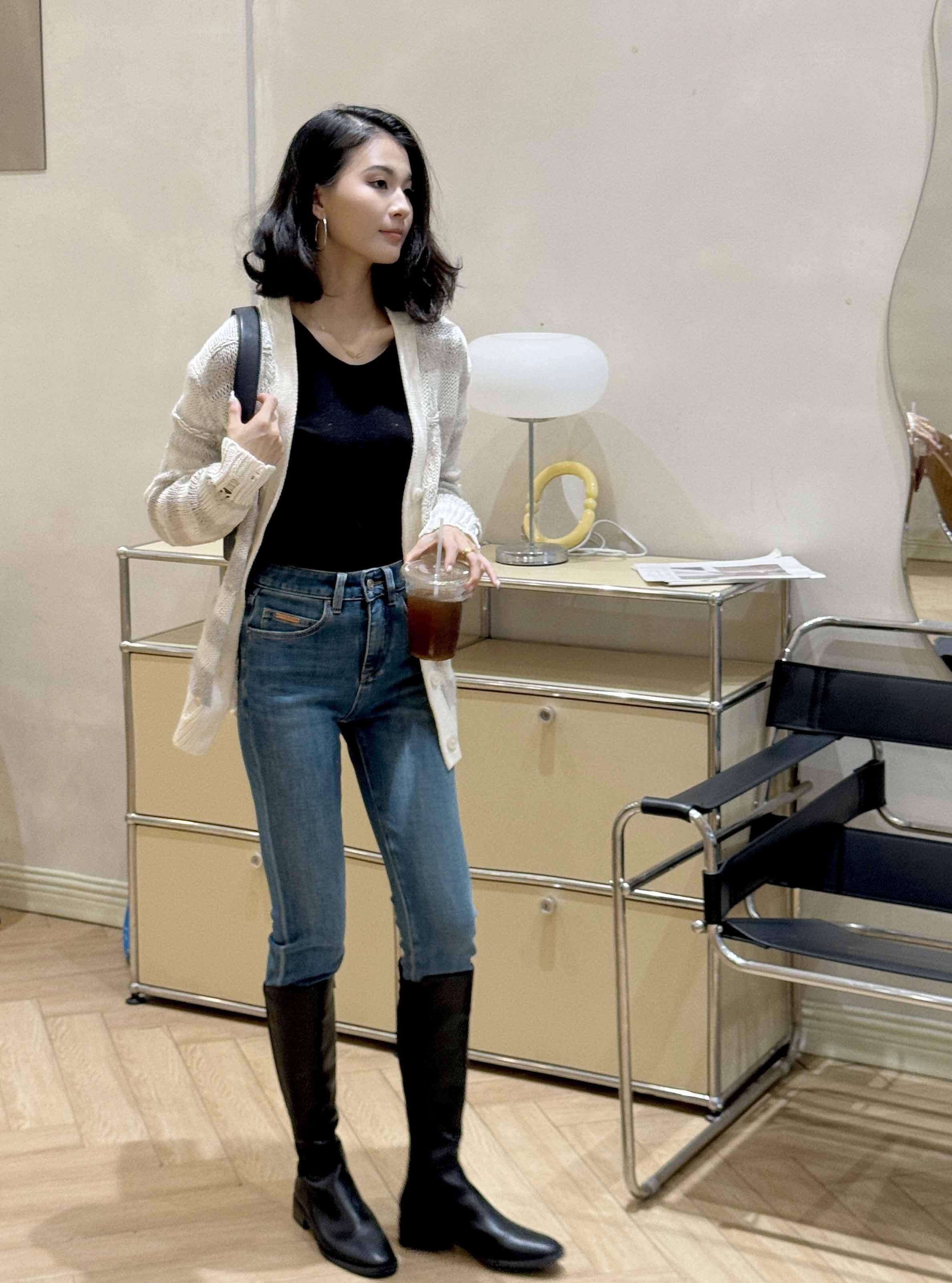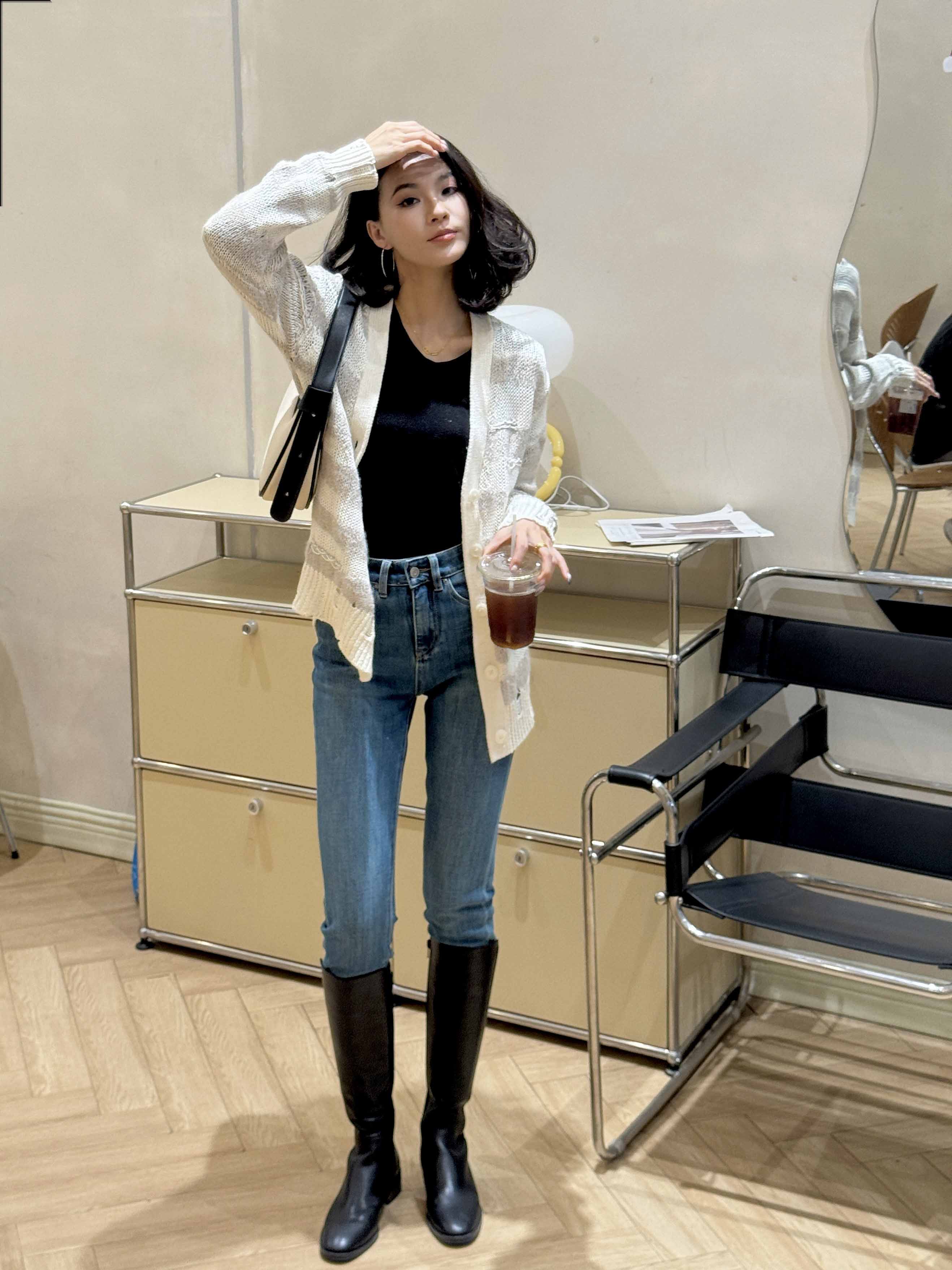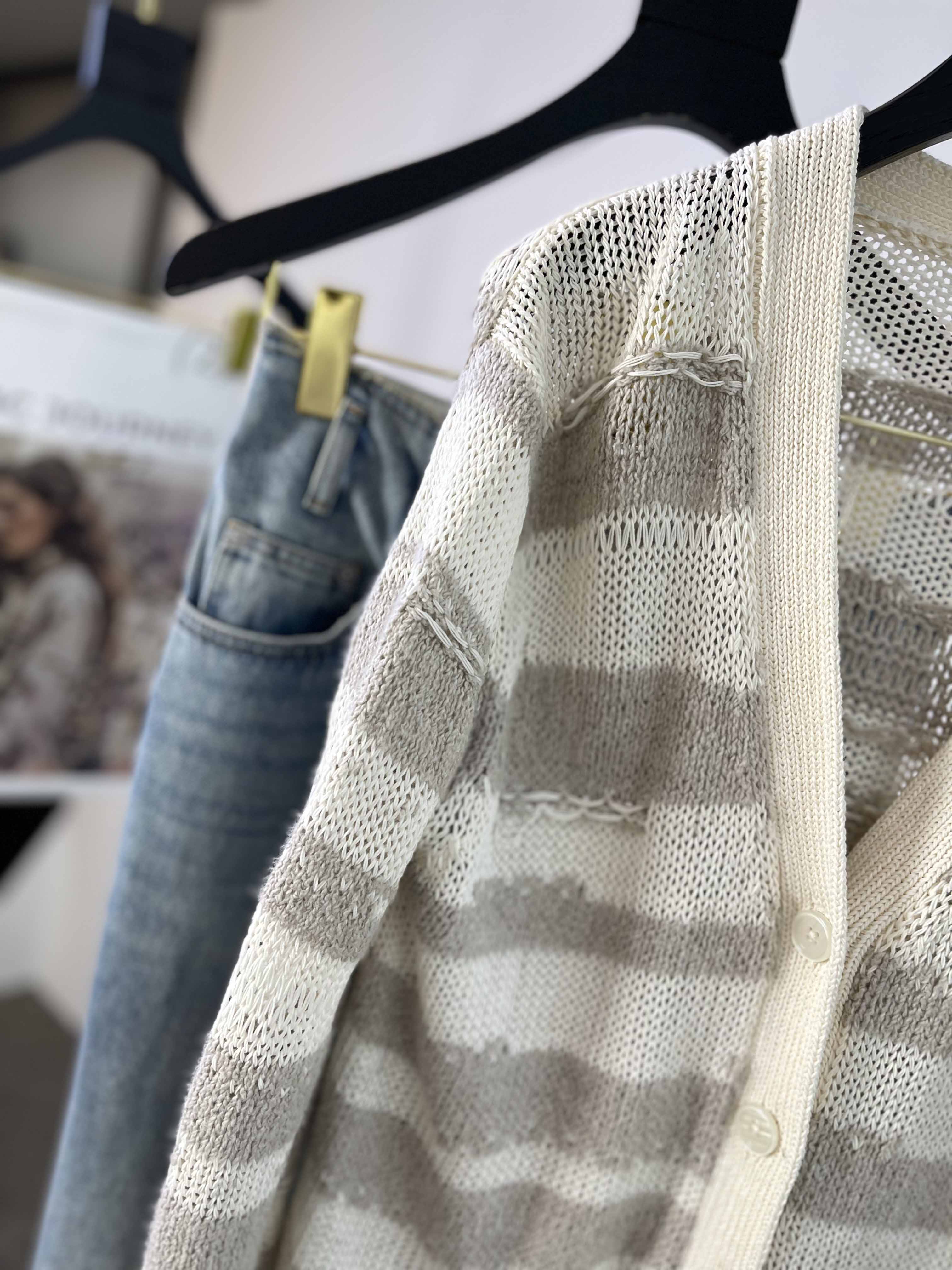 顺丰包邮洛诗琳34609早春新款设计感破洞拼色针织开衫女150573