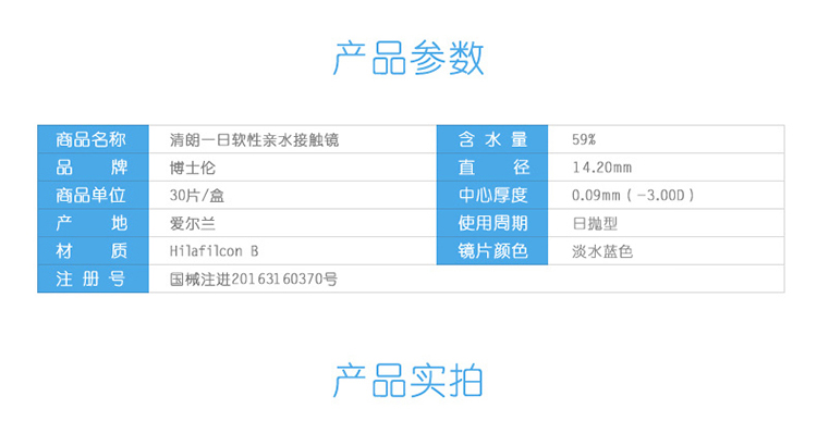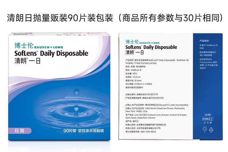 博士伦清朗一日 日抛30/60/90片装 透明隐形眼镜