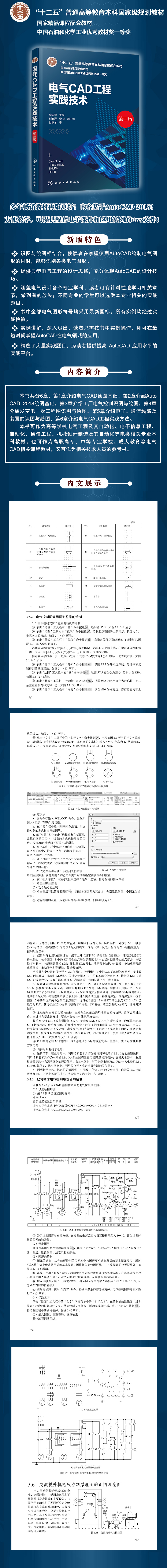本书共分6章,第1章介绍电气CAD绘图基础,第2章介绍AutoCAD 2018绘图基础,第3章介绍工厂电气控制识图与绘图,第4章介绍发变电一次工程图识图与绘图,第5章介绍电子、通信线路及装置的识图与绘图,第6章介绍电气CAD工程实践方法。