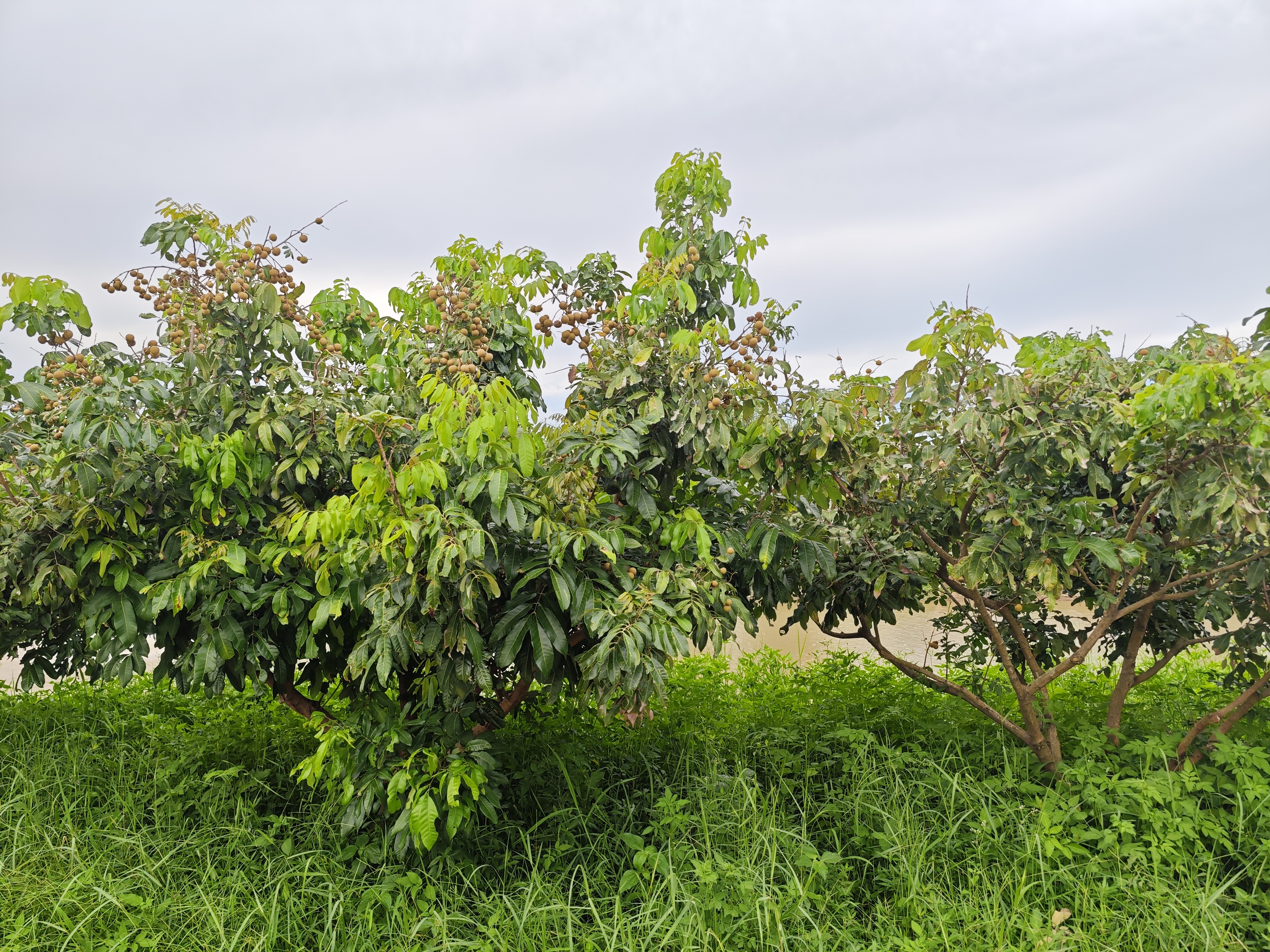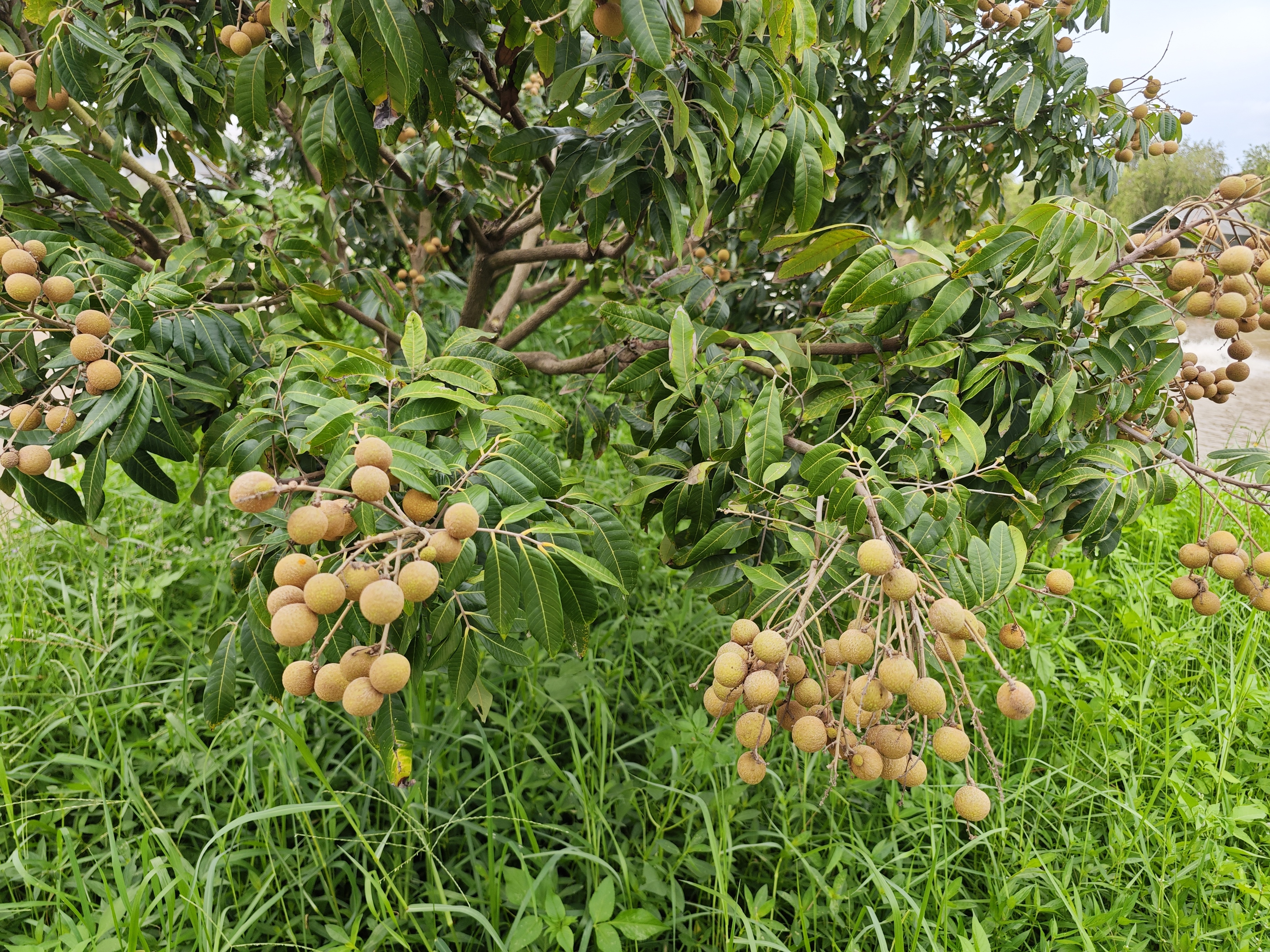 绿家种植的龙眼,种植于绿家鱼塘的塘边,种的不多,试验性种了几颗,有没有收成,完全靠天吃饭。