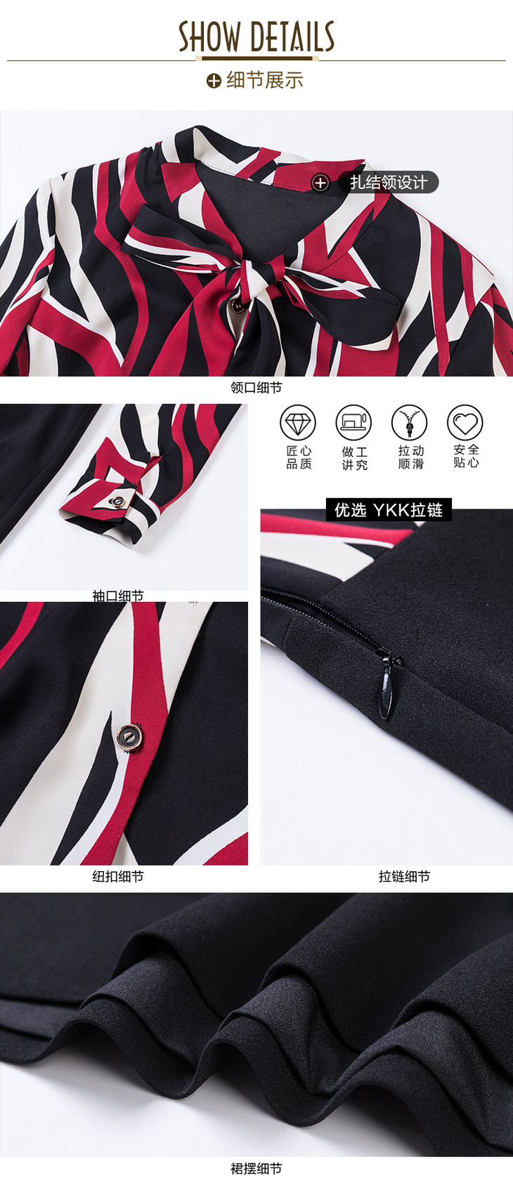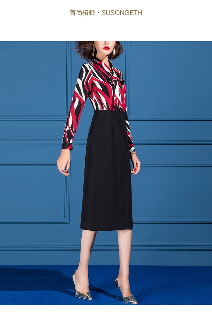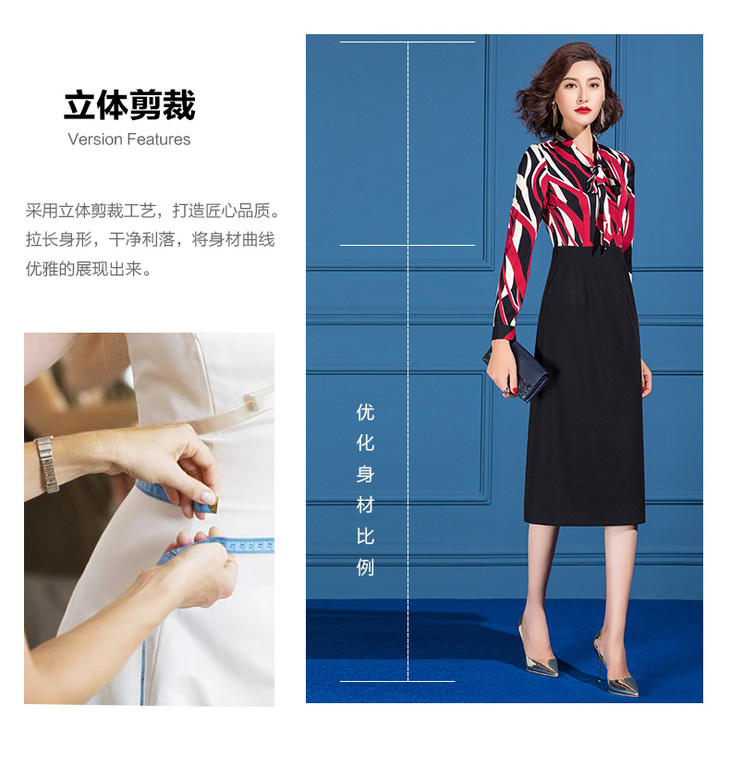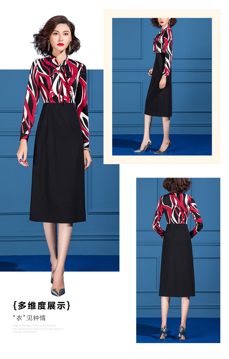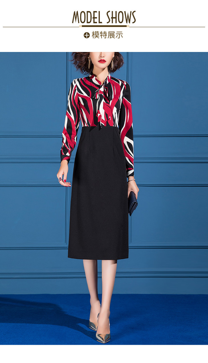 OLN-9782新款气质女神范OL收腰显瘦蝴蝶结领拼接包臀连衣裙