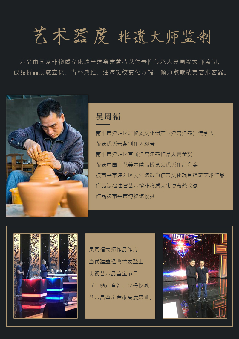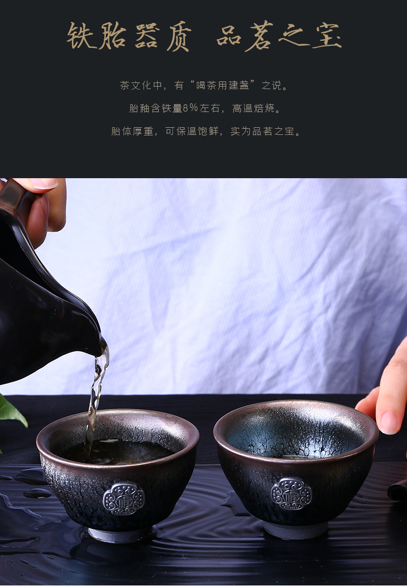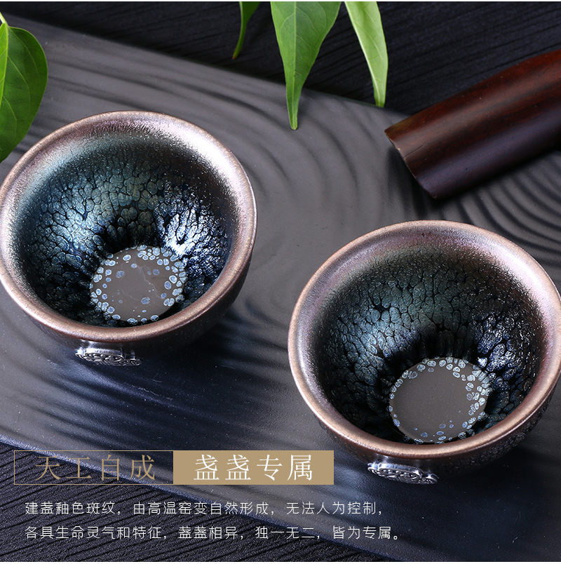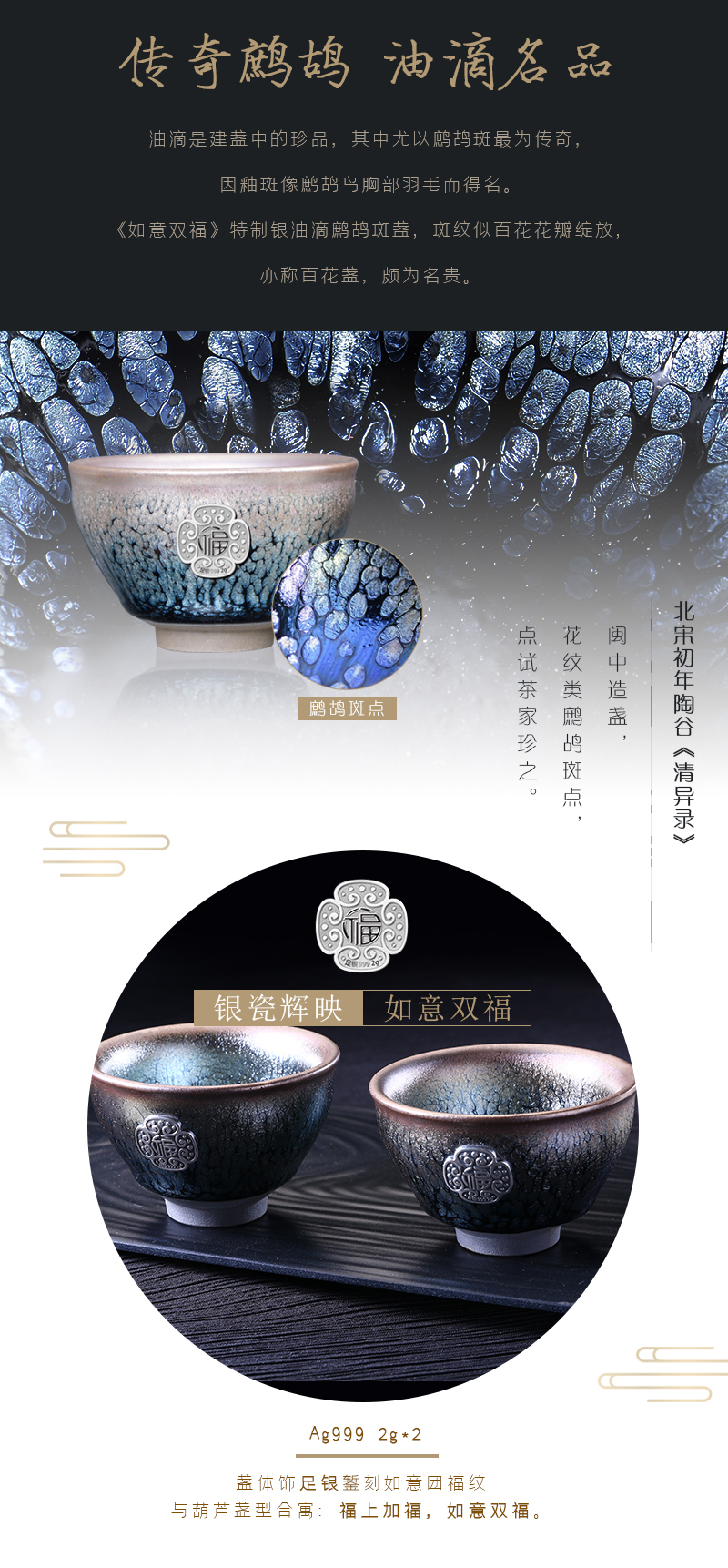 非遗大师传承如意双福银盏套装油滴鹧鸪斑建盏足银装饰