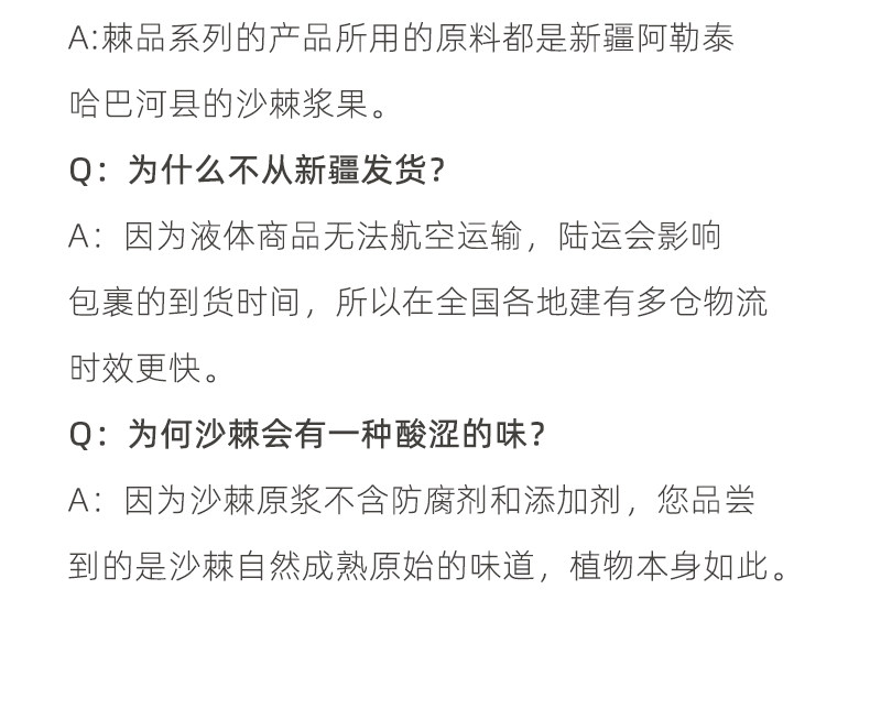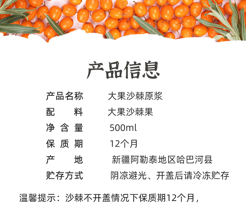 新疆阿勒泰 棘品大果沙棘原浆沙棘汁500ml家庭装