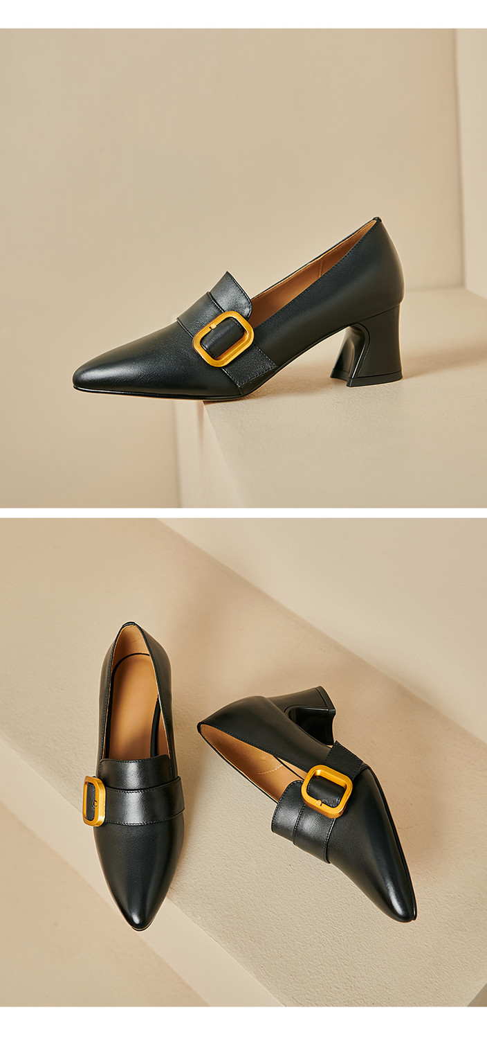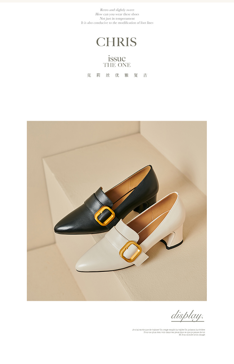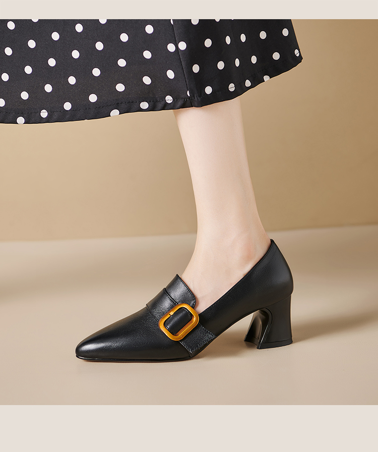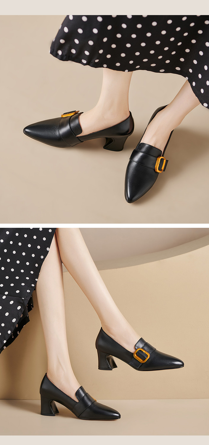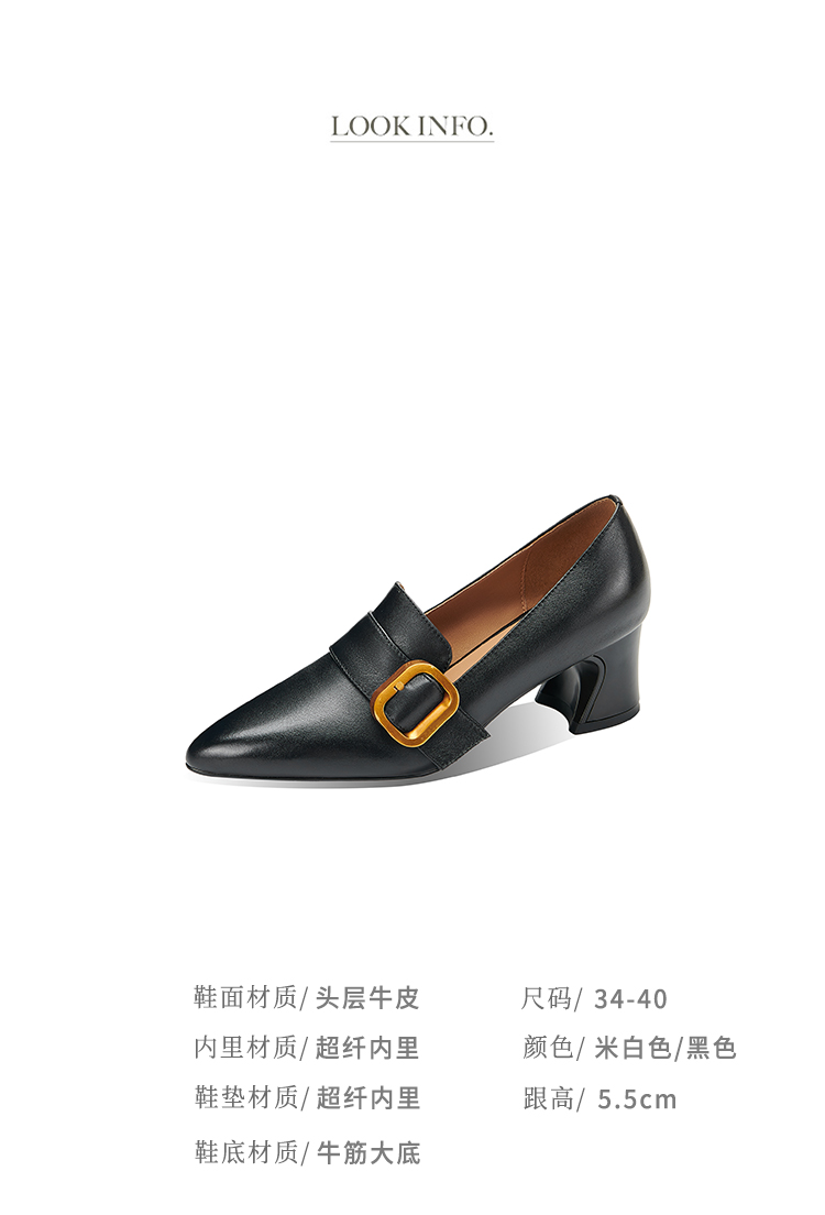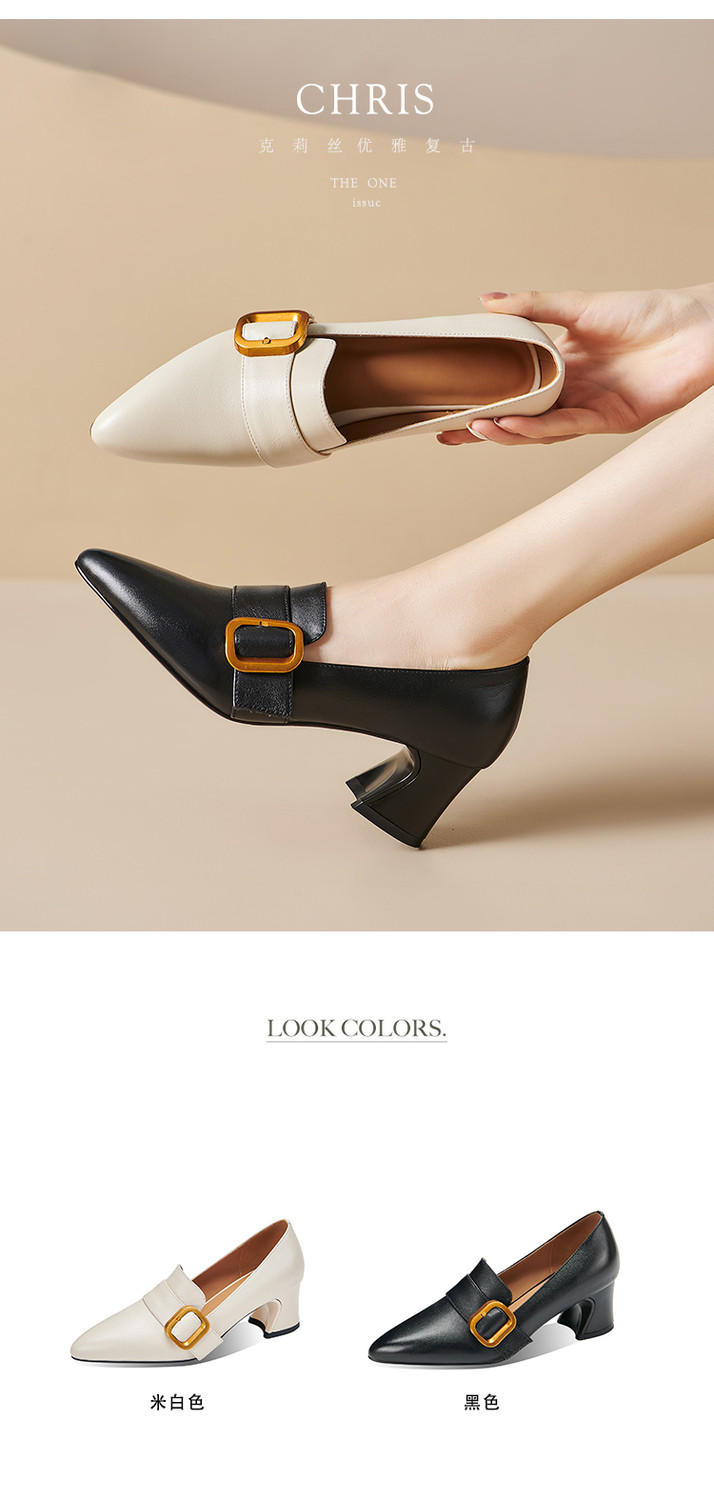 【预售5天】真皮尖头粗跟单鞋女新款时尚女鞋春秋百搭高跟鞋复古英伦风小皮鞋SY&F3125