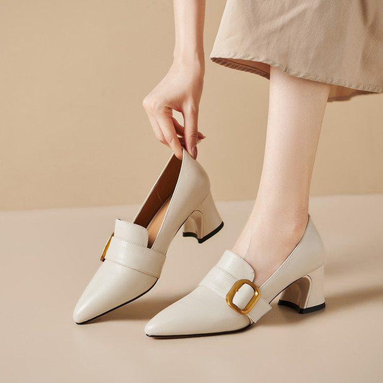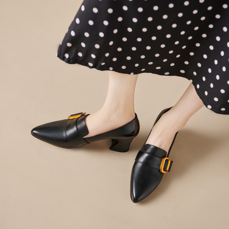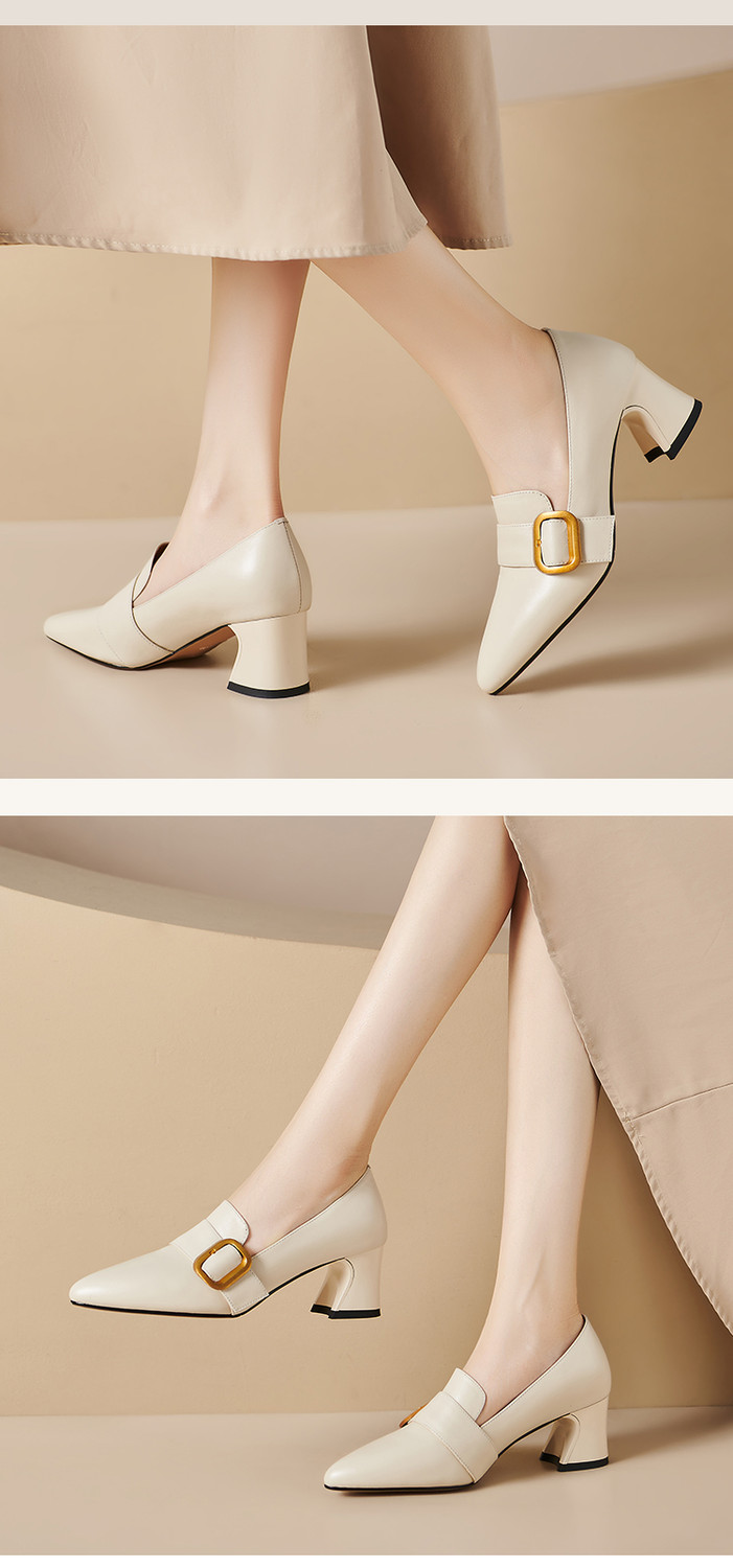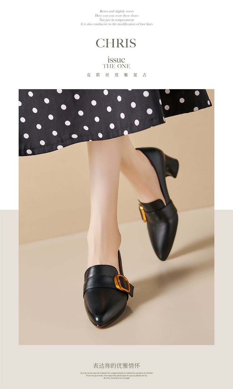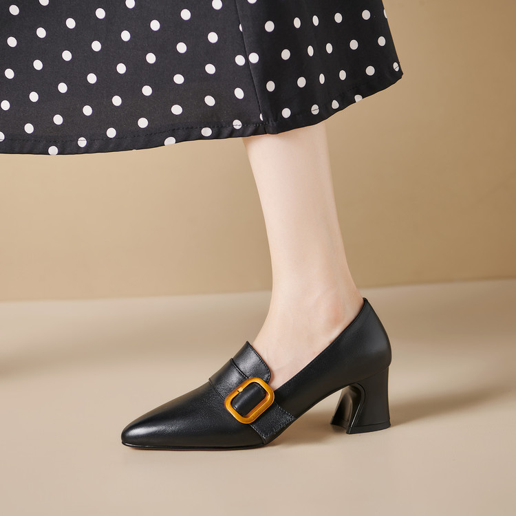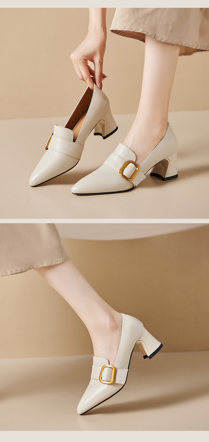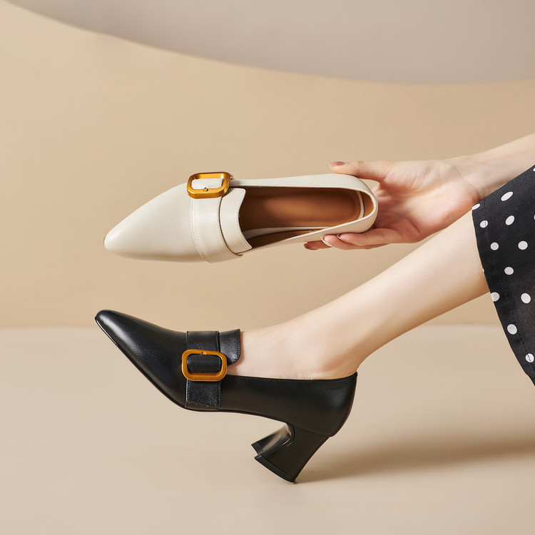 【预售5天】真皮尖头粗跟单鞋女新款时尚女鞋春秋百搭高跟鞋复古英伦风小皮鞋SY&F3125