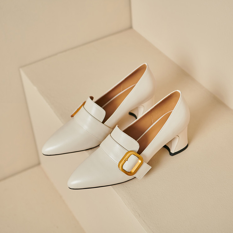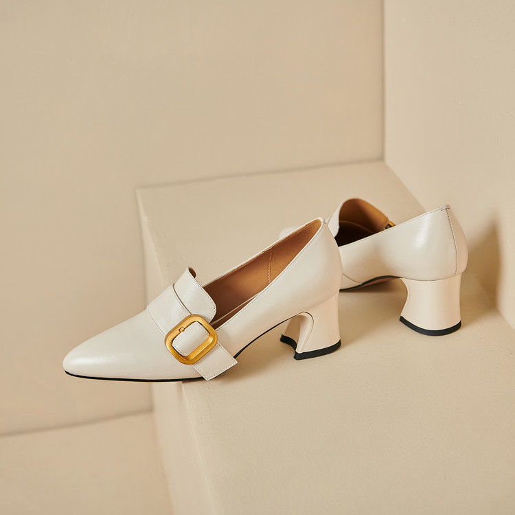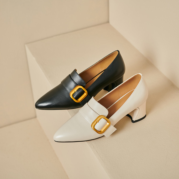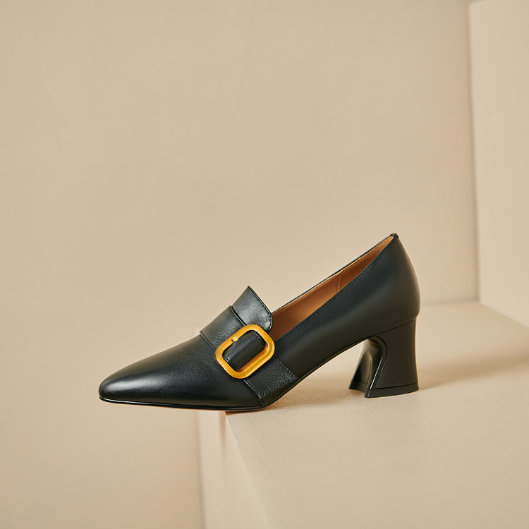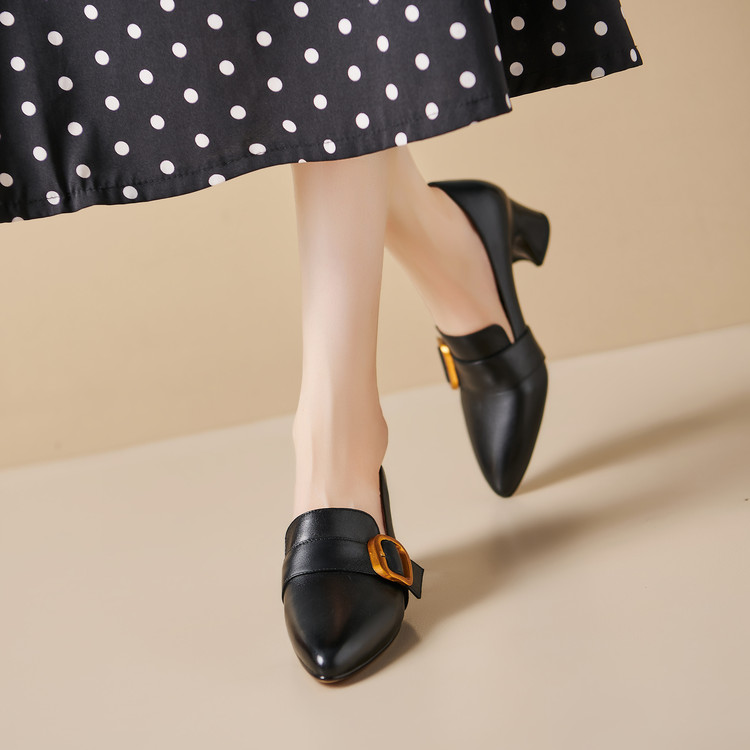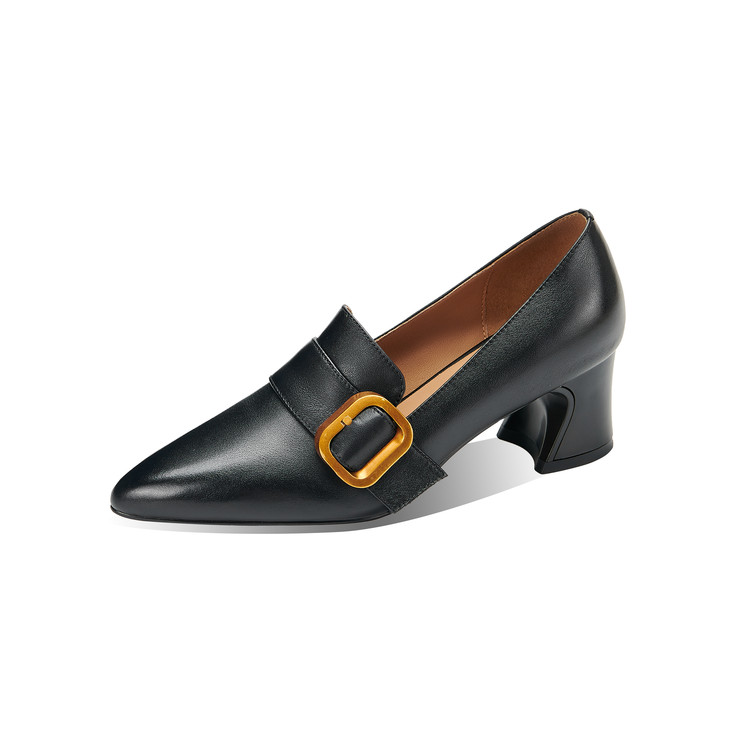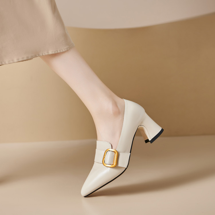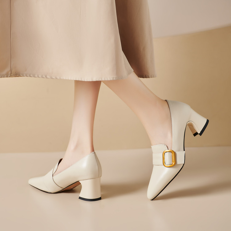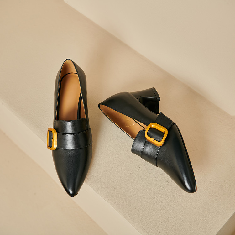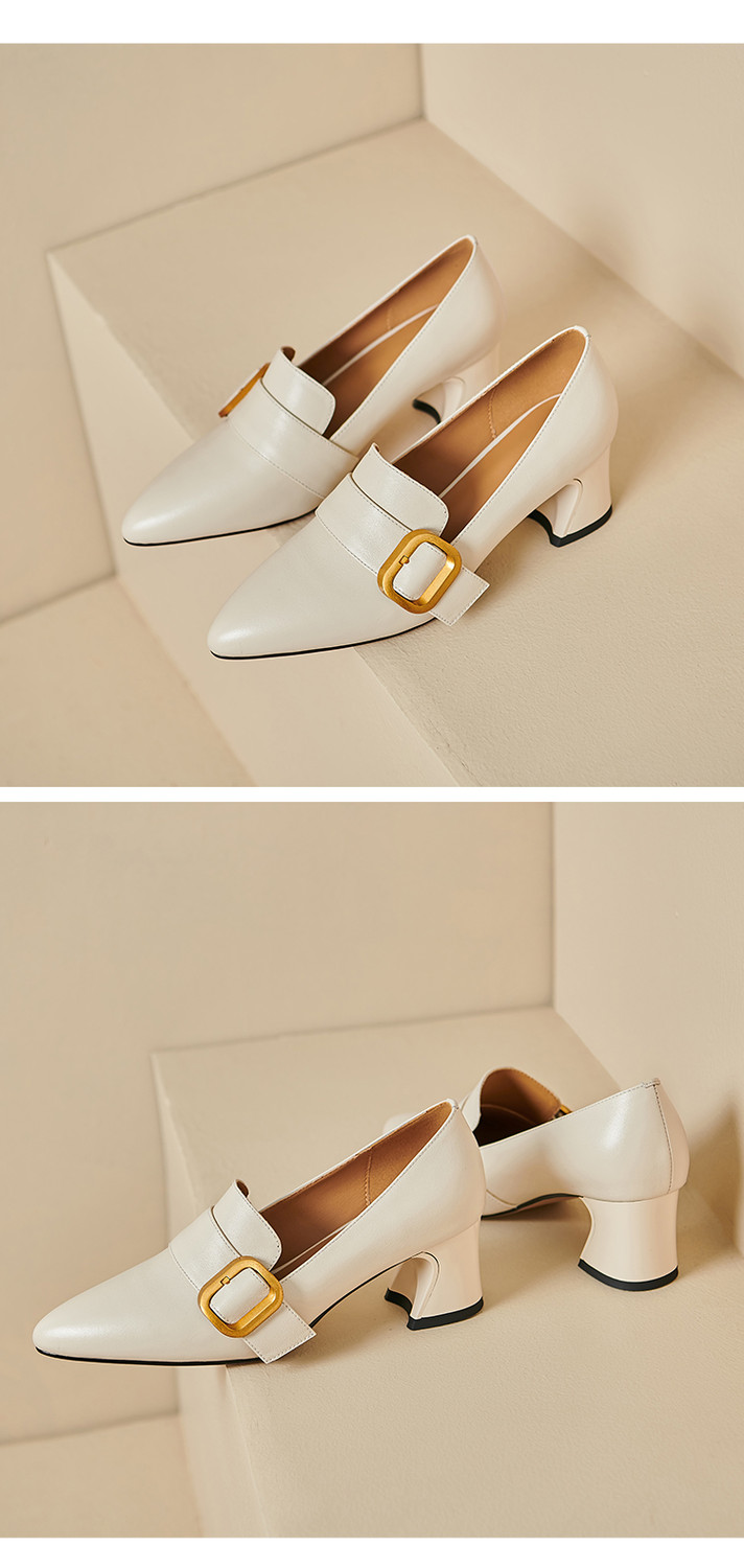 【预售5天】真皮尖头粗跟单鞋女新款时尚女鞋春秋百搭高跟鞋复古英伦风小皮鞋SY&F3125