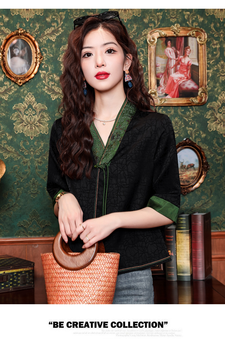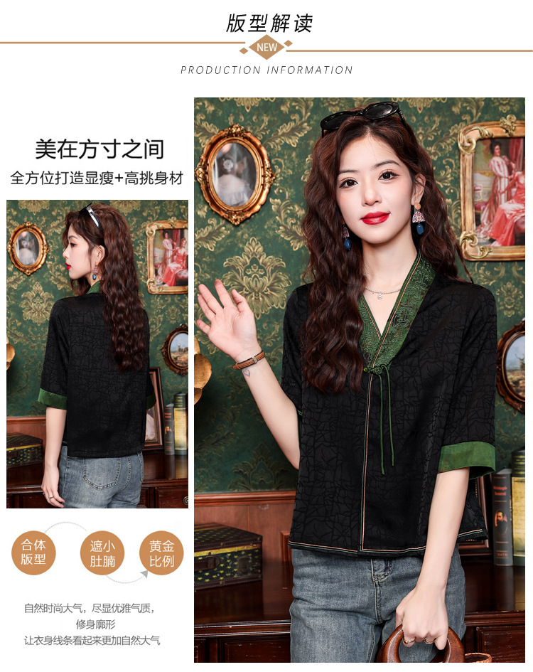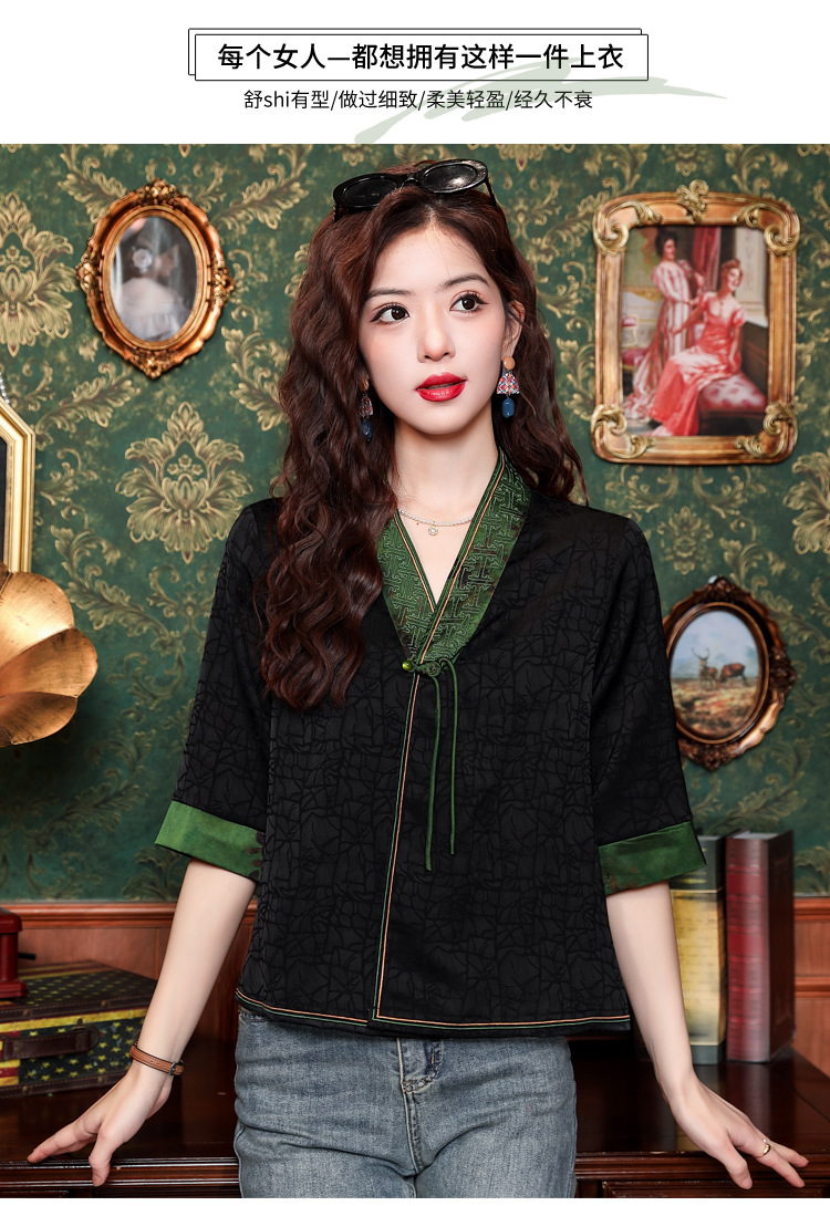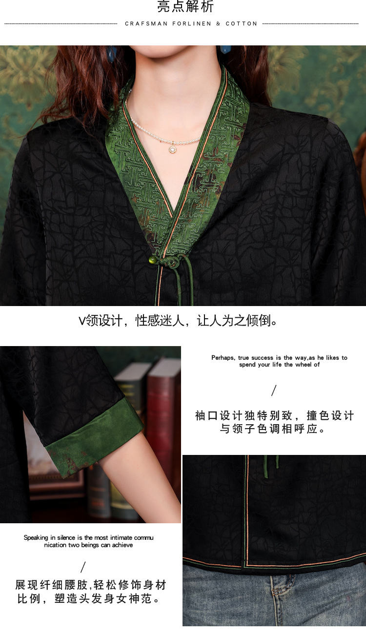 贵夫人香云纱新中式,唐装衬衫大码国风妈妈衬衣KQL-422H8572