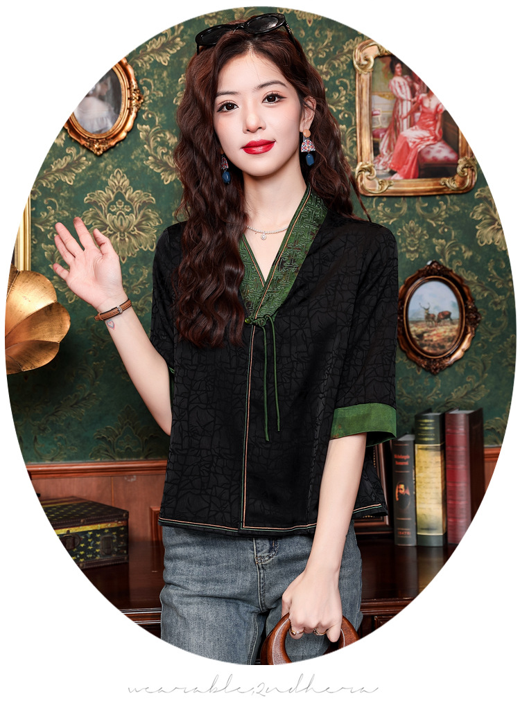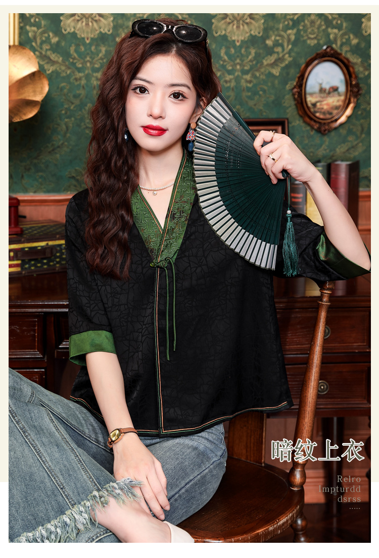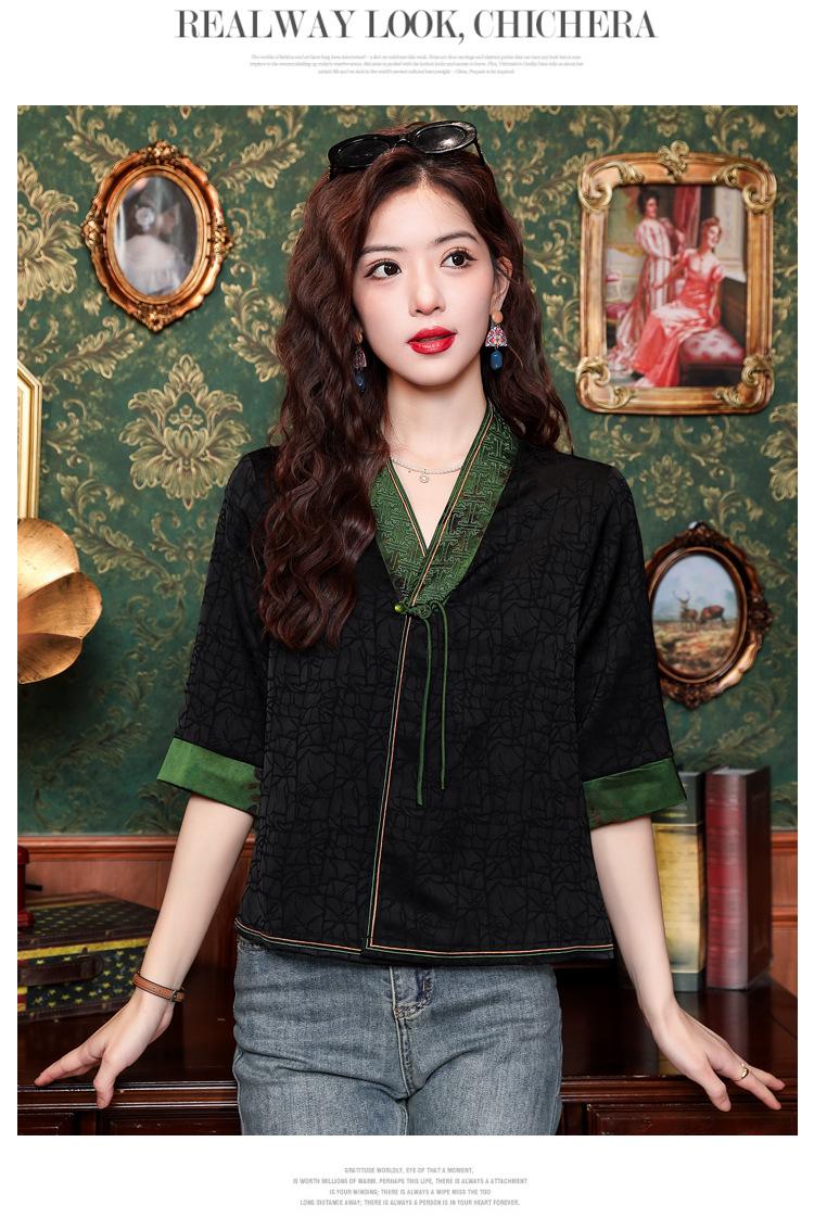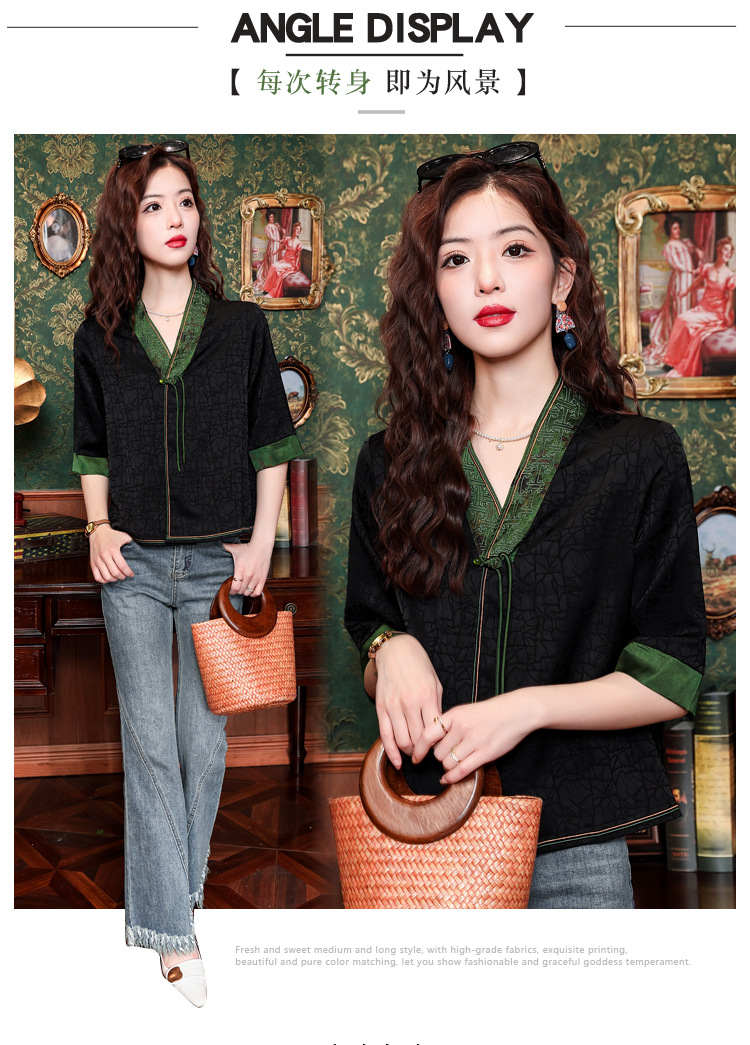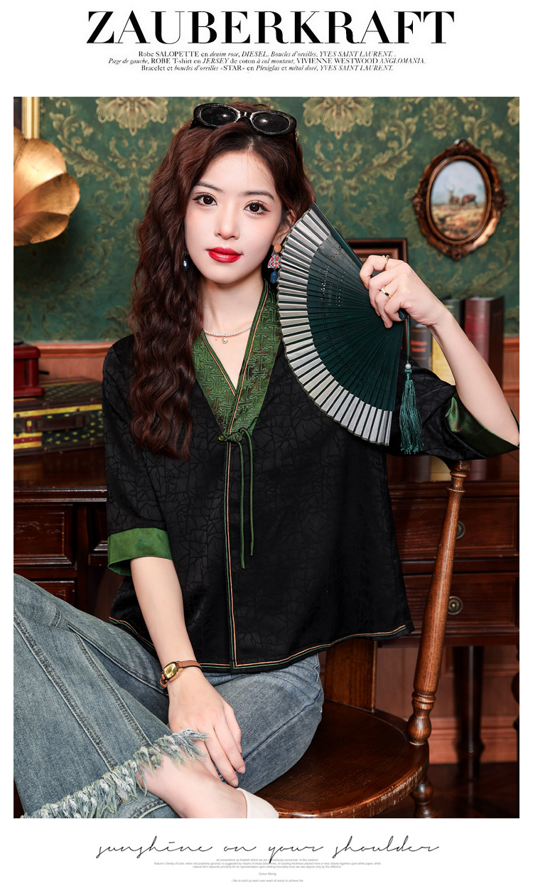 贵夫人香云纱新中式,唐装衬衫大码国风妈妈衬衣KQL-422H8572