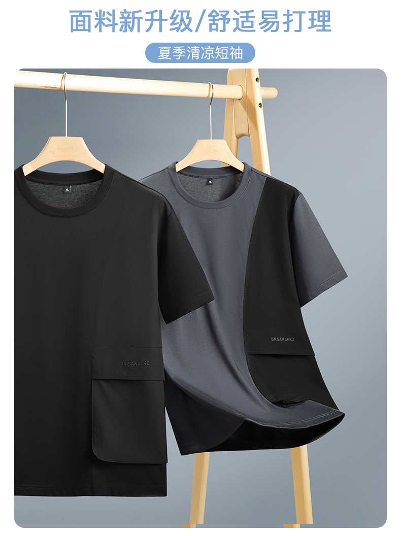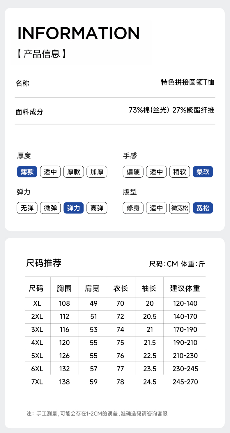 【丝光棉】【新款DPF】大依优型大码短袖T恤圆领加肥加大男装大号大码上衣男士休闲半袖夏季