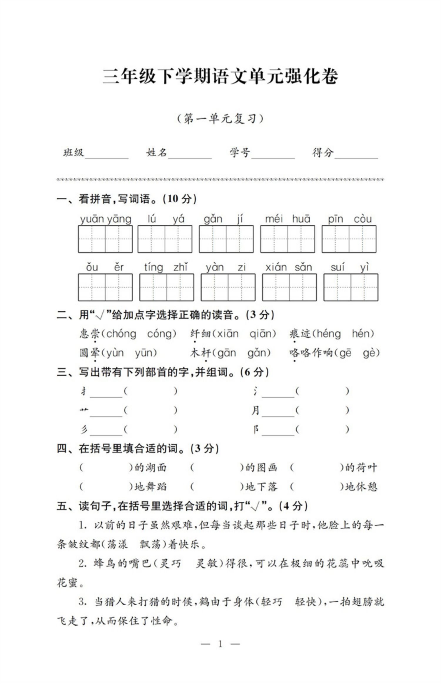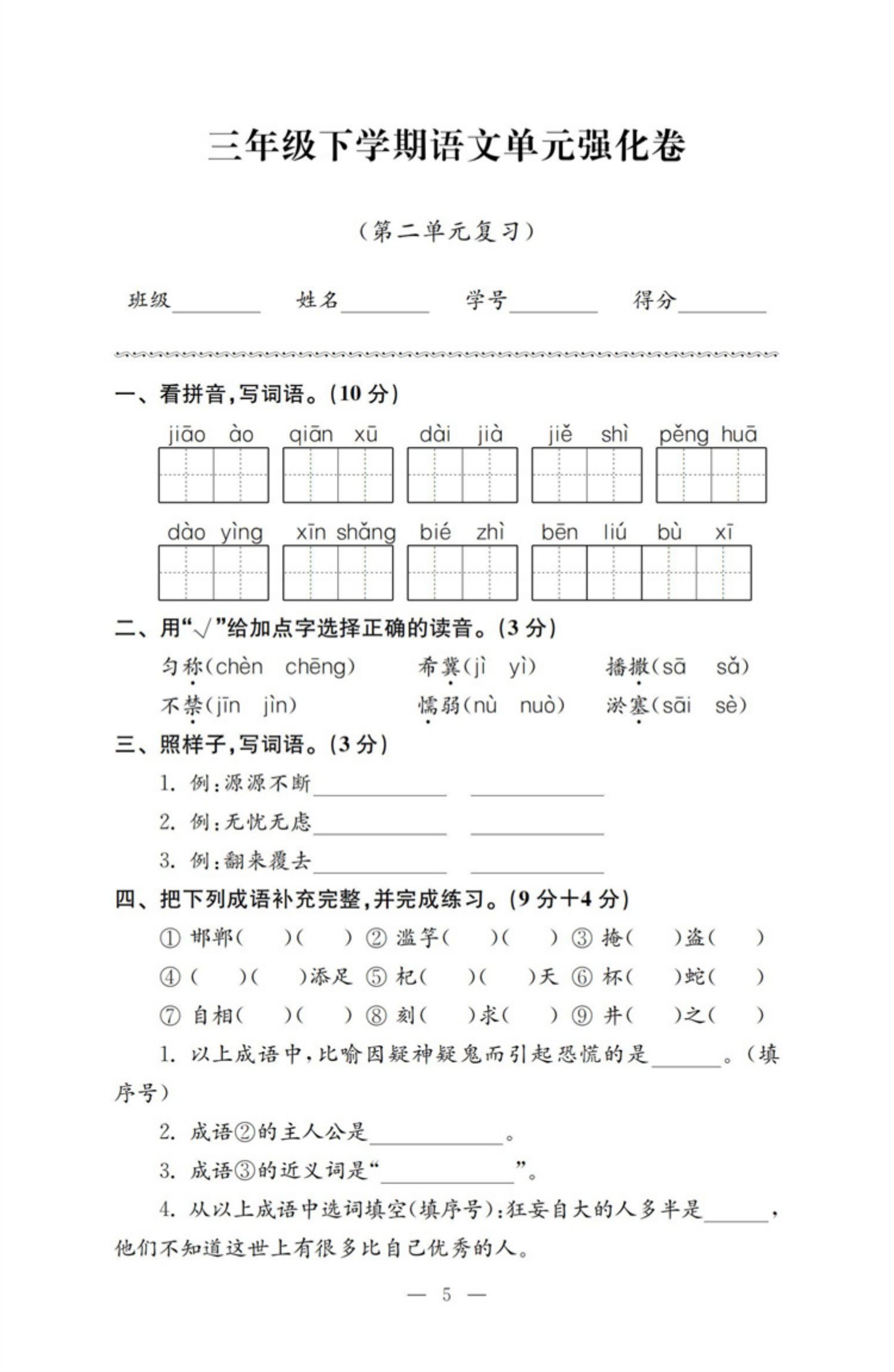 2025春 小学语文强化拓展卷 提优版 三年级下册 人教版 部编版 3下 含电子答案 小学同步教辅 江苏凤凰教育出版社