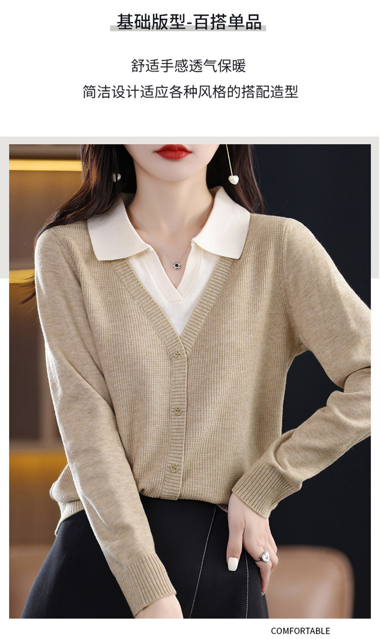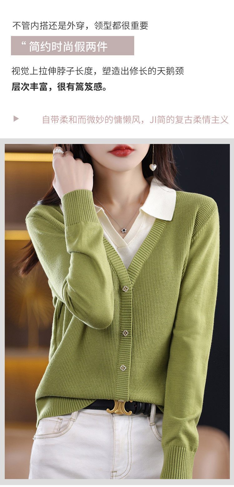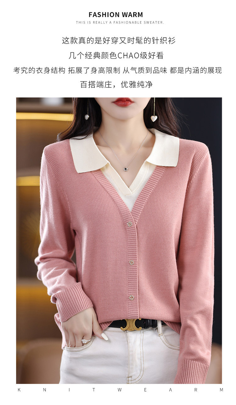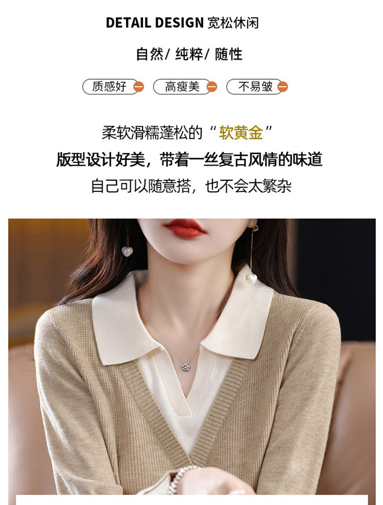洋气韩版假短款宽松POLO领毛衣两件翻领长袖上衣针织衫QH-JR-382