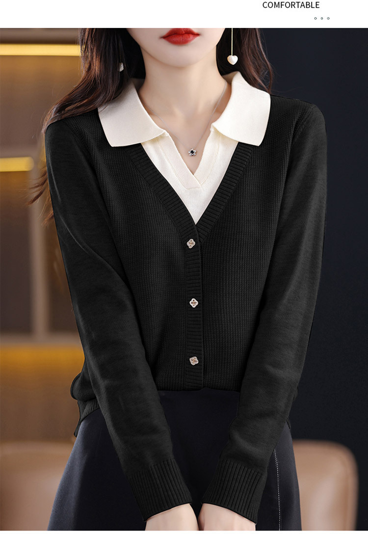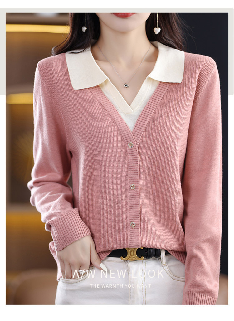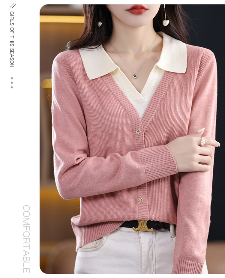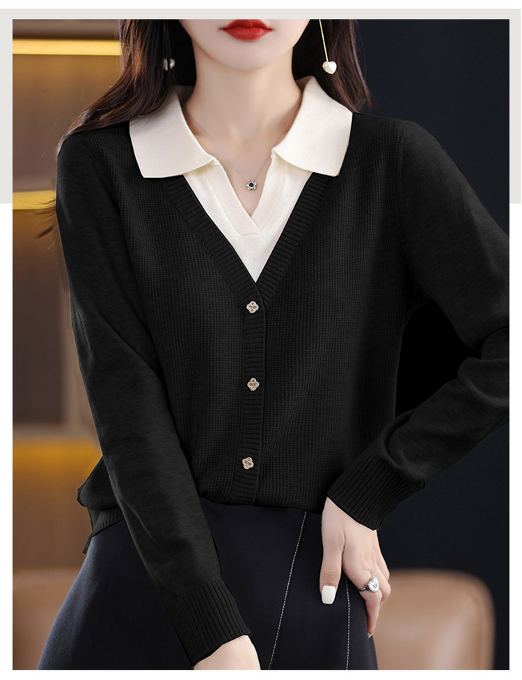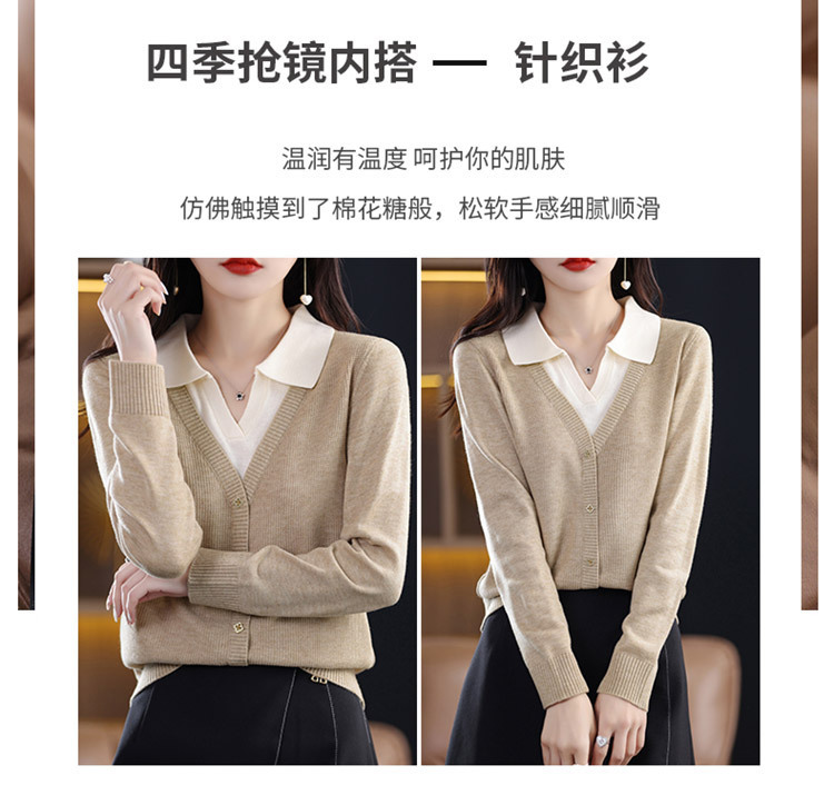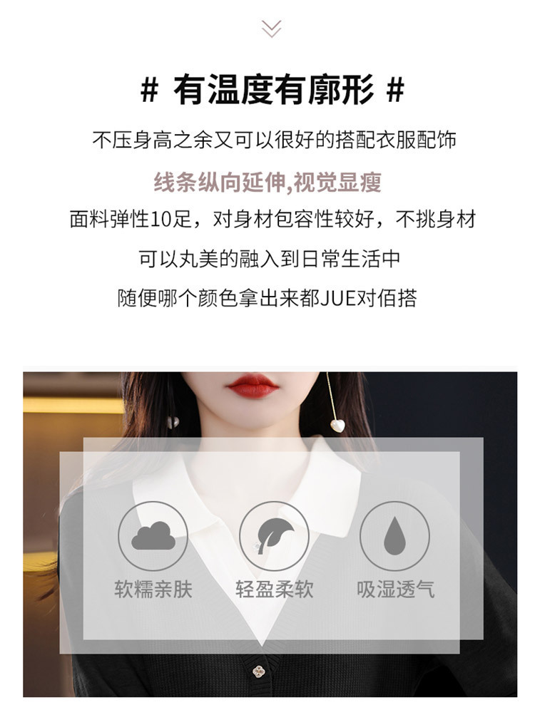 洋气韩版假短款宽松POLO领毛衣两件翻领长袖上衣针织衫QH-JR-382
