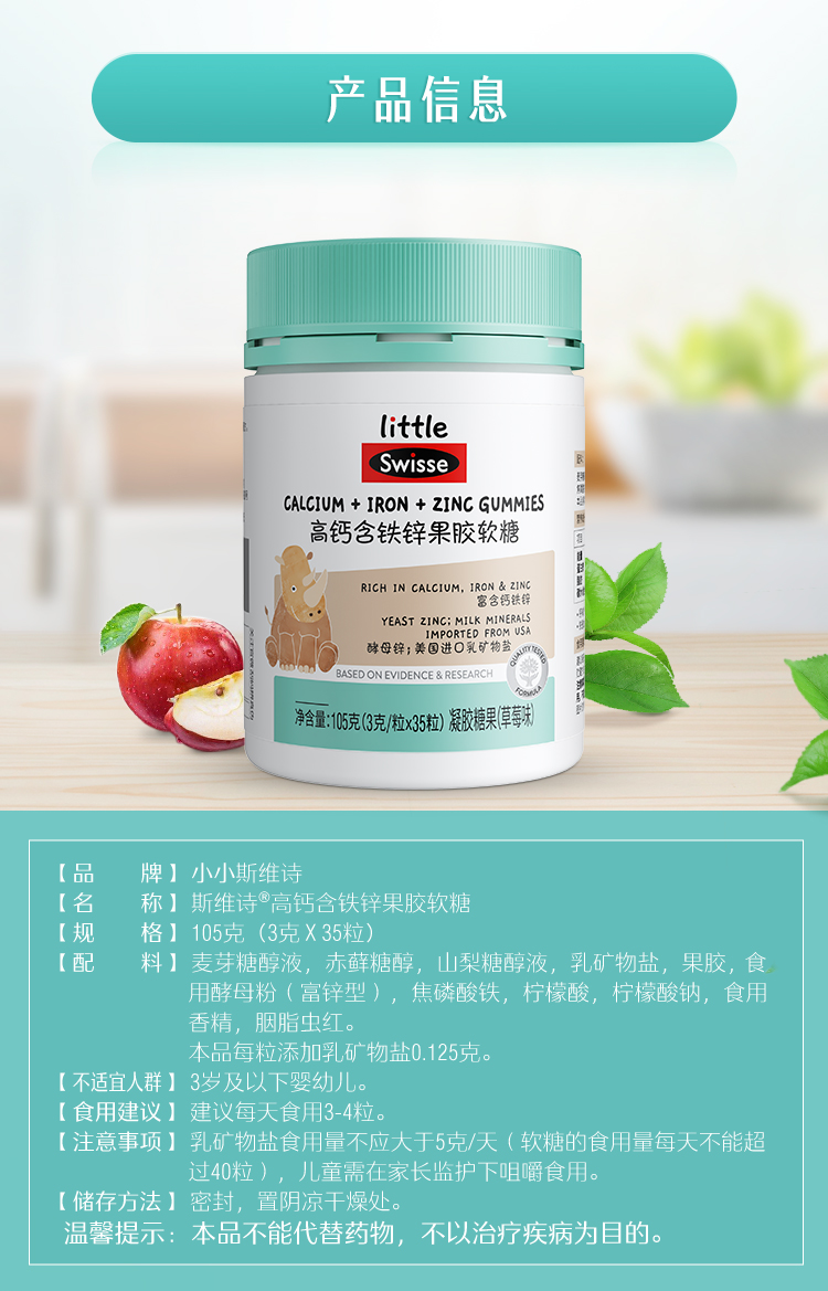 高钙含铁锌果胶软糖(草莓味)35粒装