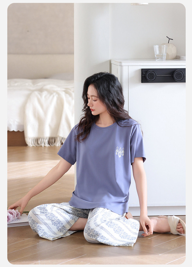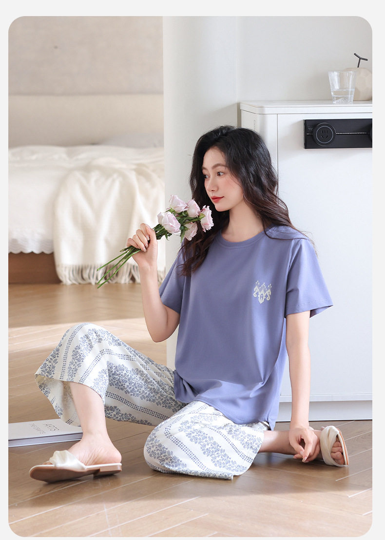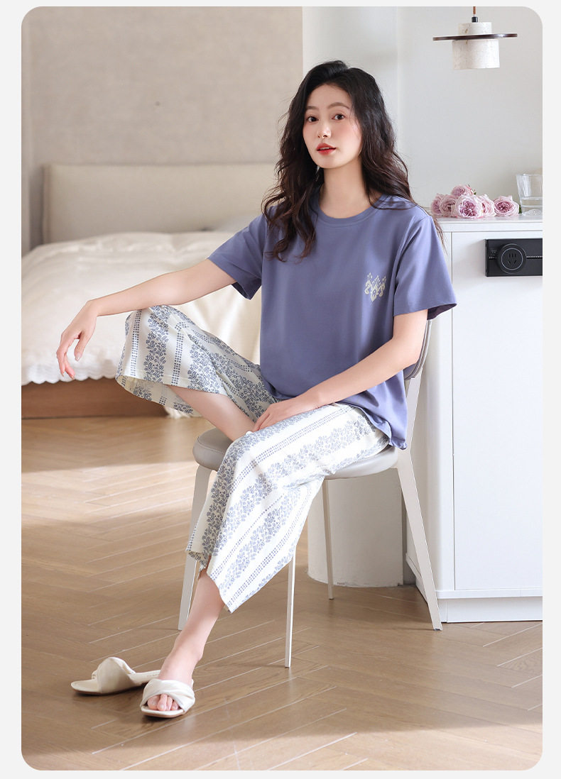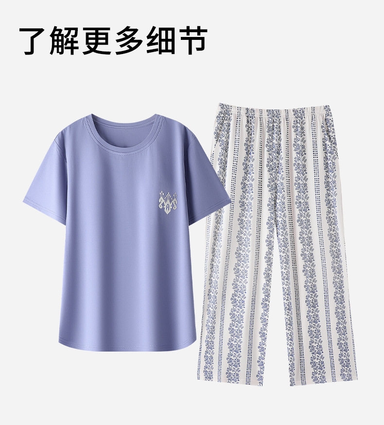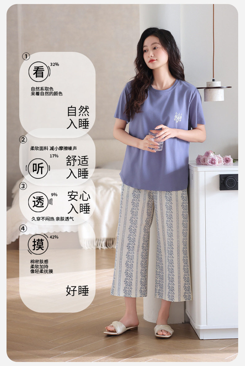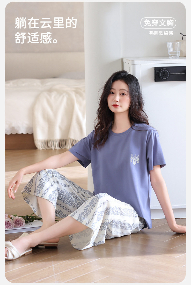 睡衣女夏季拉架纯棉短袖七分裤休闲家居服舒适夏天青年带胸垫套装 JL-MZD6857/MZD6858/MZD6859