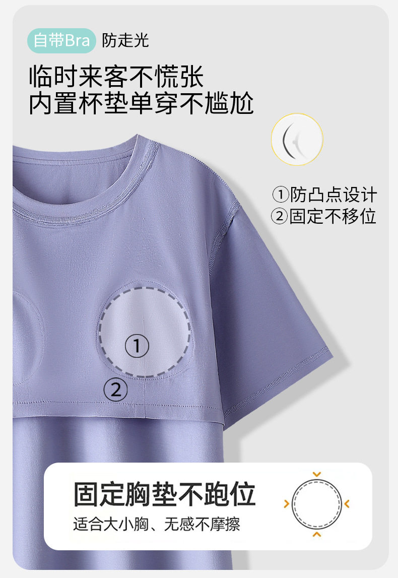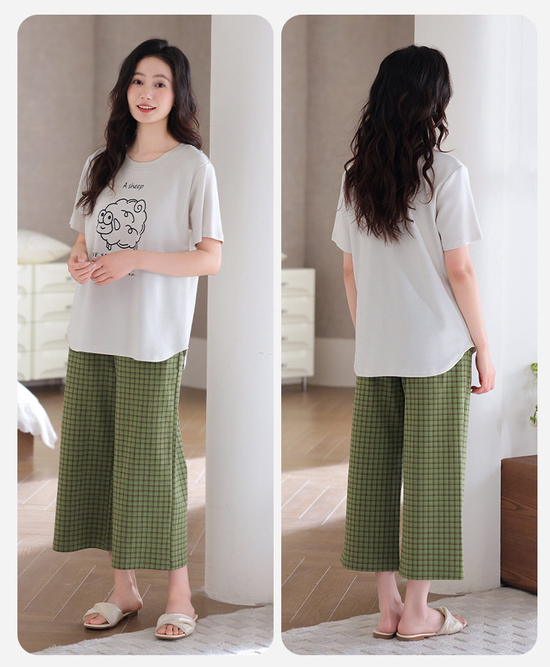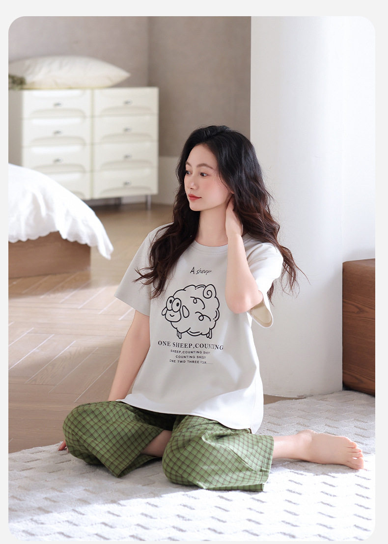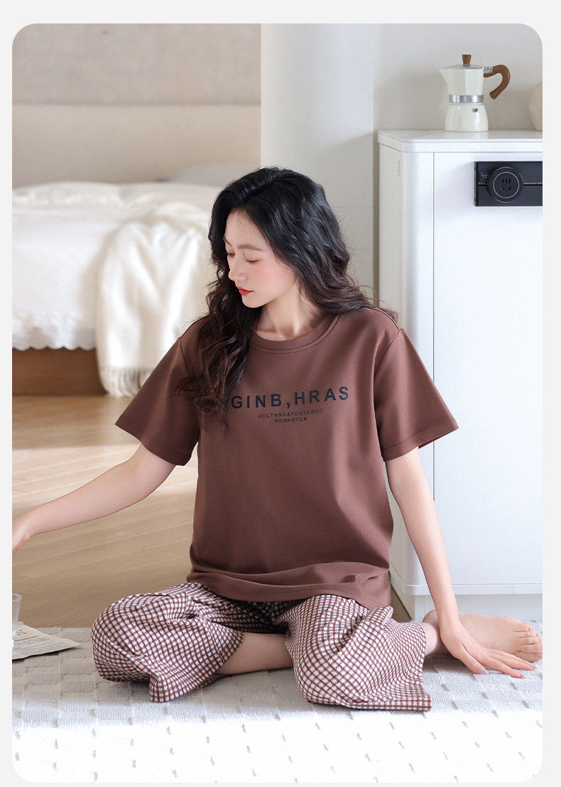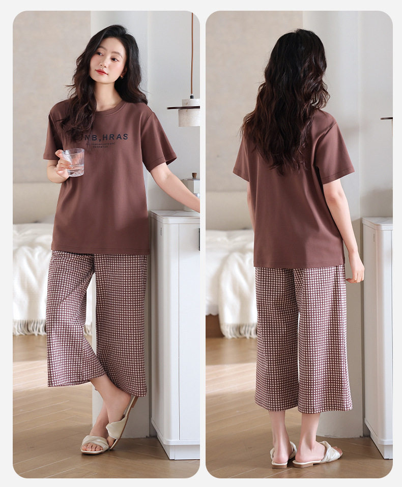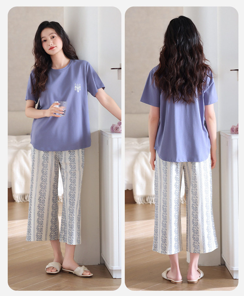 睡衣女夏季拉架纯棉短袖七分裤休闲家居服舒适夏天青年带胸垫套装 JL-MZD6857/MZD6858/MZD6859