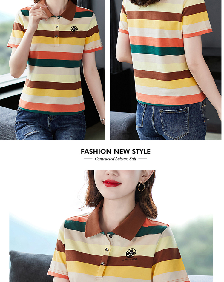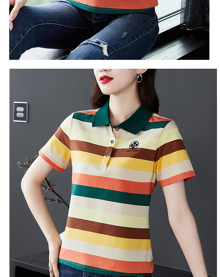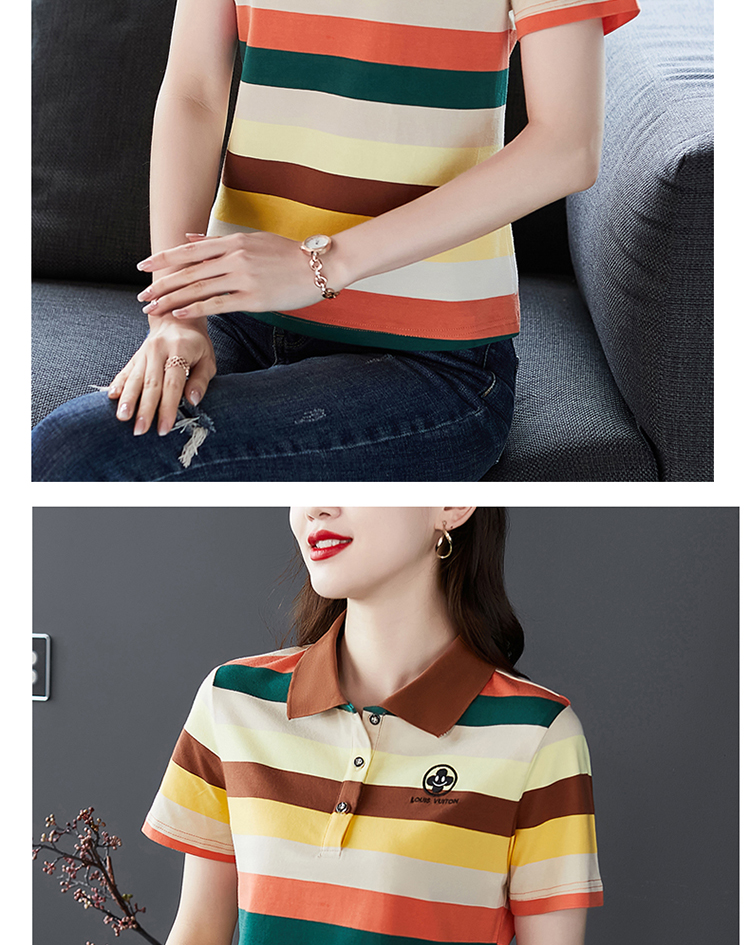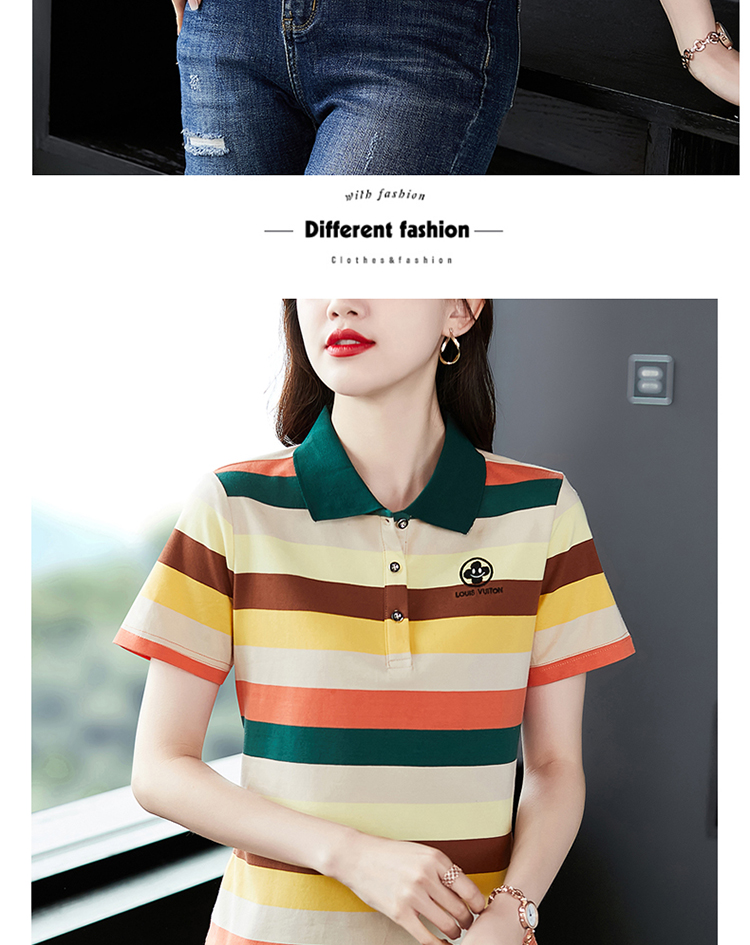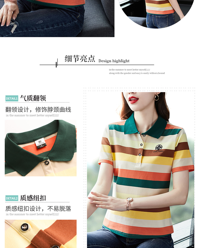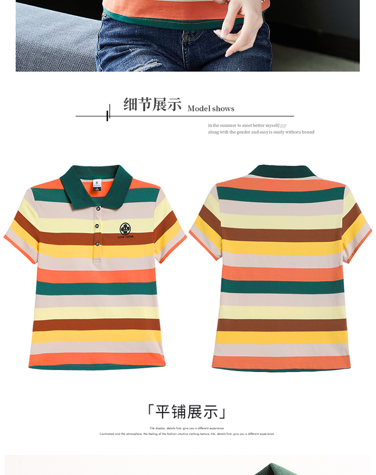 SP25260夏季薄款时尚大码翻领条纹POLO衫上衣