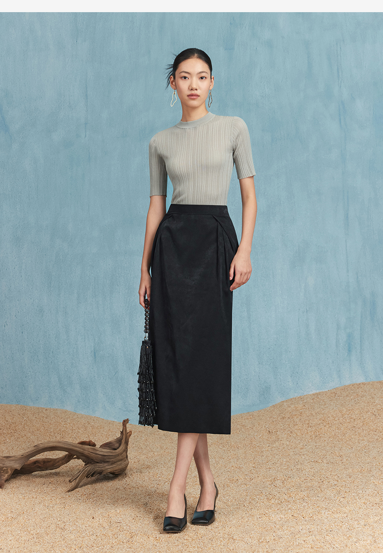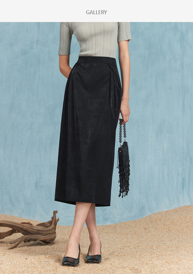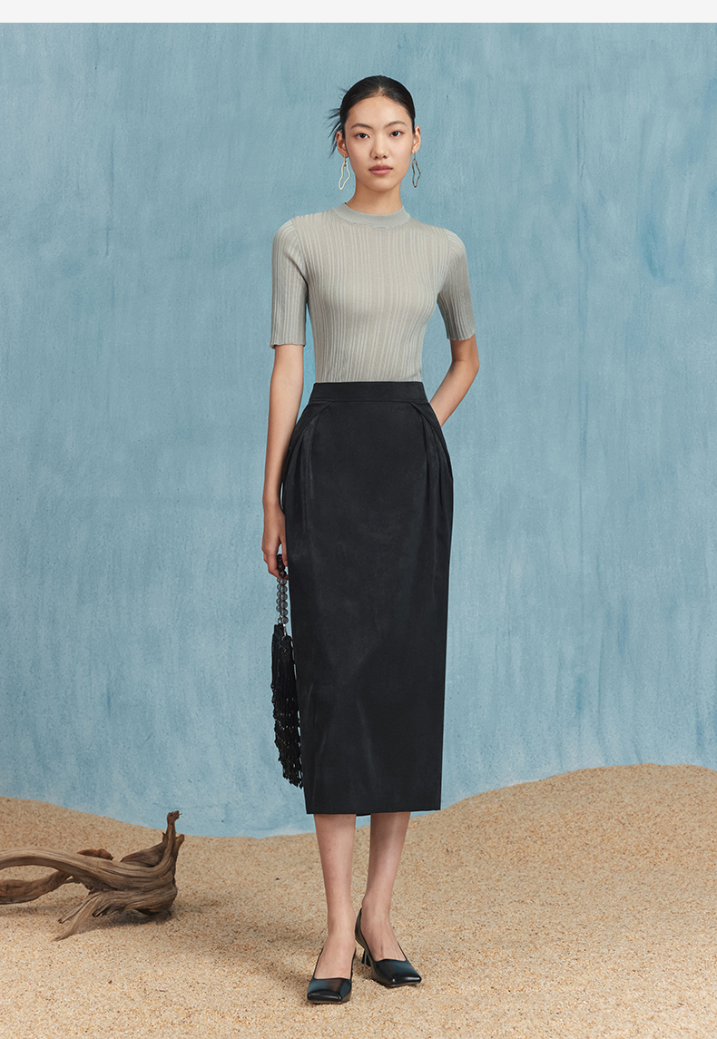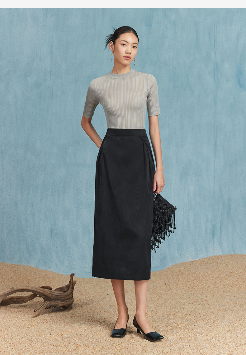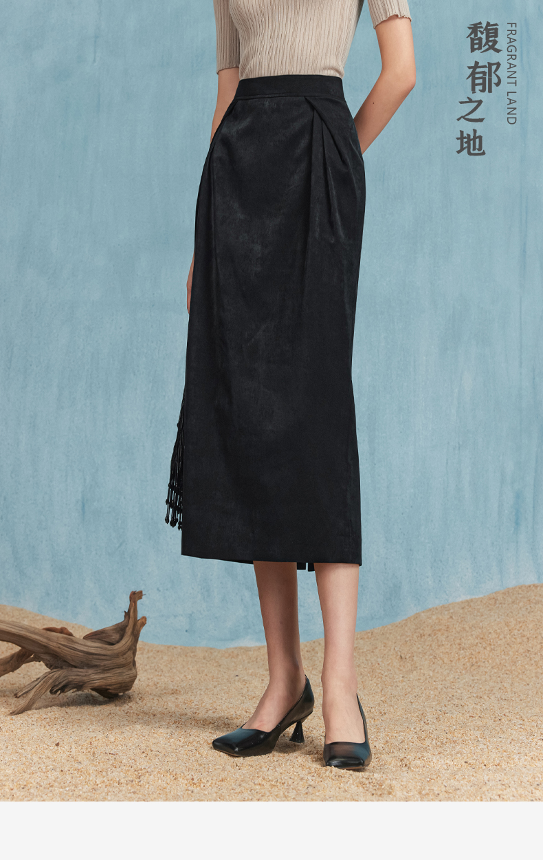西嘉C+IMPRESS/西嘉日本进口气质半身裙女秋季桃皮绒肌理感郁金香裙子BQ2303004