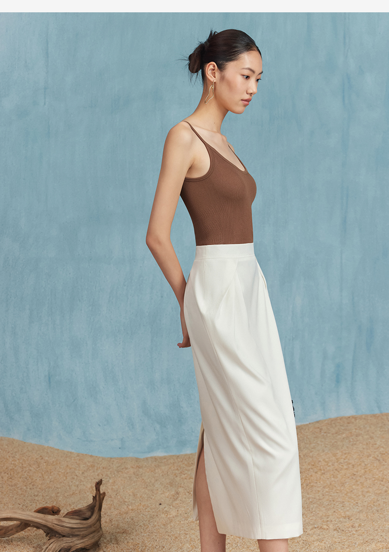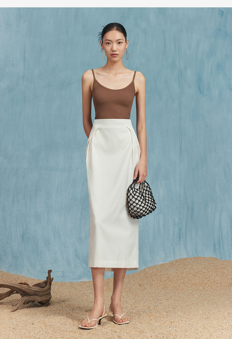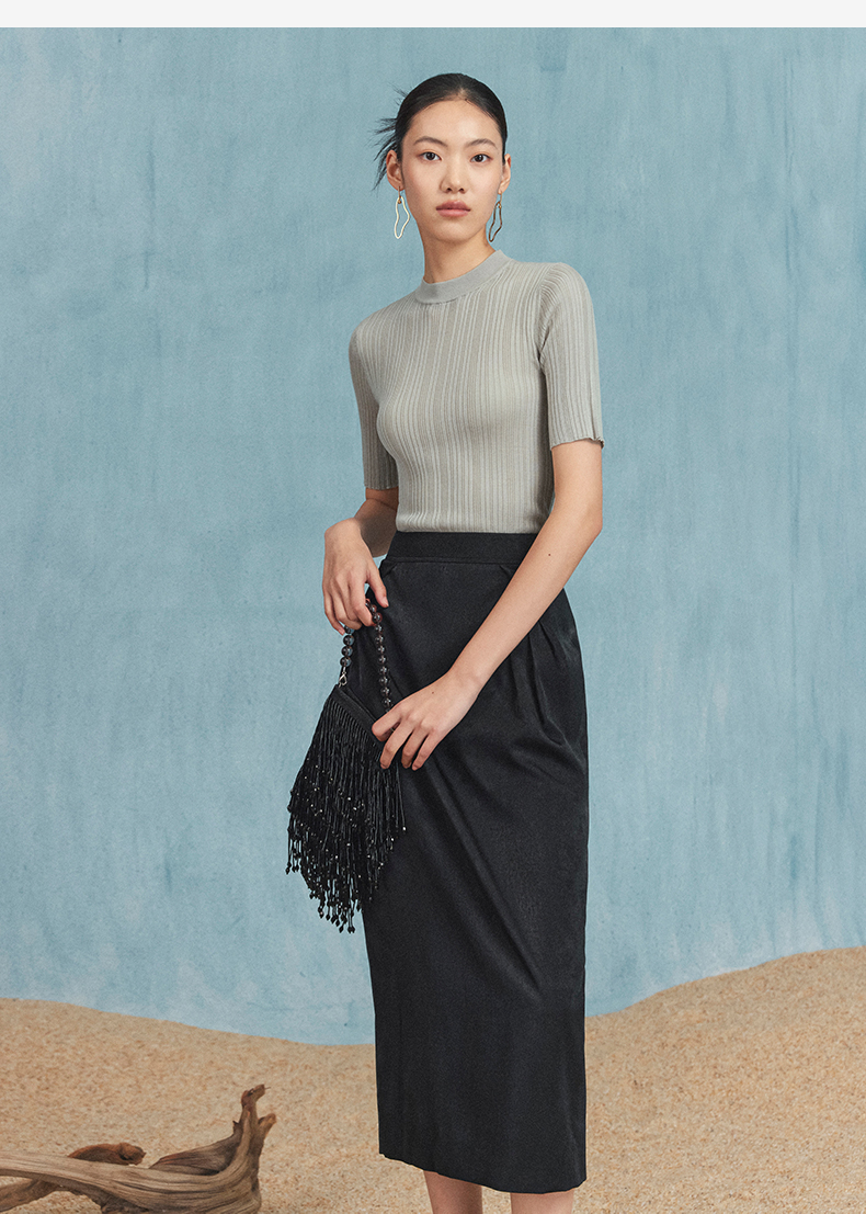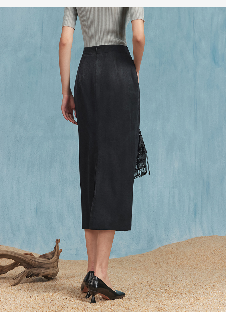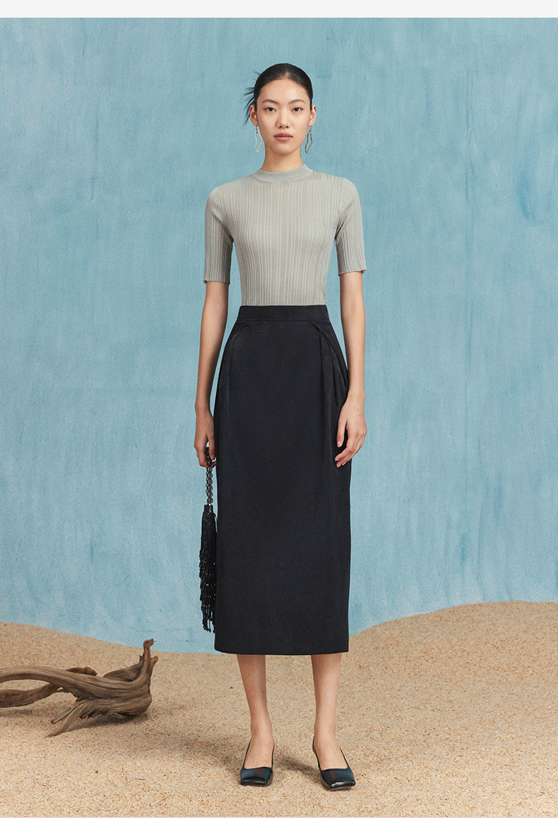 西嘉C+IMPRESS/西嘉日本进口气质半身裙女秋季桃皮绒肌理感郁金香裙子BQ2303004