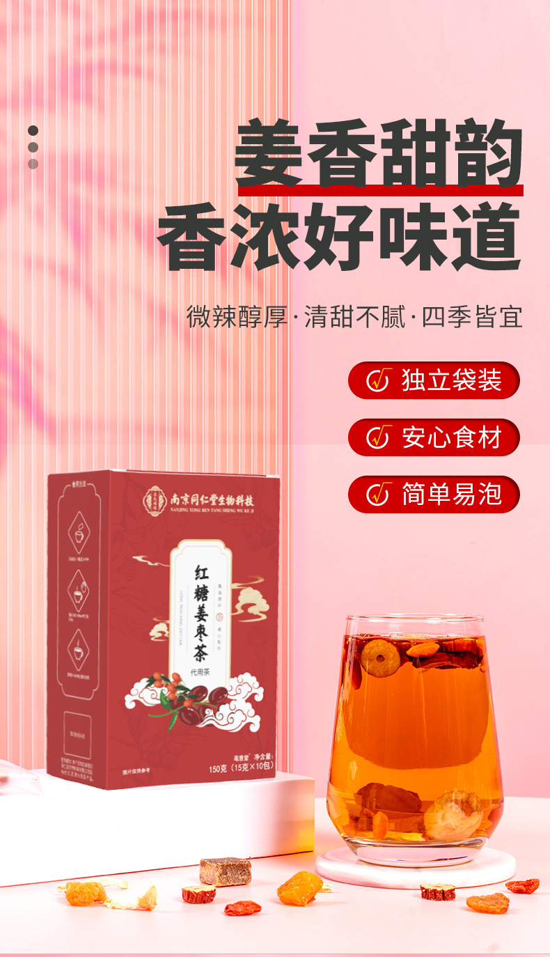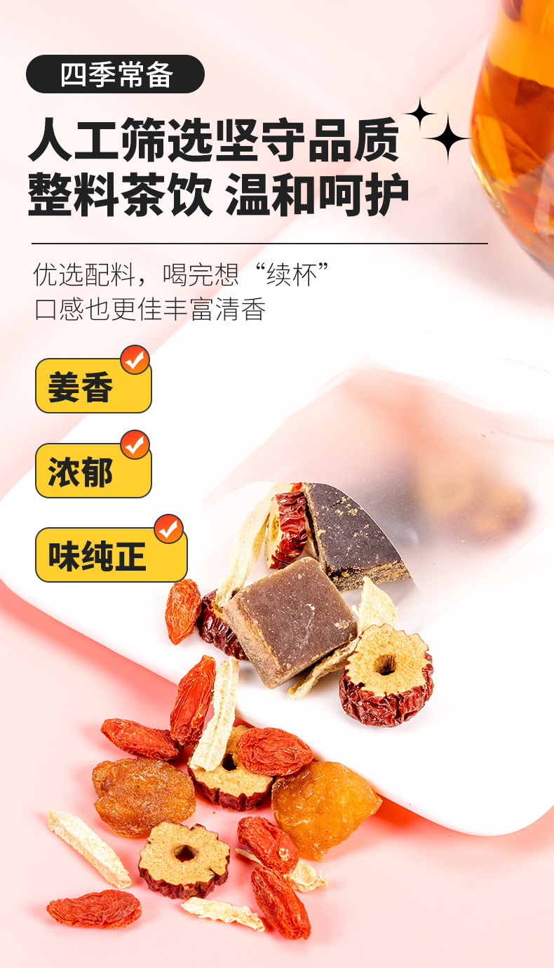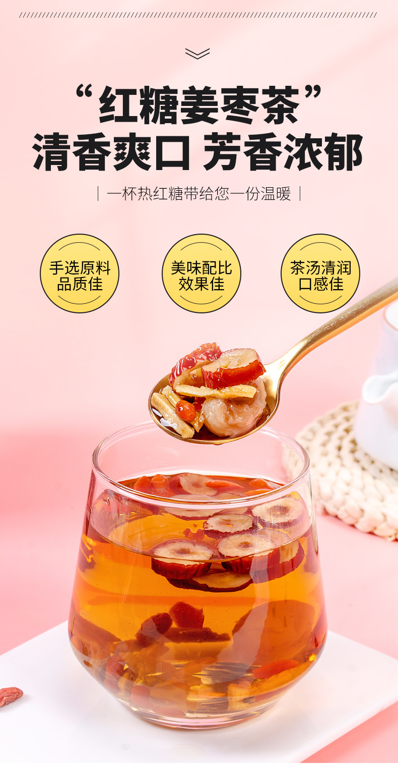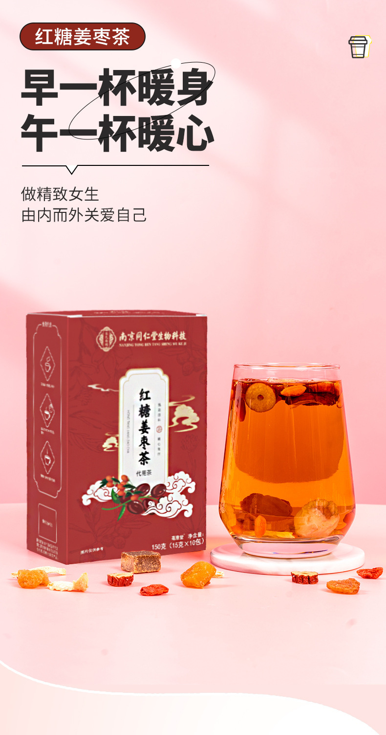 【温润不甜!养生方便】南京同仁堂红糖姜枣茶大姨妈桂圆红枣枸杞黑糖养生暖茶独立包装。xb