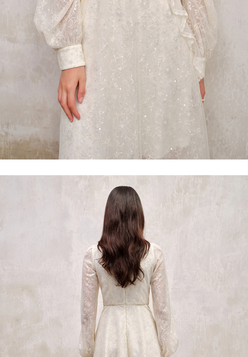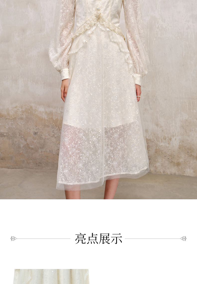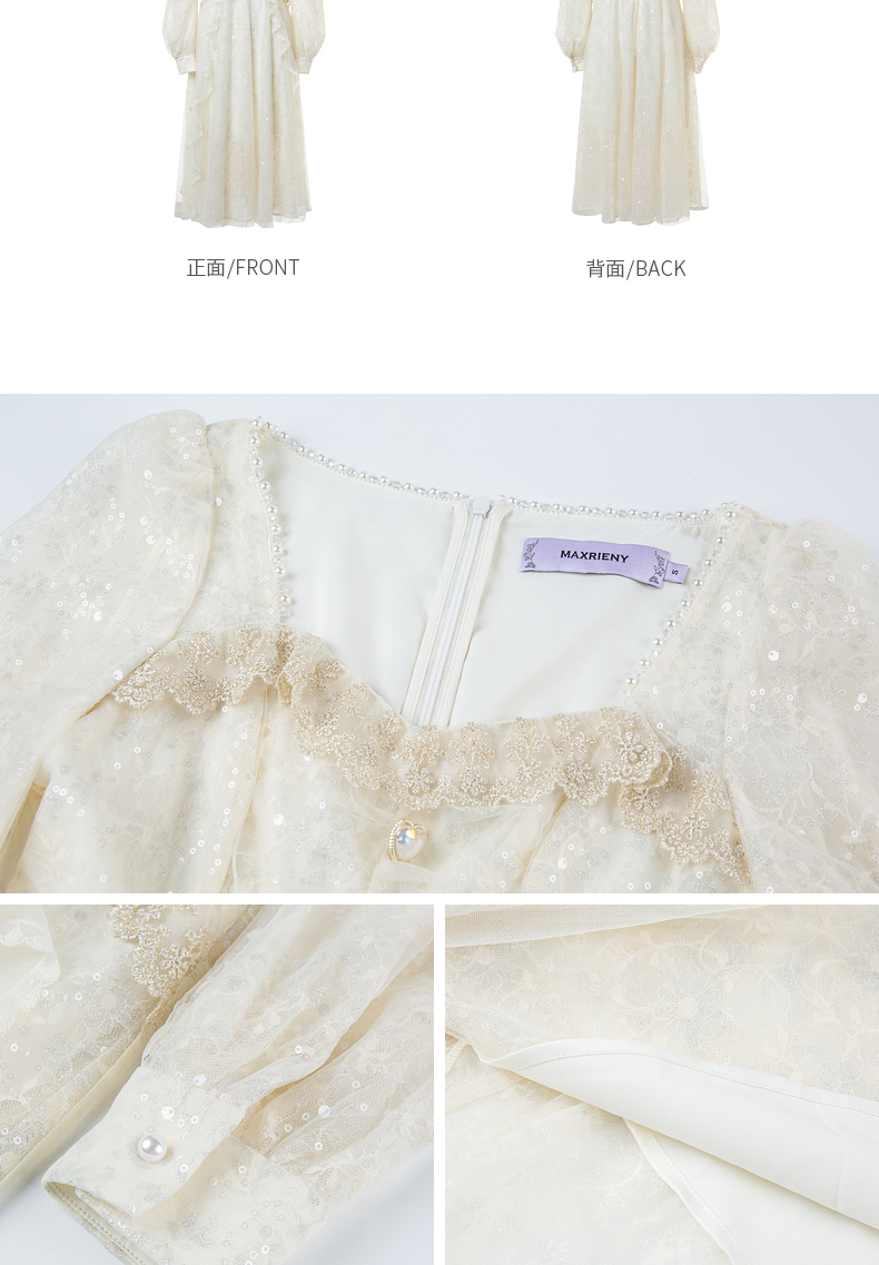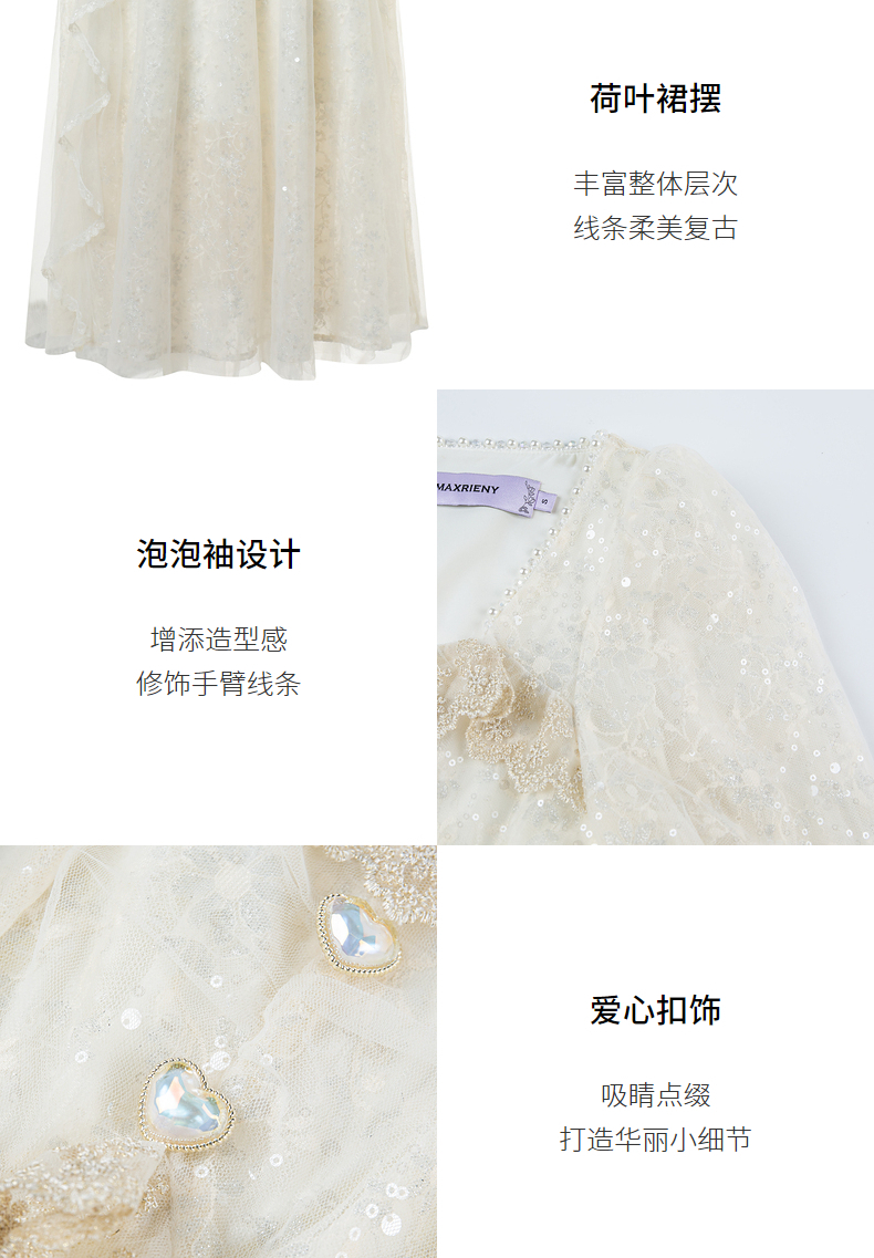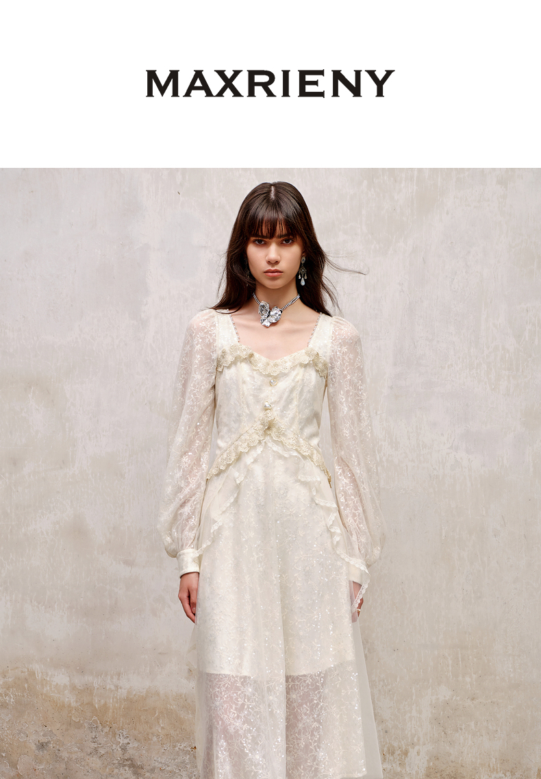 MAXRIENY宫廷复古风荷叶边仙美连衣裙订婚小白裙(货号:MS88DR566)