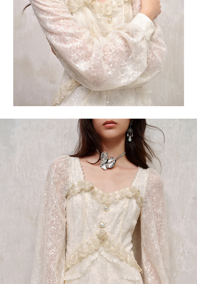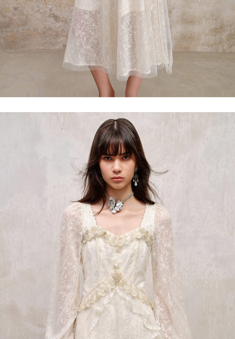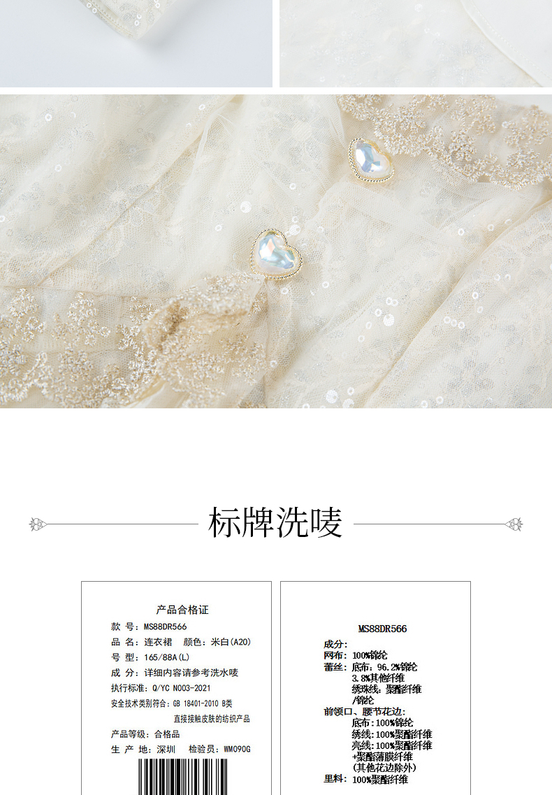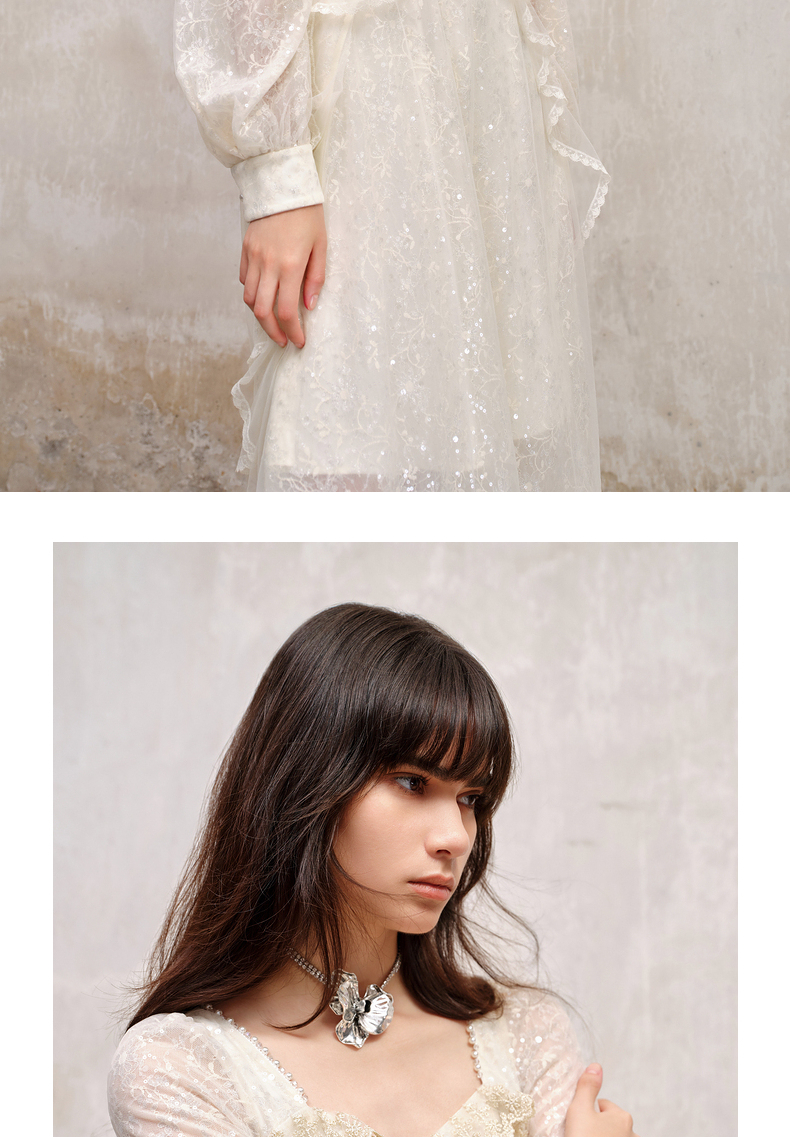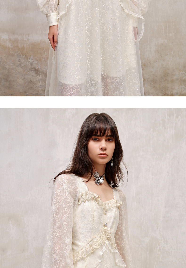 MAXRIENY宫廷复古风荷叶边仙美连衣裙订婚小白裙(货号:MS88DR566)