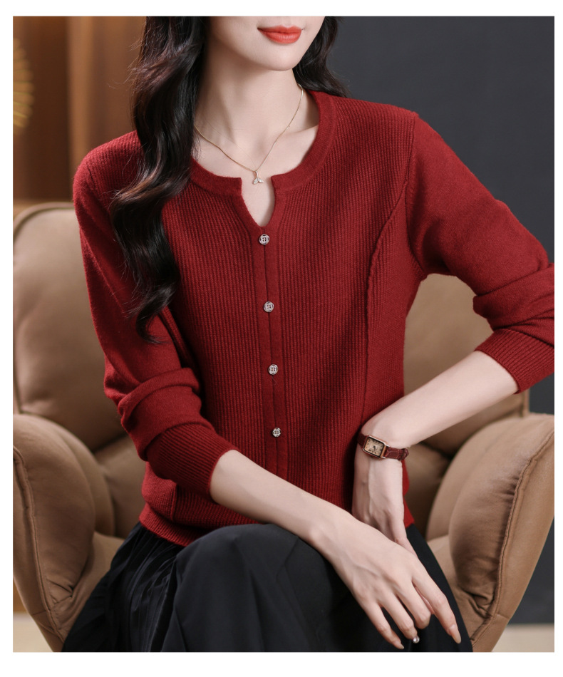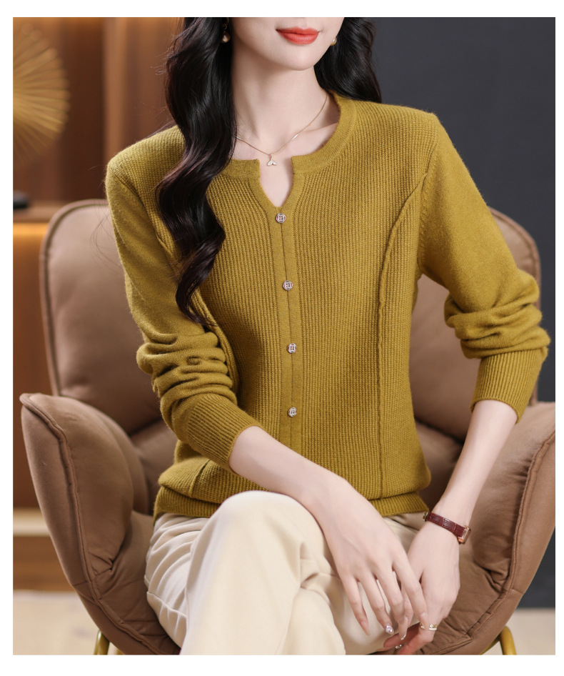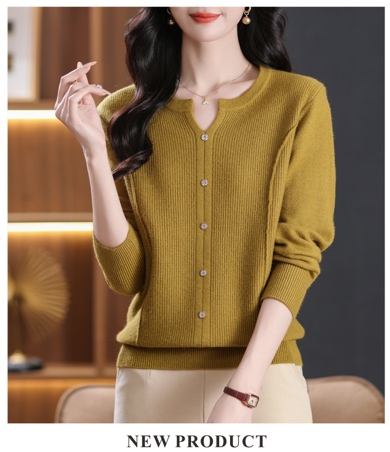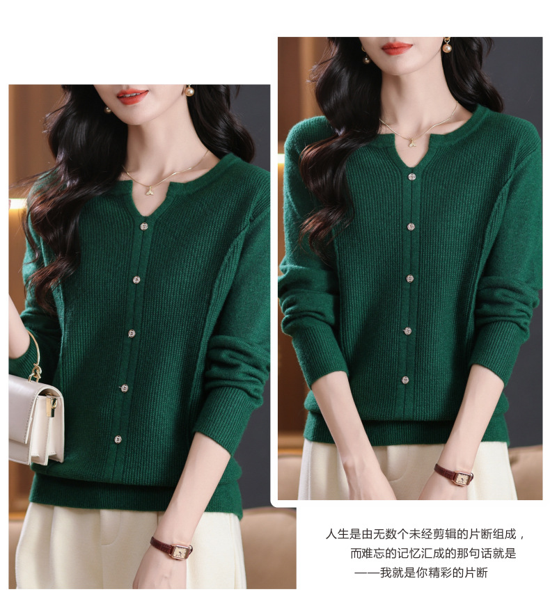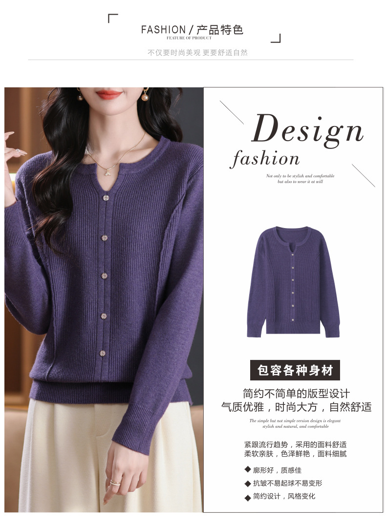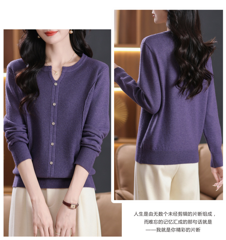 CC-5-6117秋季圆领减龄短款针织毛衣女2024新款大码宽松气质百搭纯色打底衫
