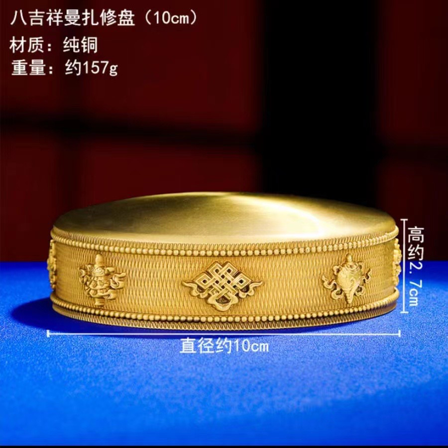 新款学院升级纯铜加厚八吉祥曼扎盘带托盘曼茶盘修盘10cm佛堂摆件