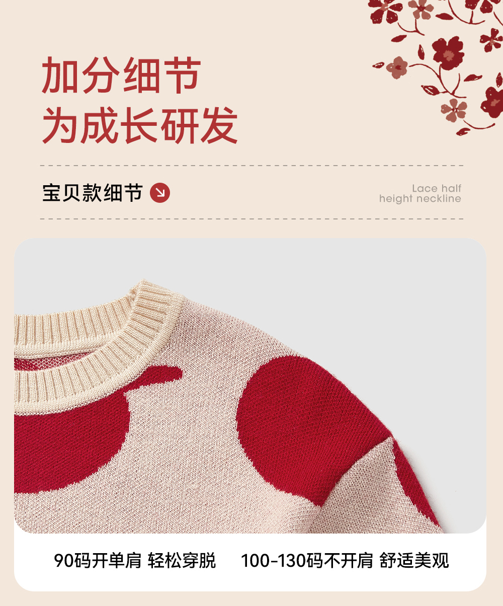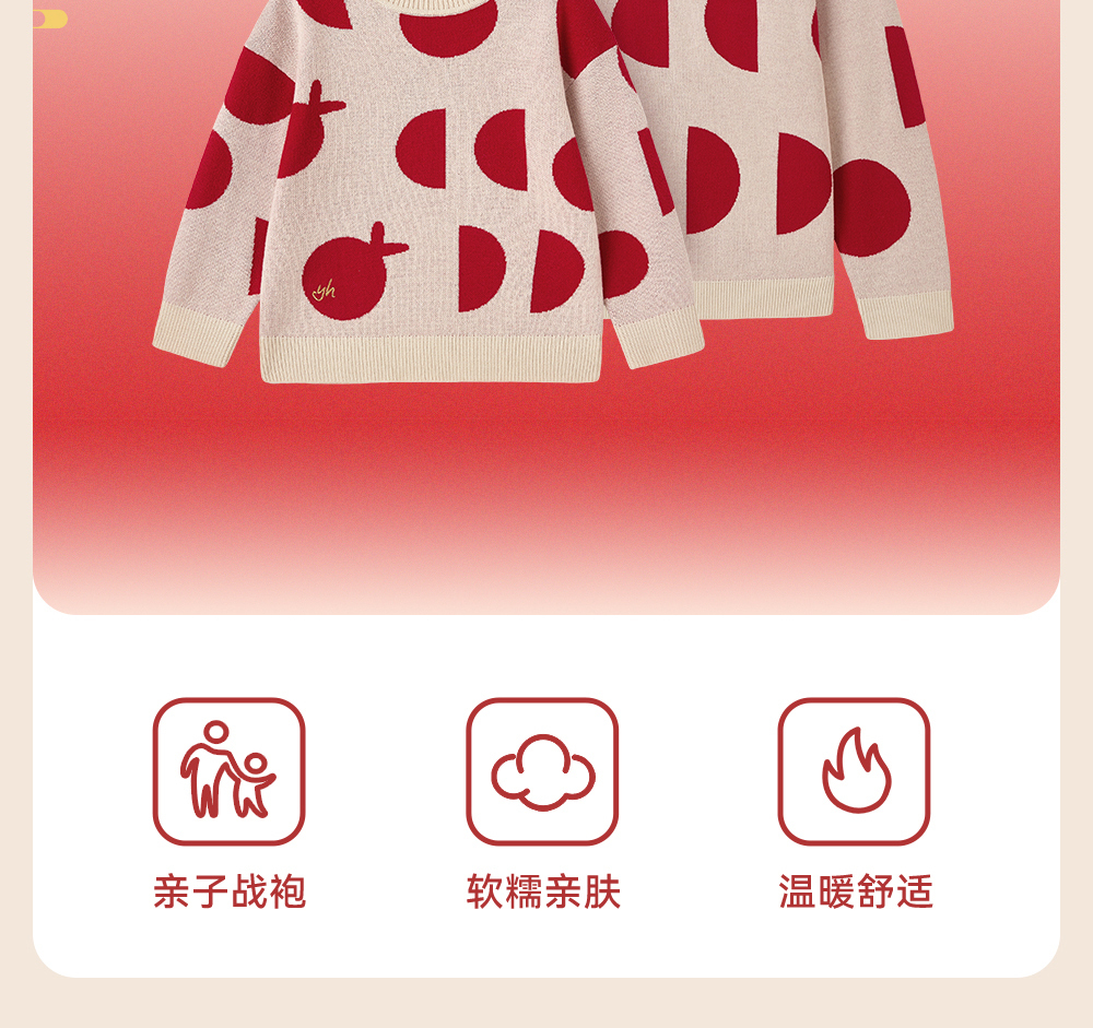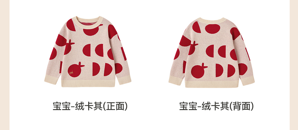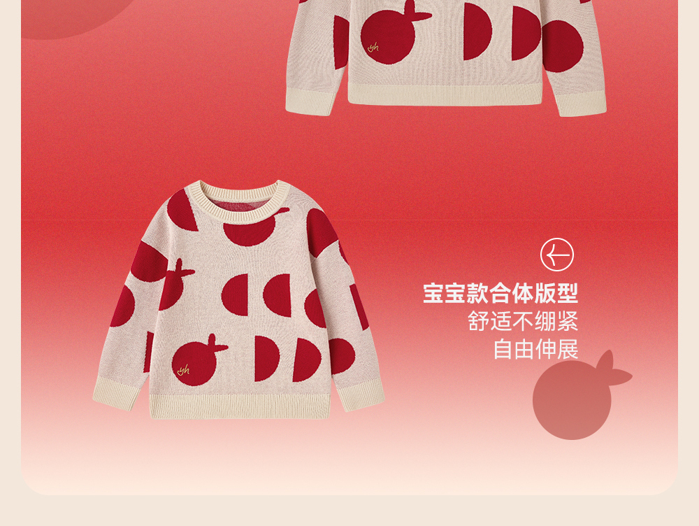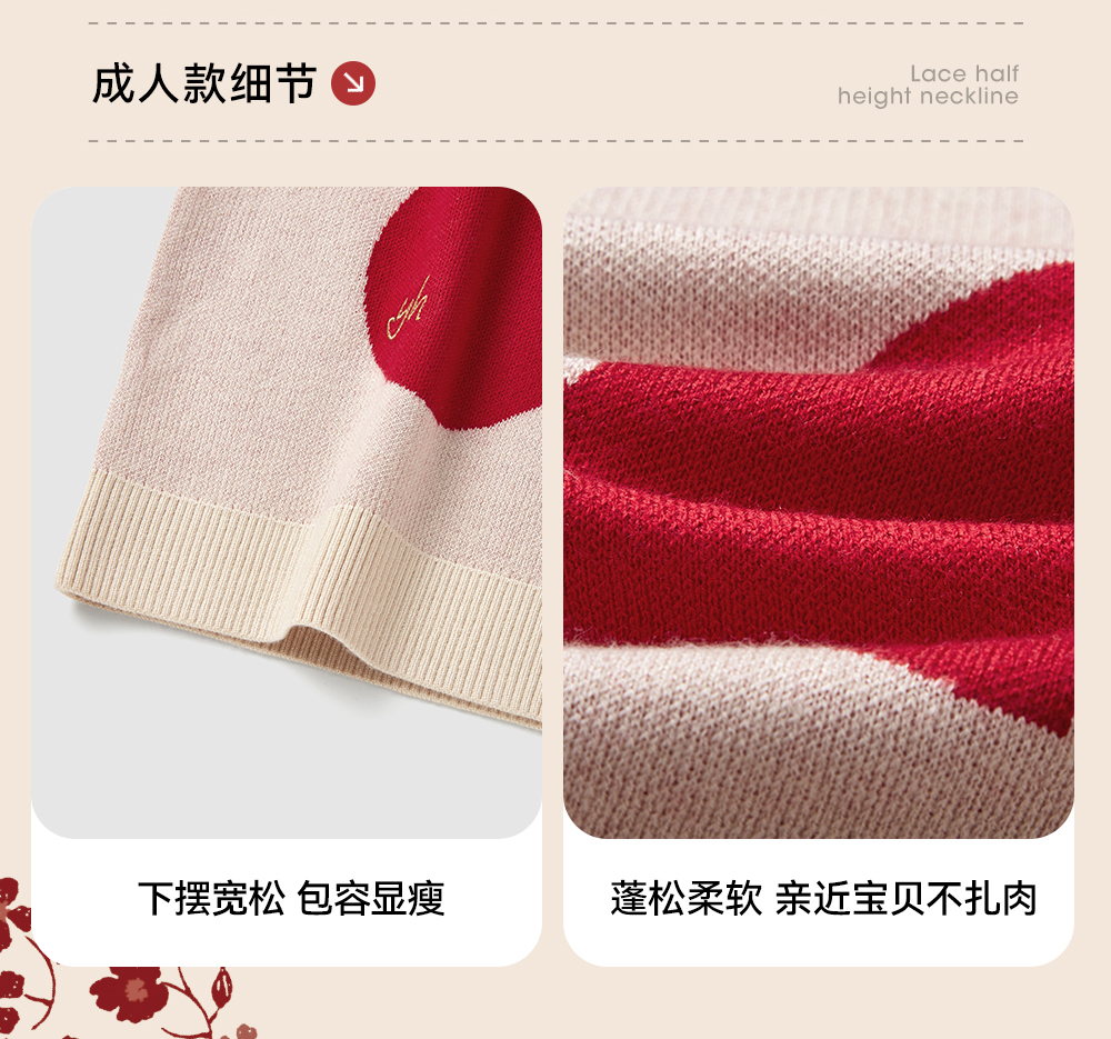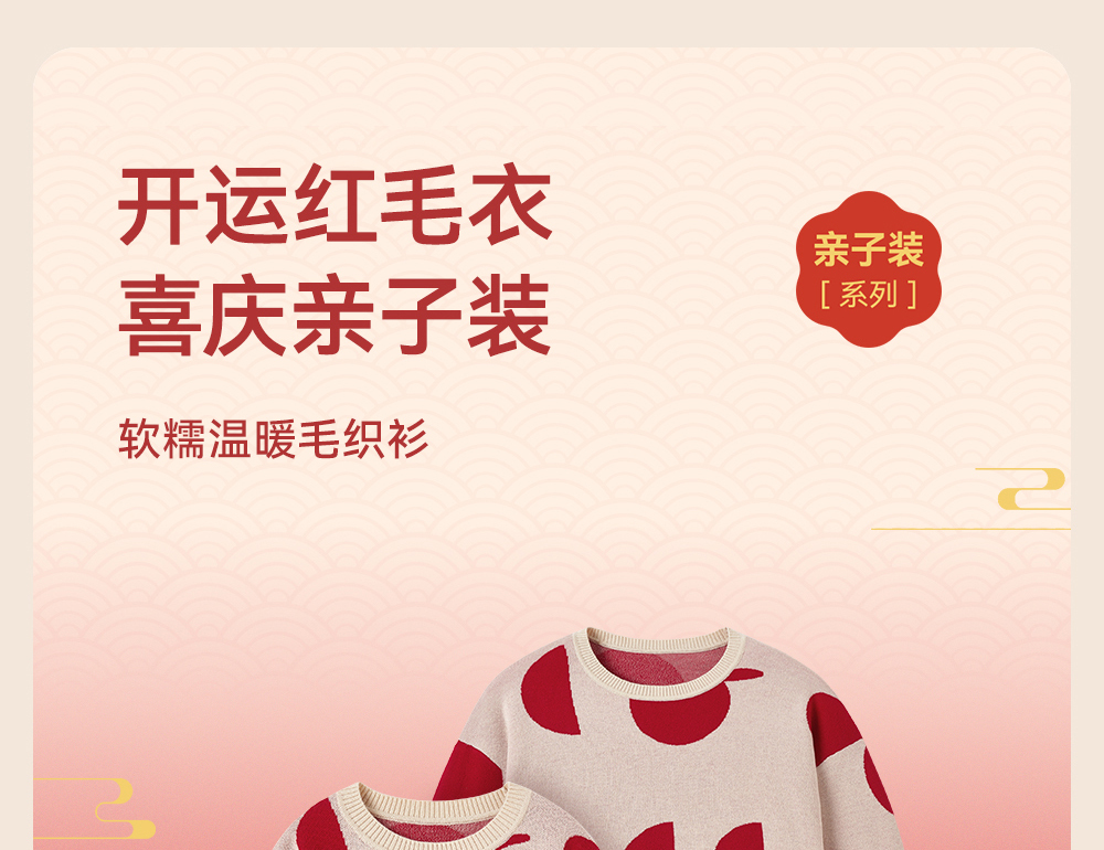 英氏儿童毛衣喜庆新年服秋冬女童羊毛针织衫拜年服新款亲子装