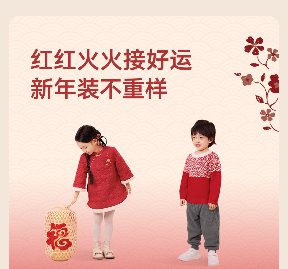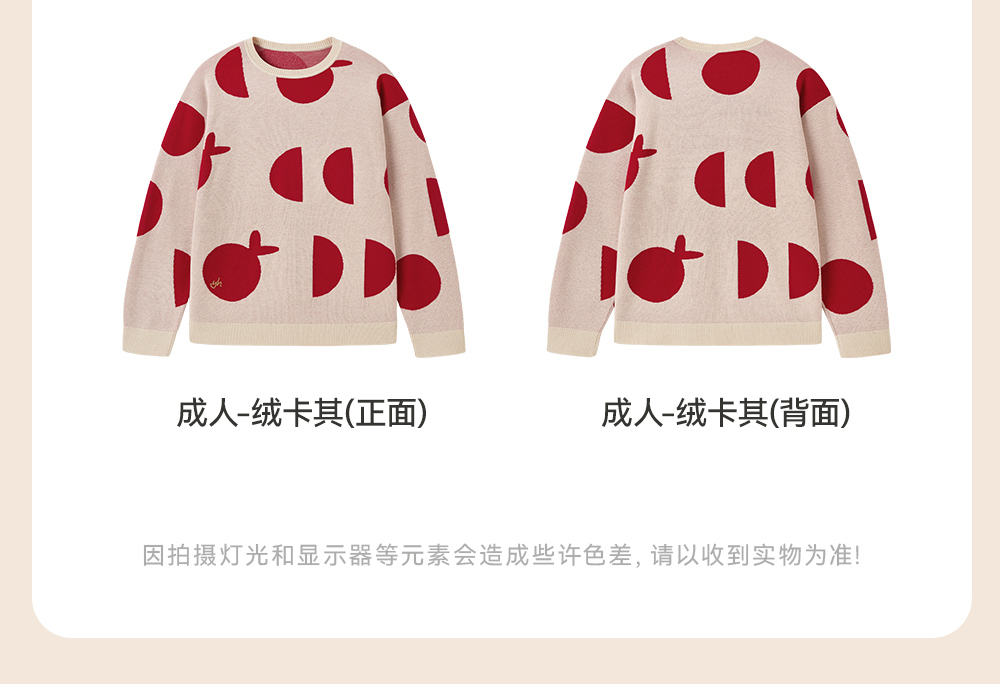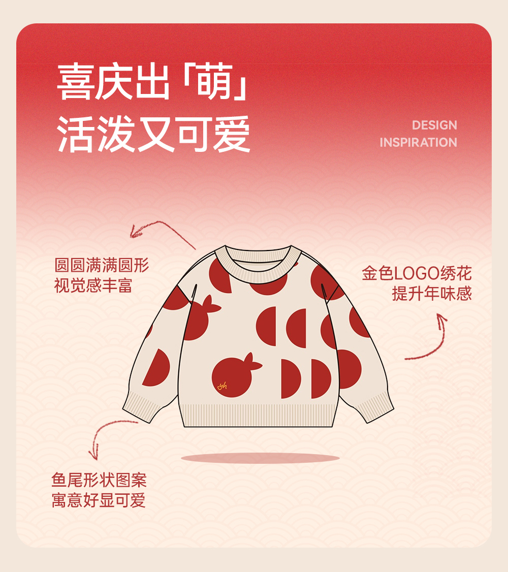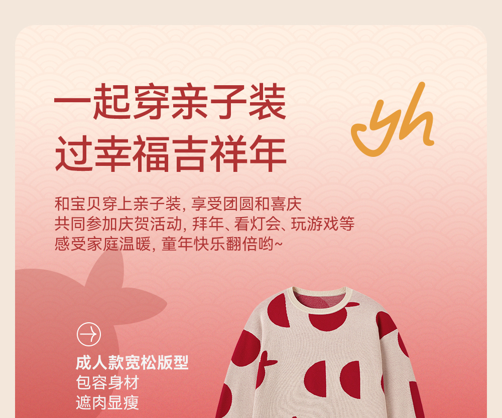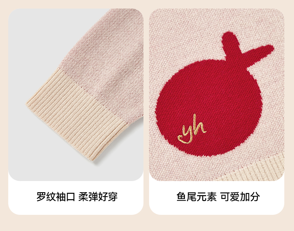 英氏儿童毛衣喜庆新年服秋冬女童羊毛针织衫拜年服新款亲子装