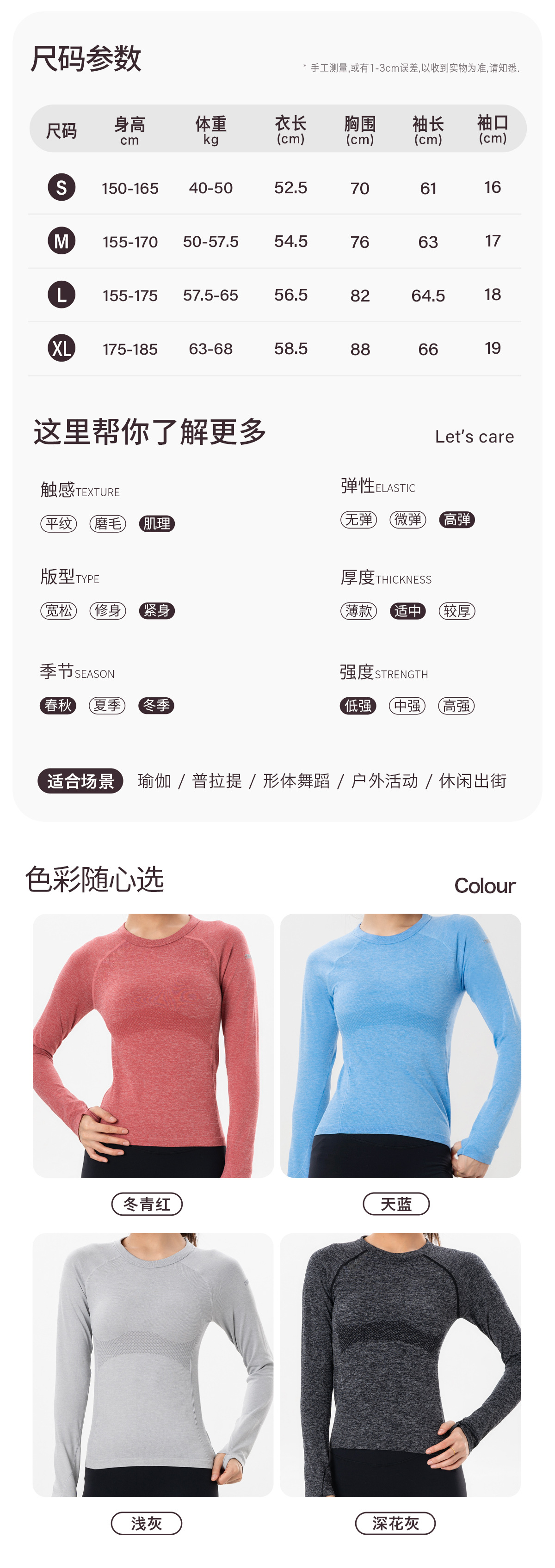 Gymicon能量符号 秋冬新款瑜伽服长袖裸感速干健身跑步t恤运动上衣YASY2547
