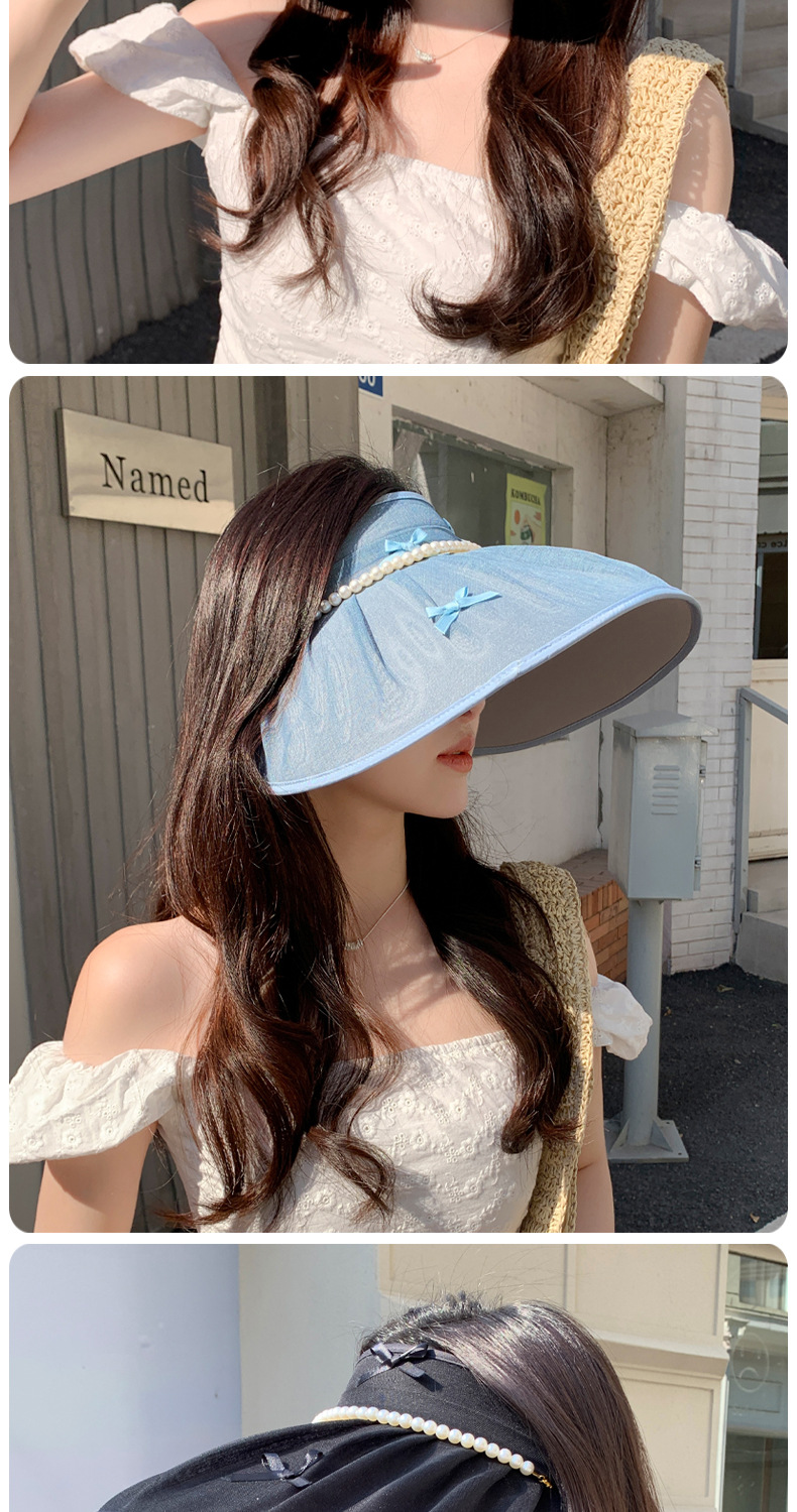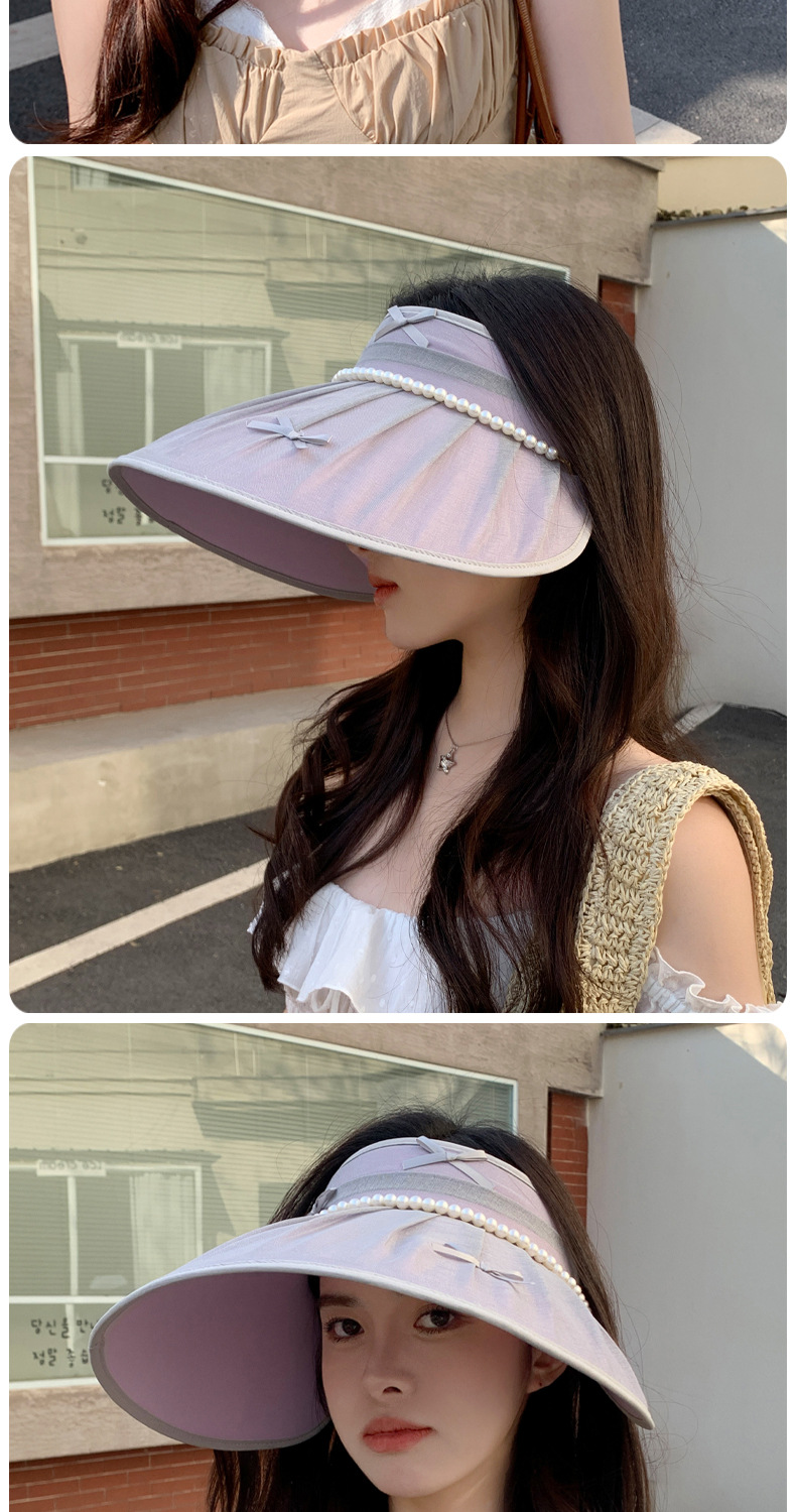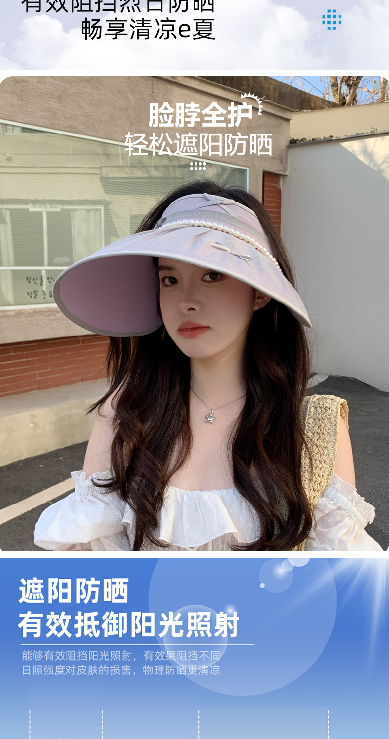 雀说夏季防晒帽子女珍珠蝴蝶结大帽檐遮阳帽韩版时尚小香风空顶太阳帽AL8785