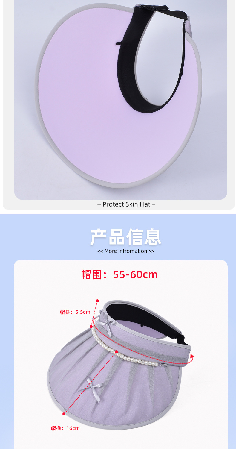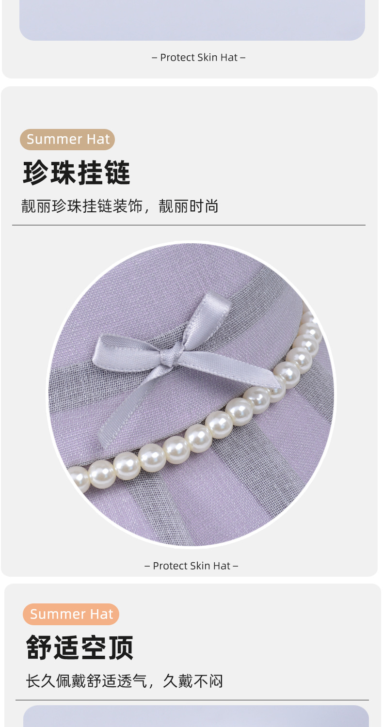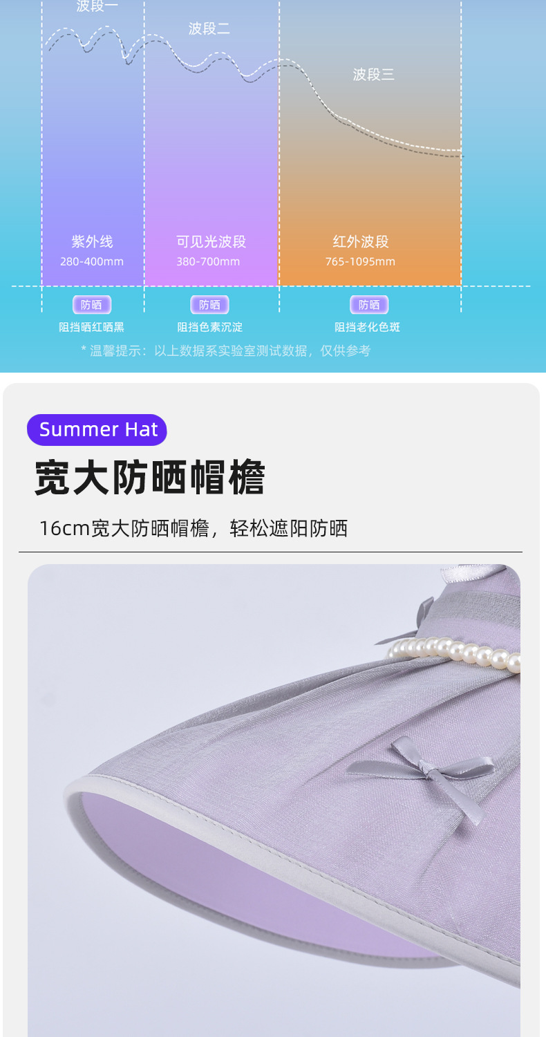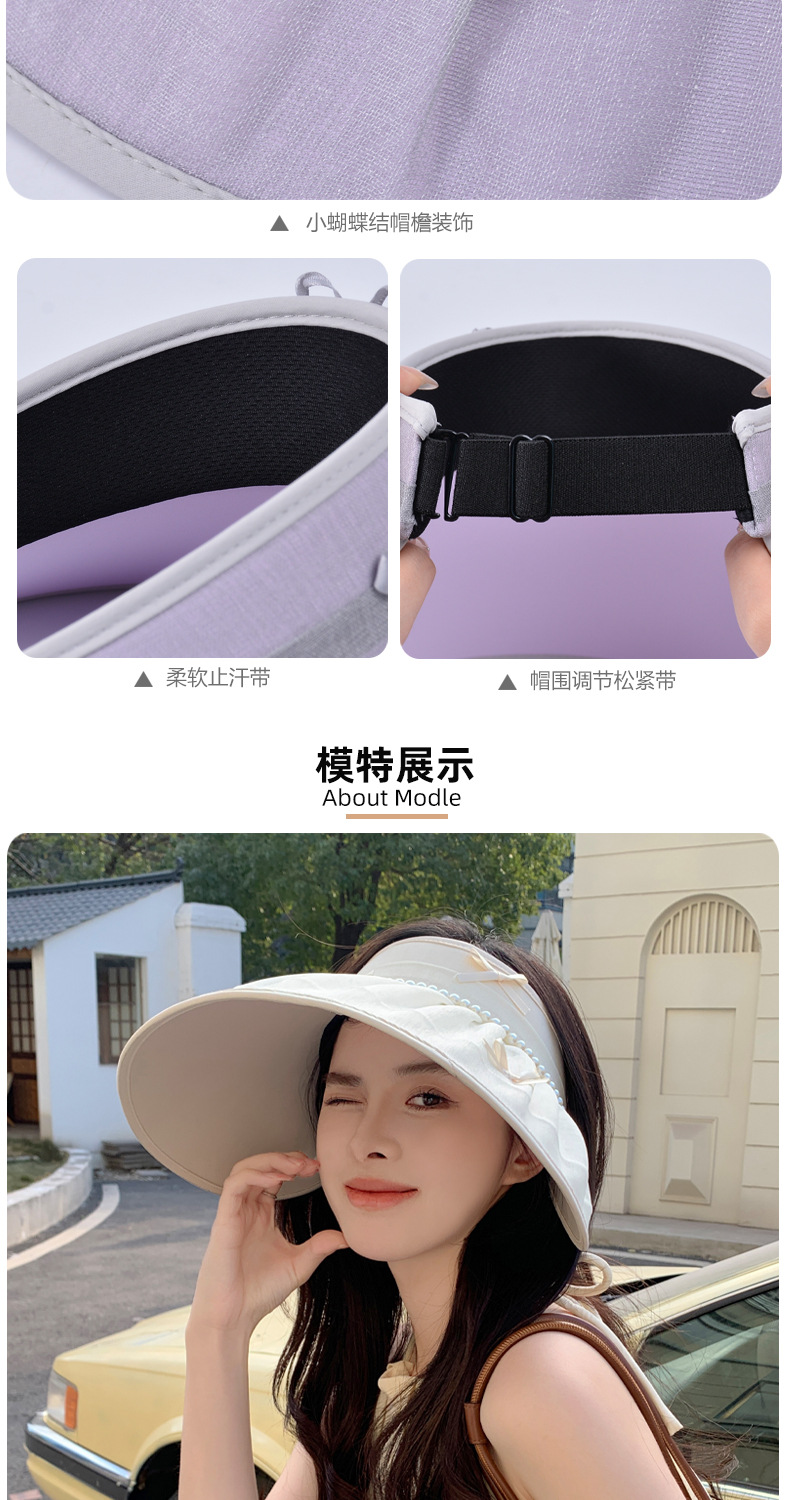 雀说夏季防晒帽子女珍珠蝴蝶结大帽檐遮阳帽韩版时尚小香风空顶太阳帽AL8785