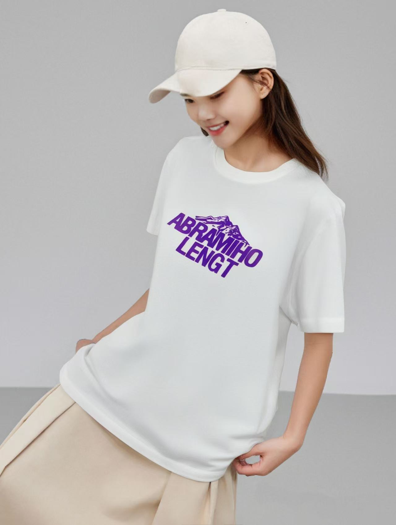 工厂直促价【100%棉】美-情侣(紫山-大标)柯式印花短袖T恤-喜出