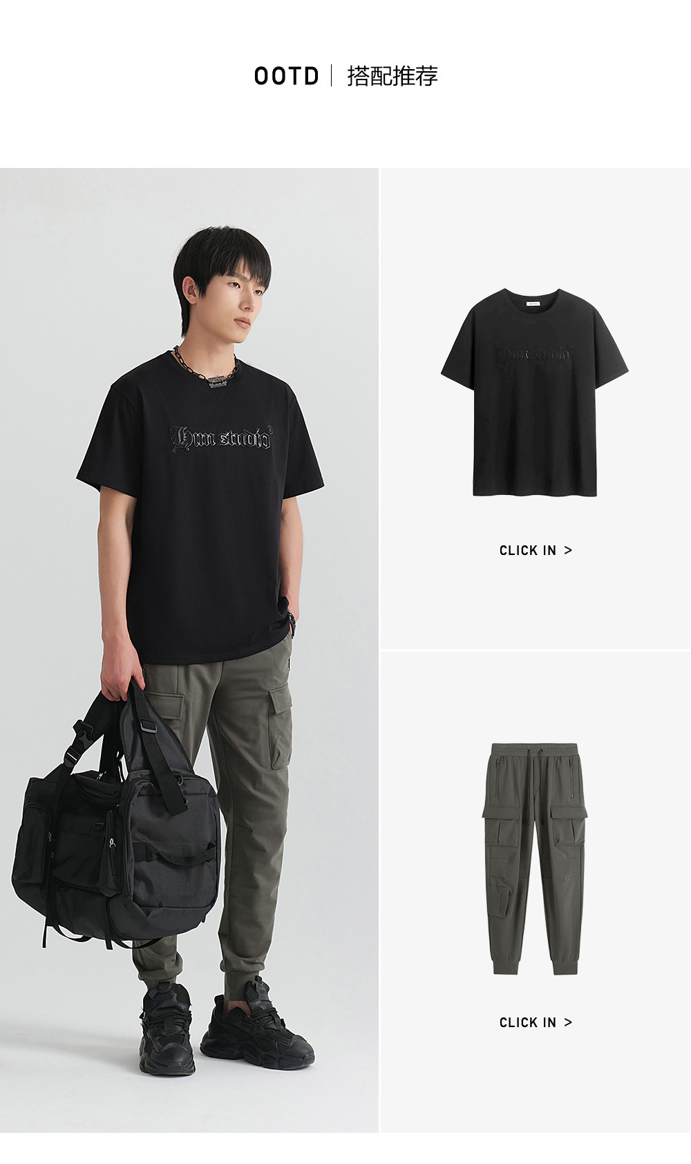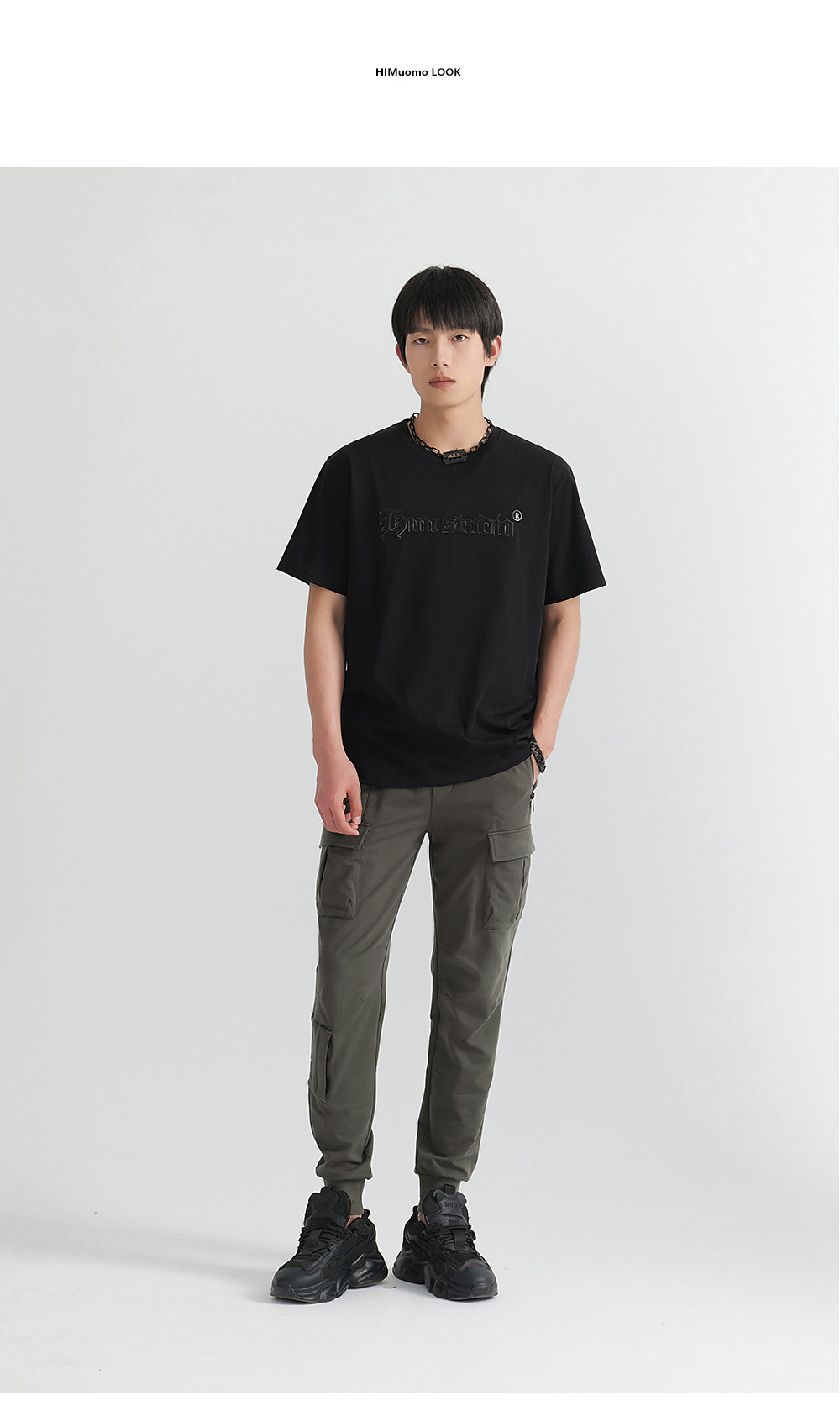 HIM漢崇 时尚潮流短袖T恤简约字母刺绣宽松休闲上衣男 2026夏季