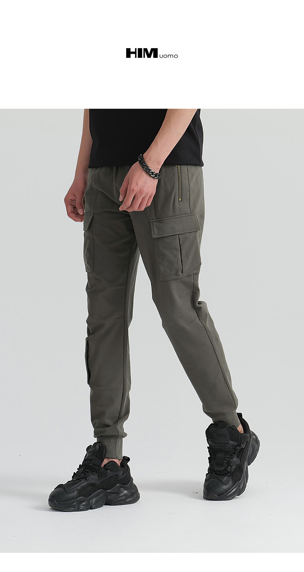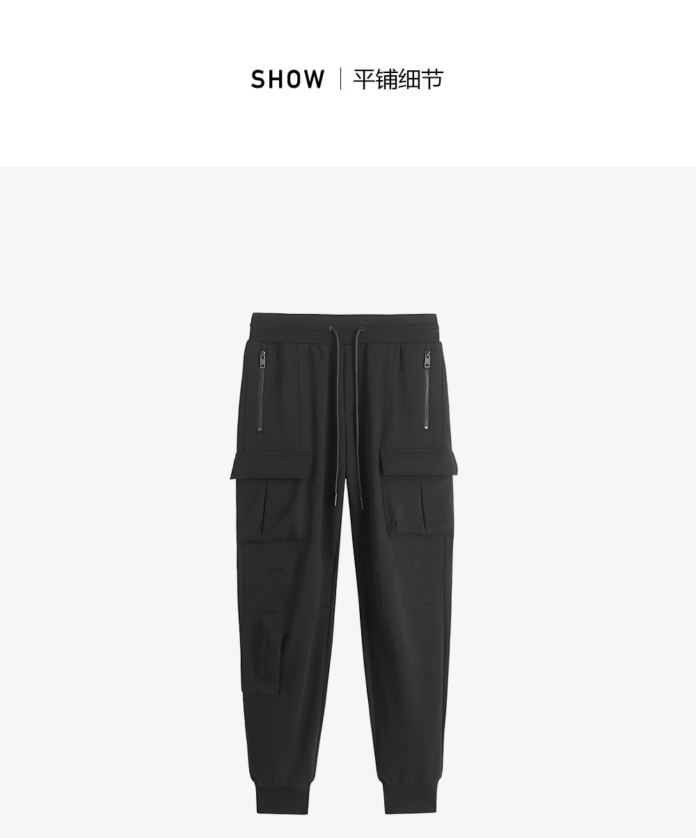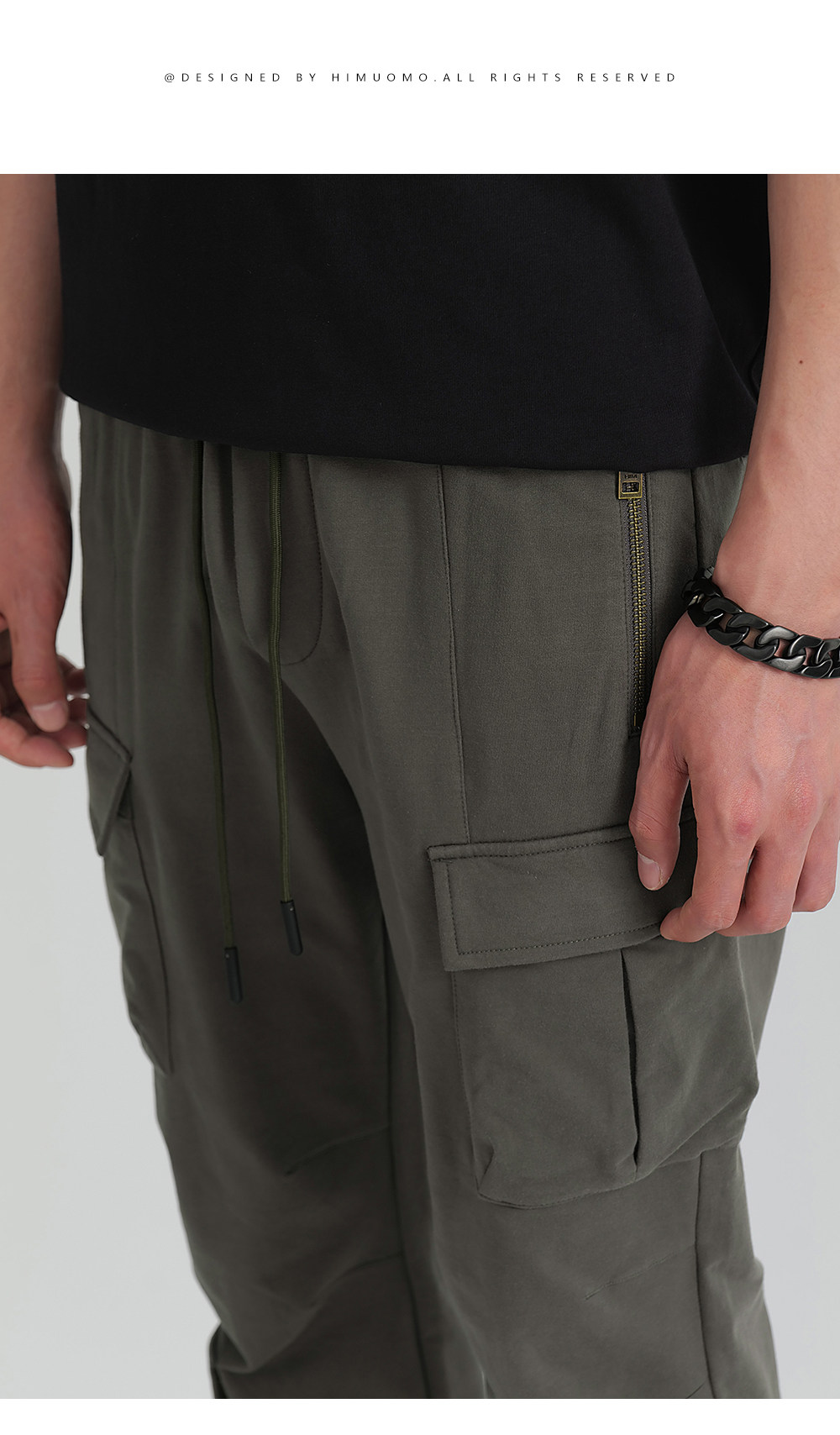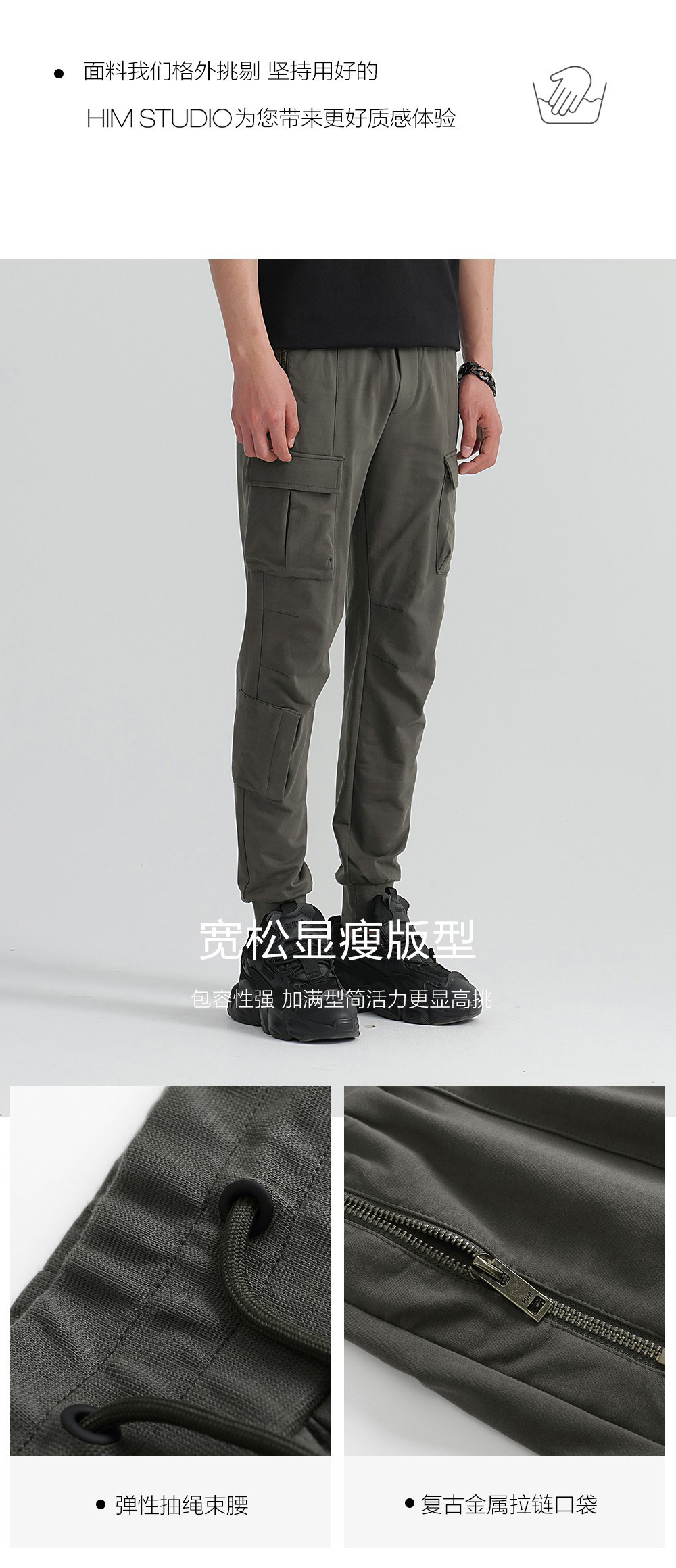 HIM漢崇 休闲工装裤男潮流舒适透气宽松抽绳松紧腰束脚裤2026夏季