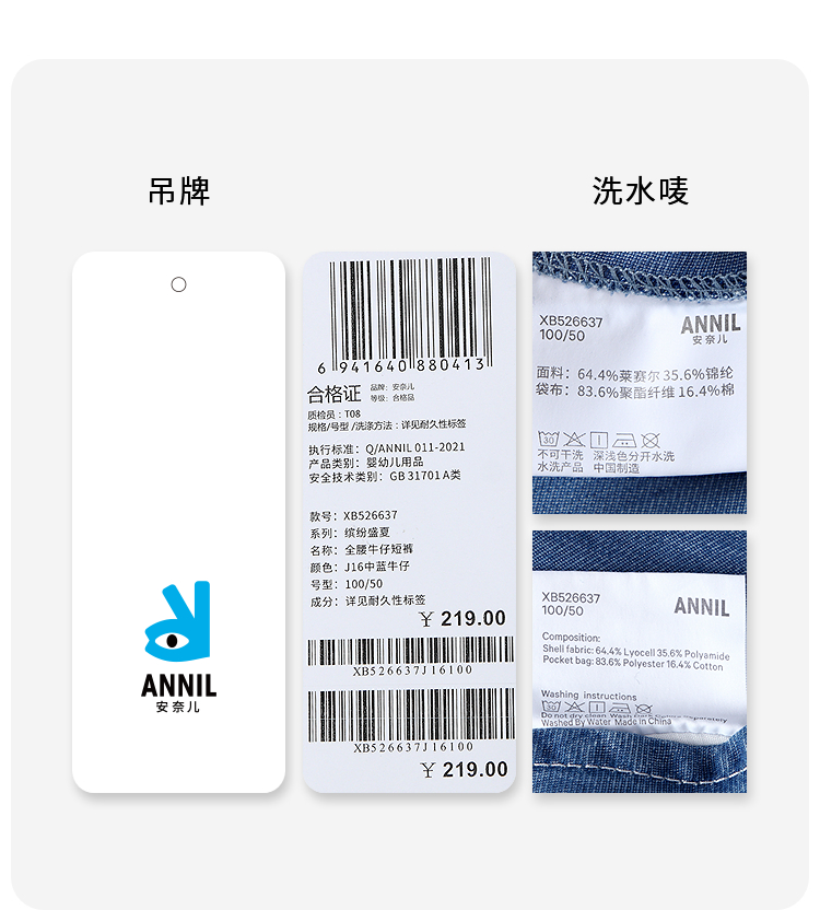 【实体店同款】男童全腰牛仔短裤夏季新款安奈儿童装XB526637