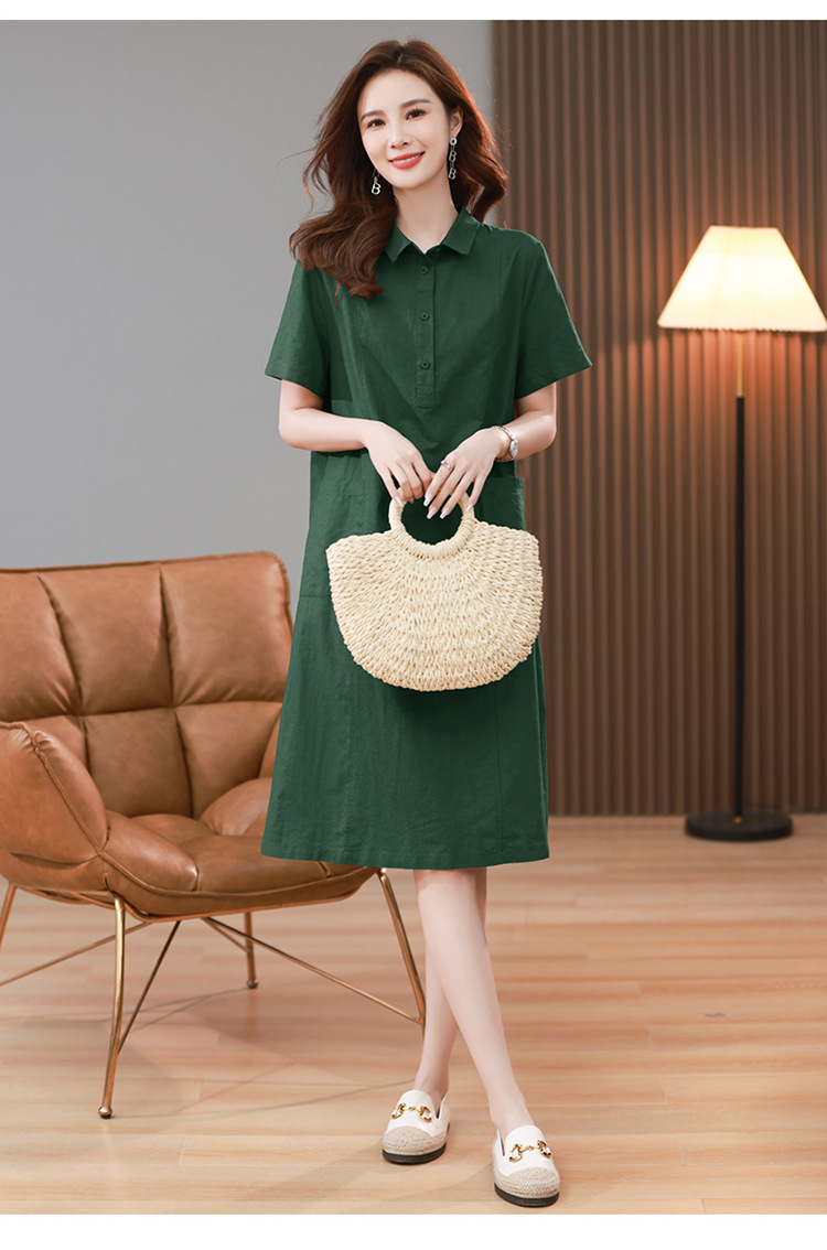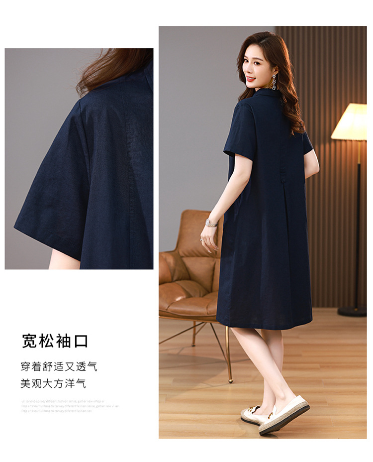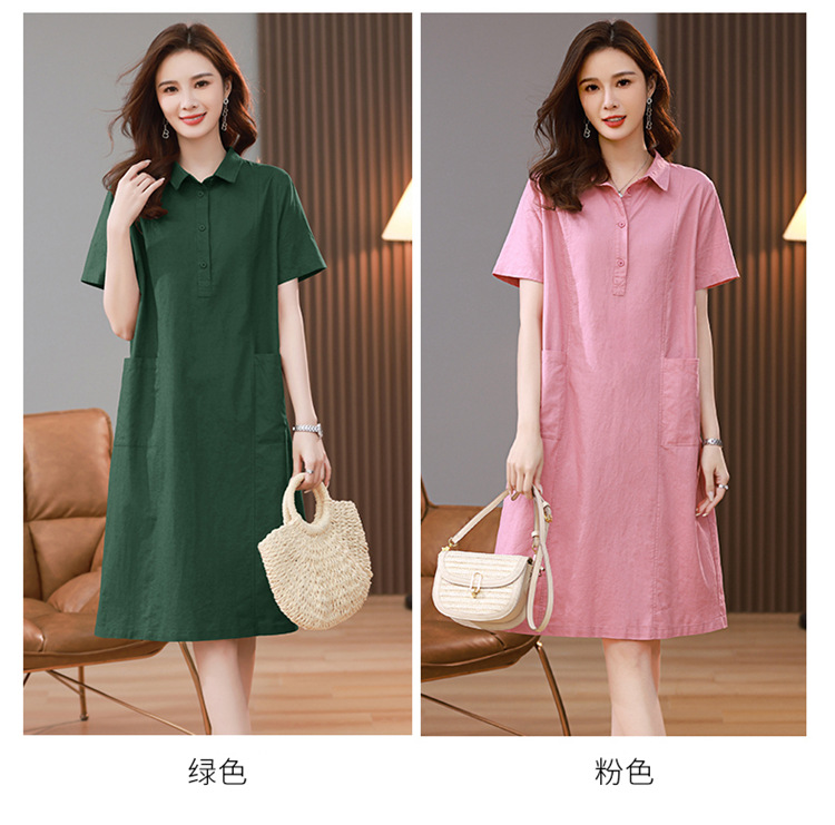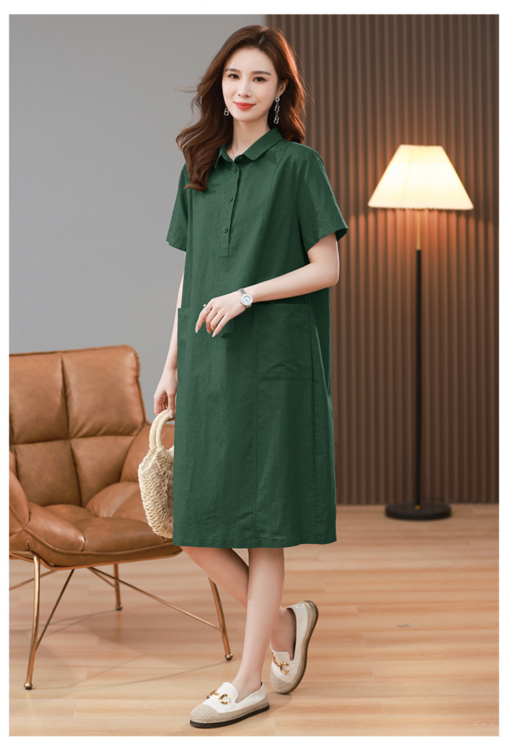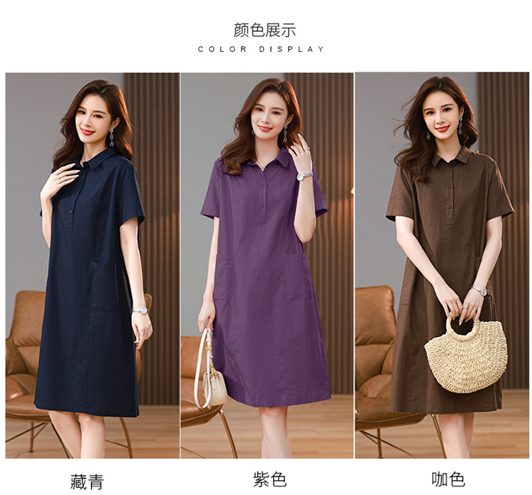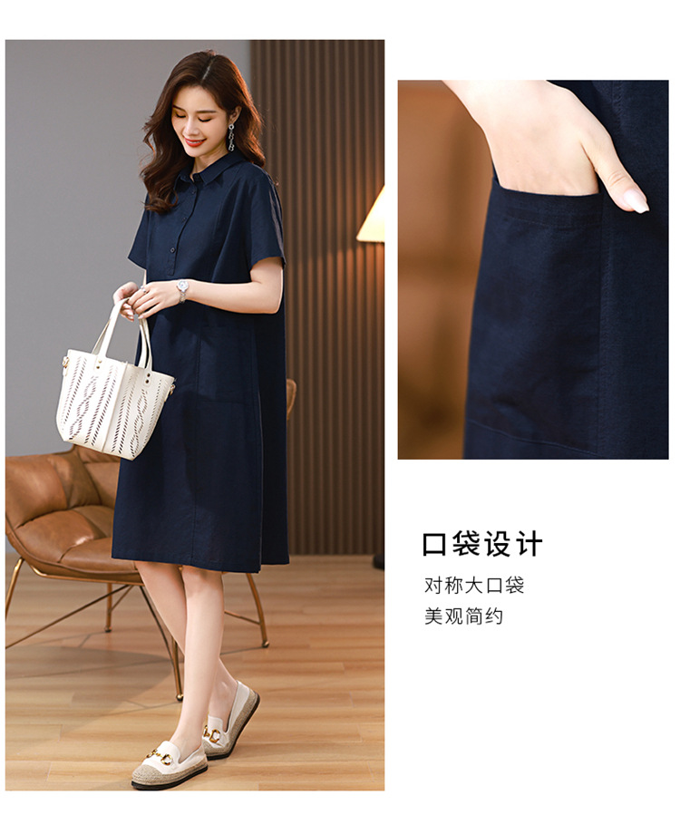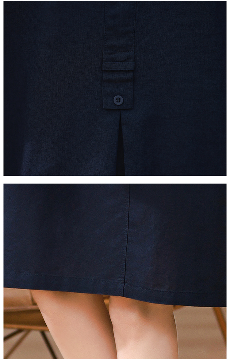 时尚复古棉麻风拼接,口袋纯色中长款连衣裙HR-WXN8536